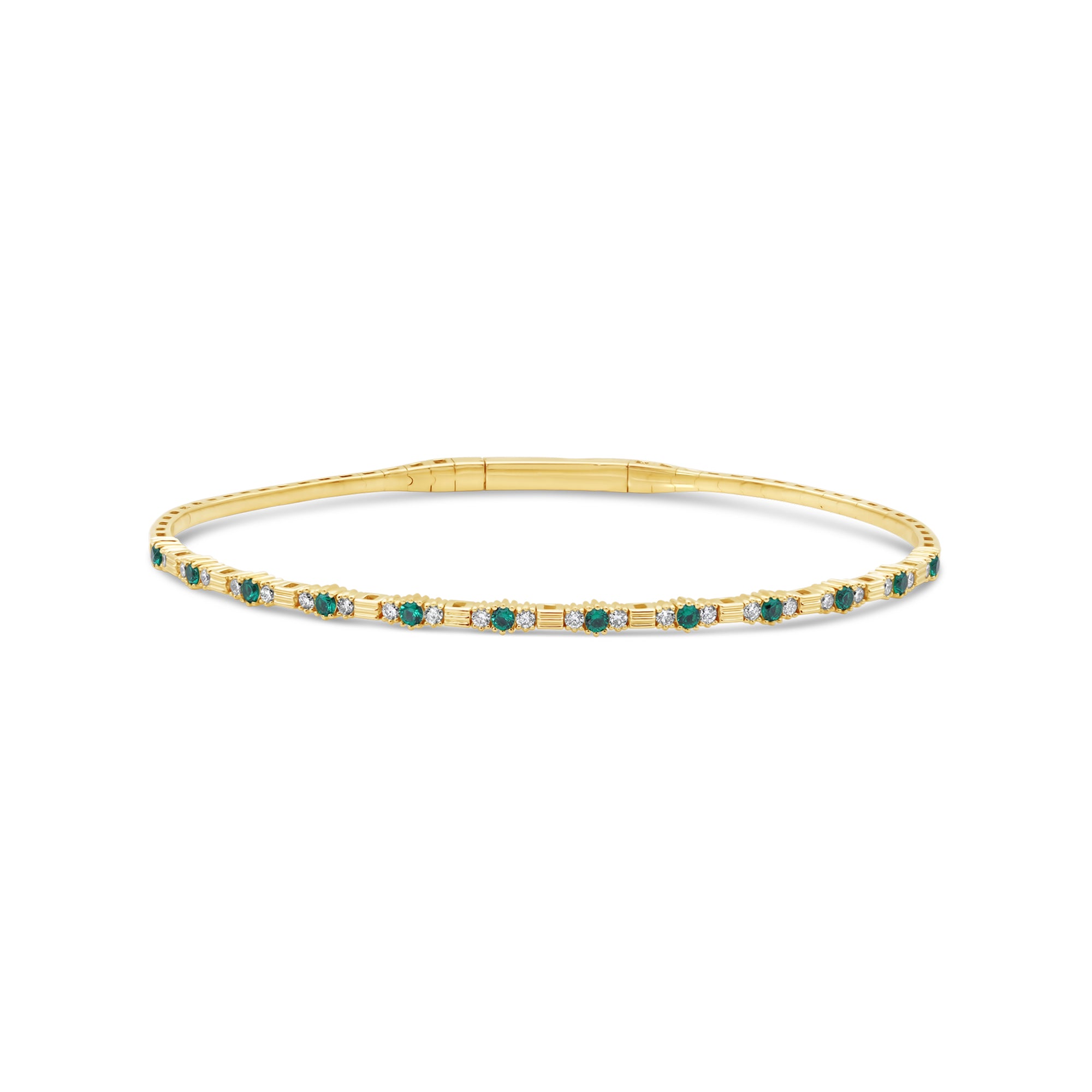Multi Shape Emerald and Diamond Flex Bangle$2,550.00 USD14K Yellow Gold 14K White Gold
