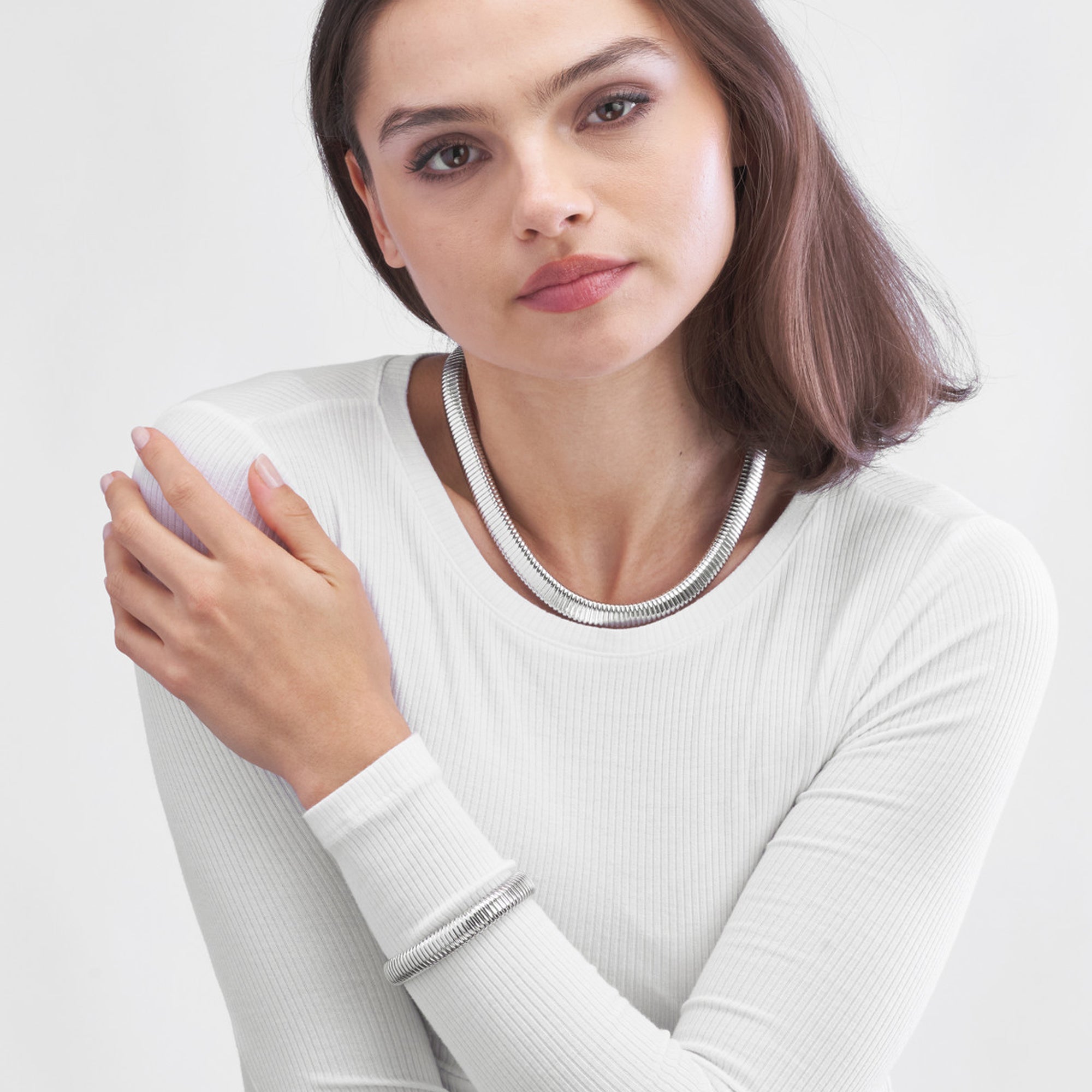 Complete your look with our striking 14mm sterling silver bracelet. This bold statement piece combines durability with style and features a secure box clasp.