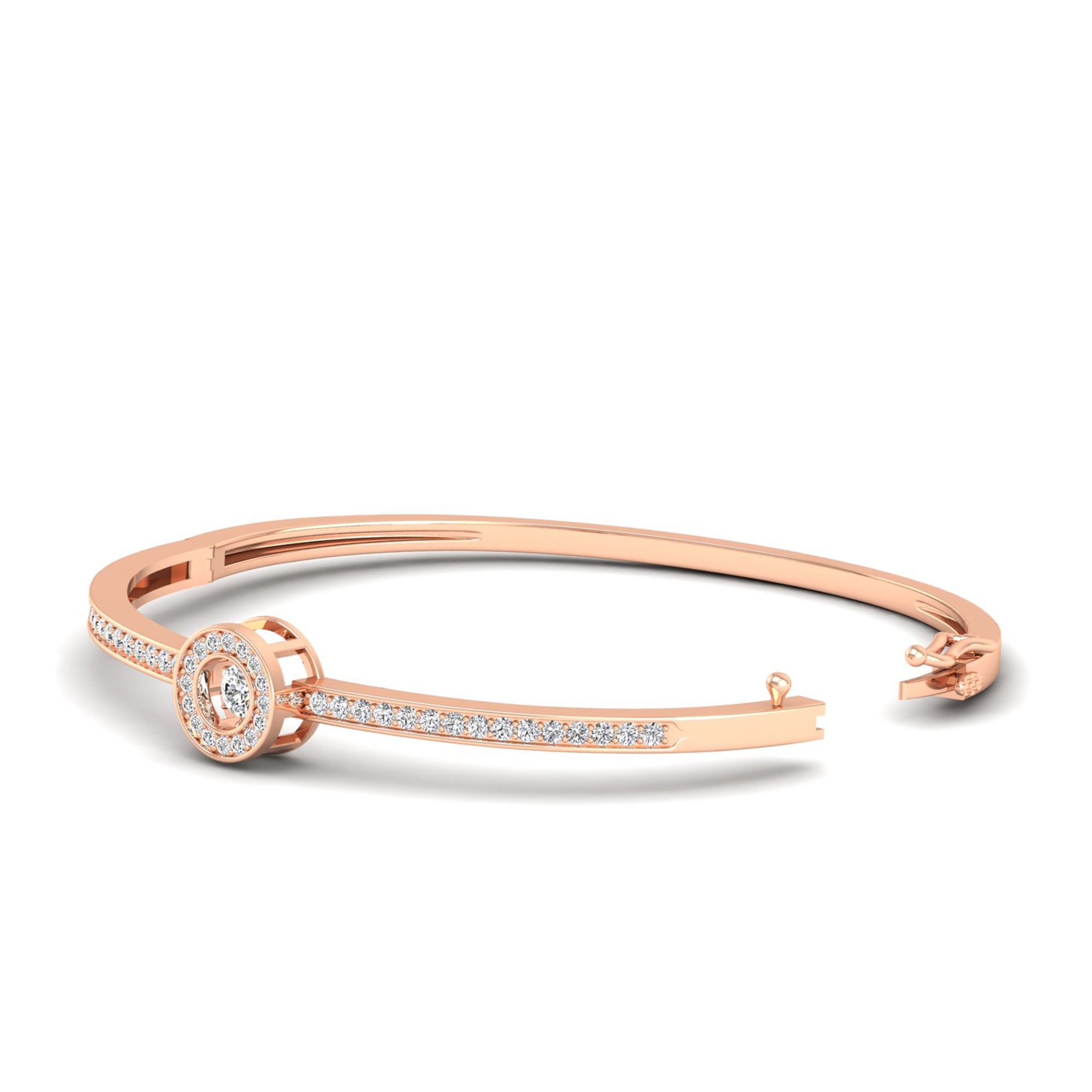 Experience the elegance and beauty of our Halo Dancing Diamond Bangles. Crafted with precision and expert craftsmanship, these bangles feature a unique dancing diamond setting that catches the light and sparkles on your wrist.
