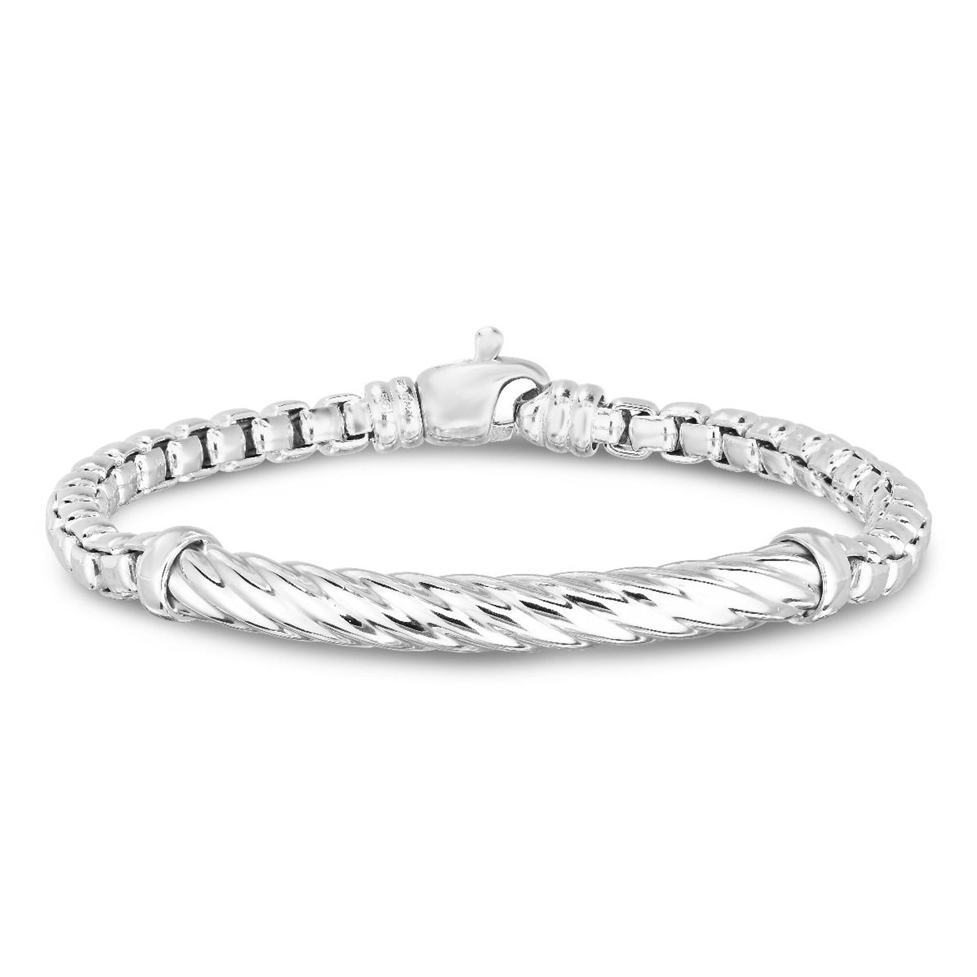 Italian Cable Sterling Silver Men's Bar Bracelet. Item Is Rhodium Plated.