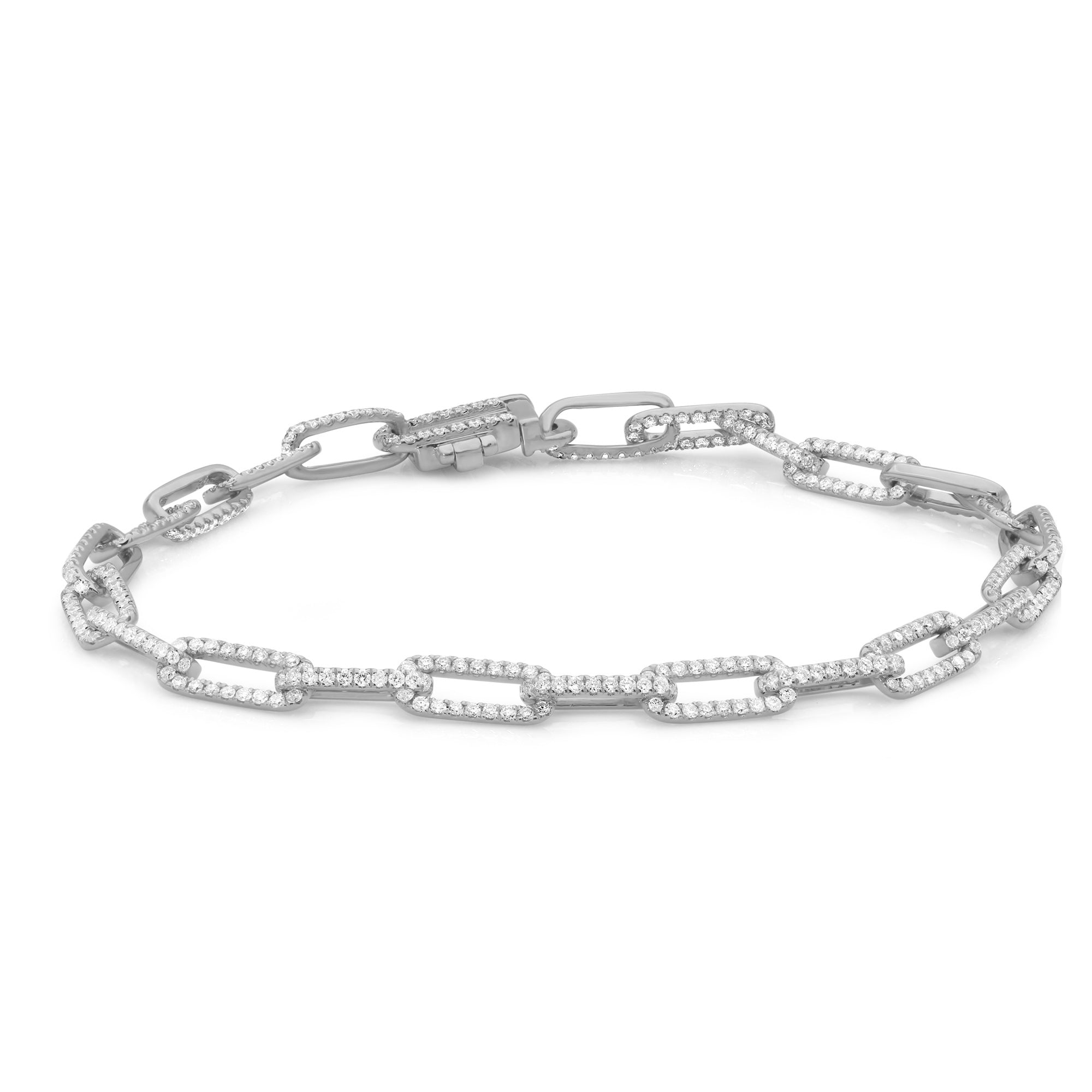 Elevate your jewelry collection with this Rectangular Paper Clip Link Diamond Bracelet, expertly crafted for a modern yet timeless appeal.
