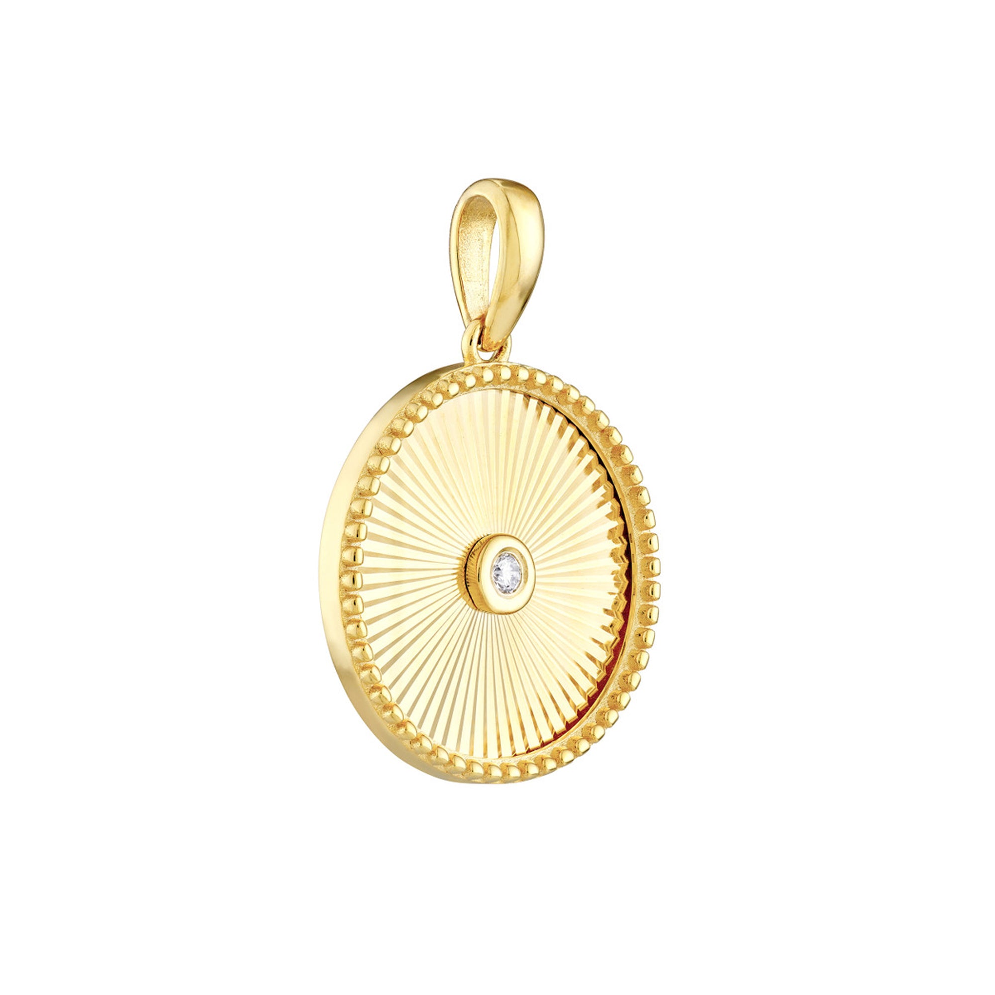 This pendant embodies a blend of modernity and elegance. Featuring a 3pt diamond, this Round Radiant pendant is the perfect addition to your chain.