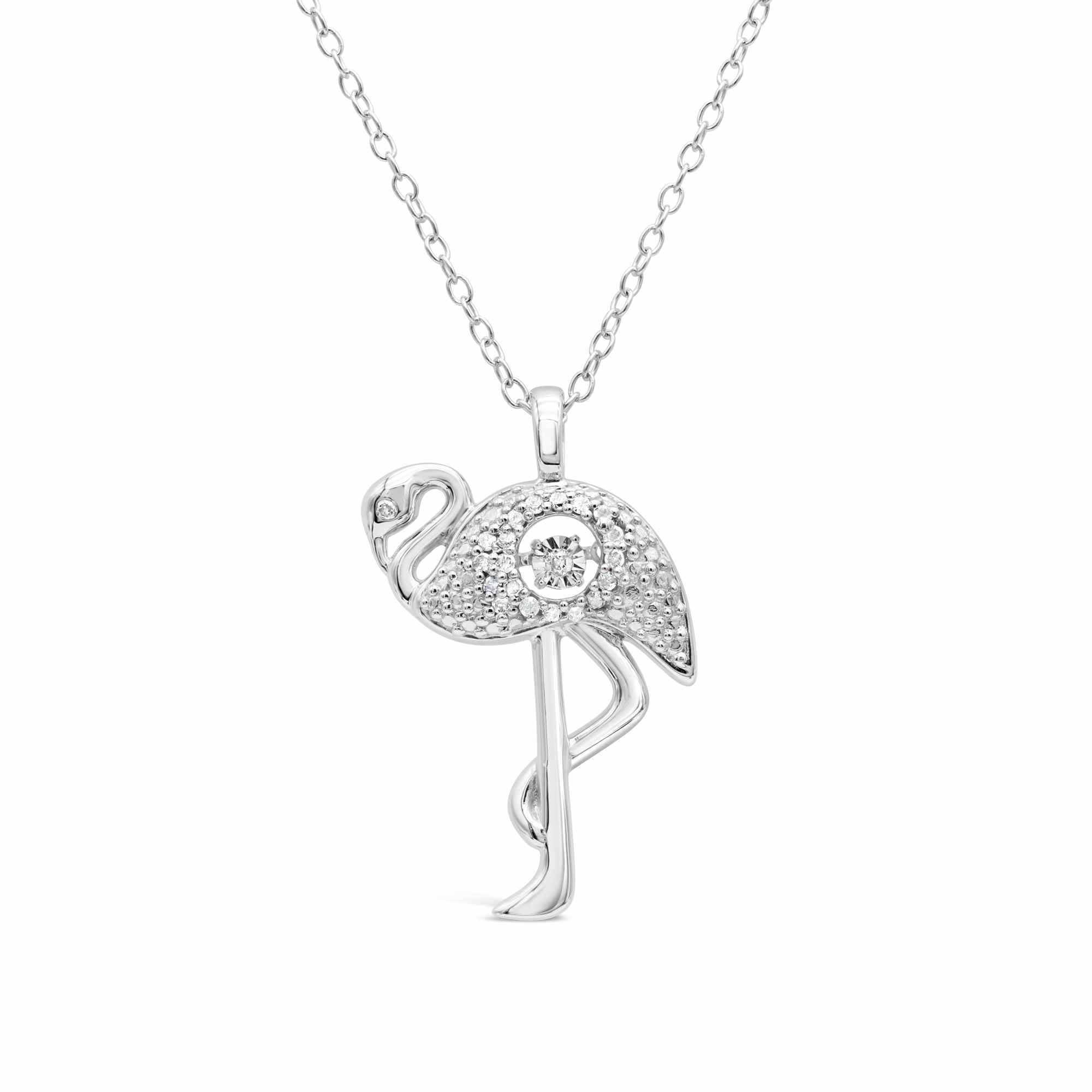 This delightful pendant features a flmaingo with a diamond in the center that dances as you move. It also brings an 16 inch chain with a spring ring closure.
