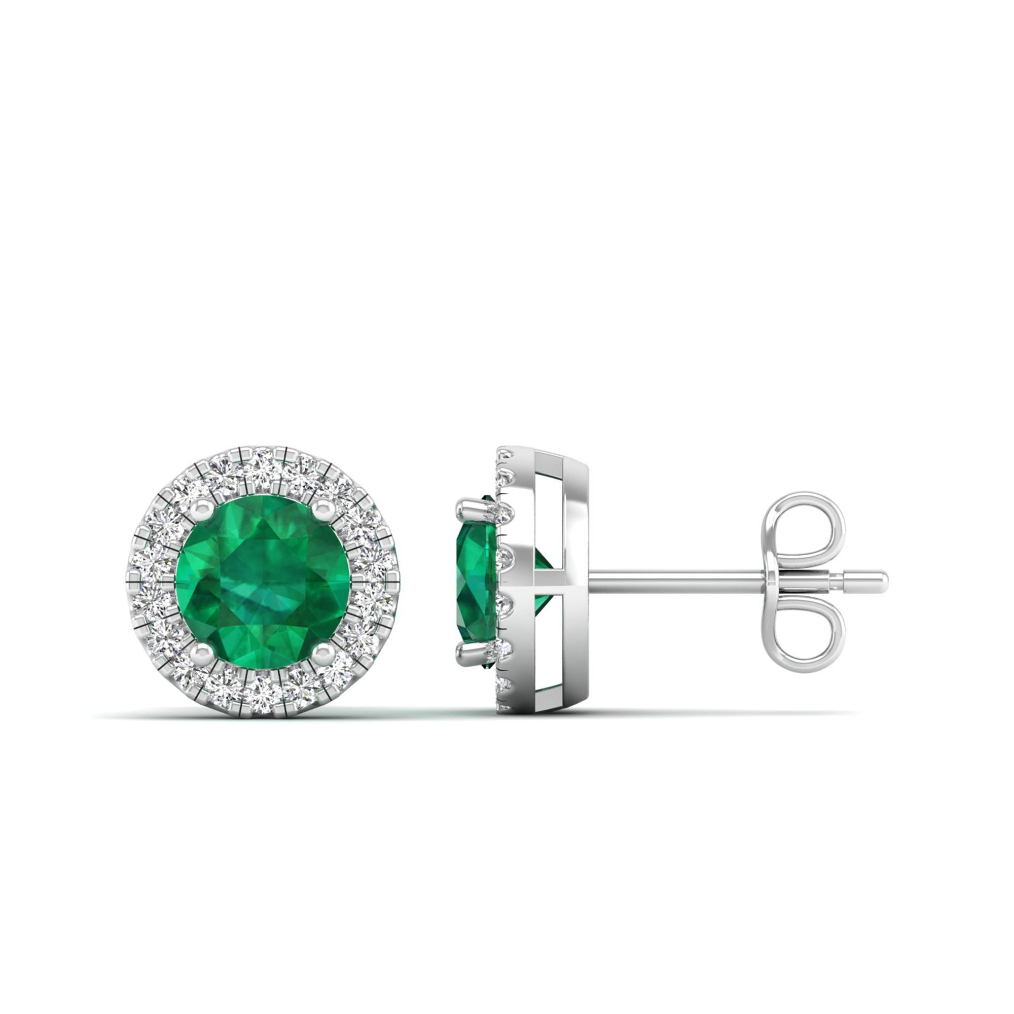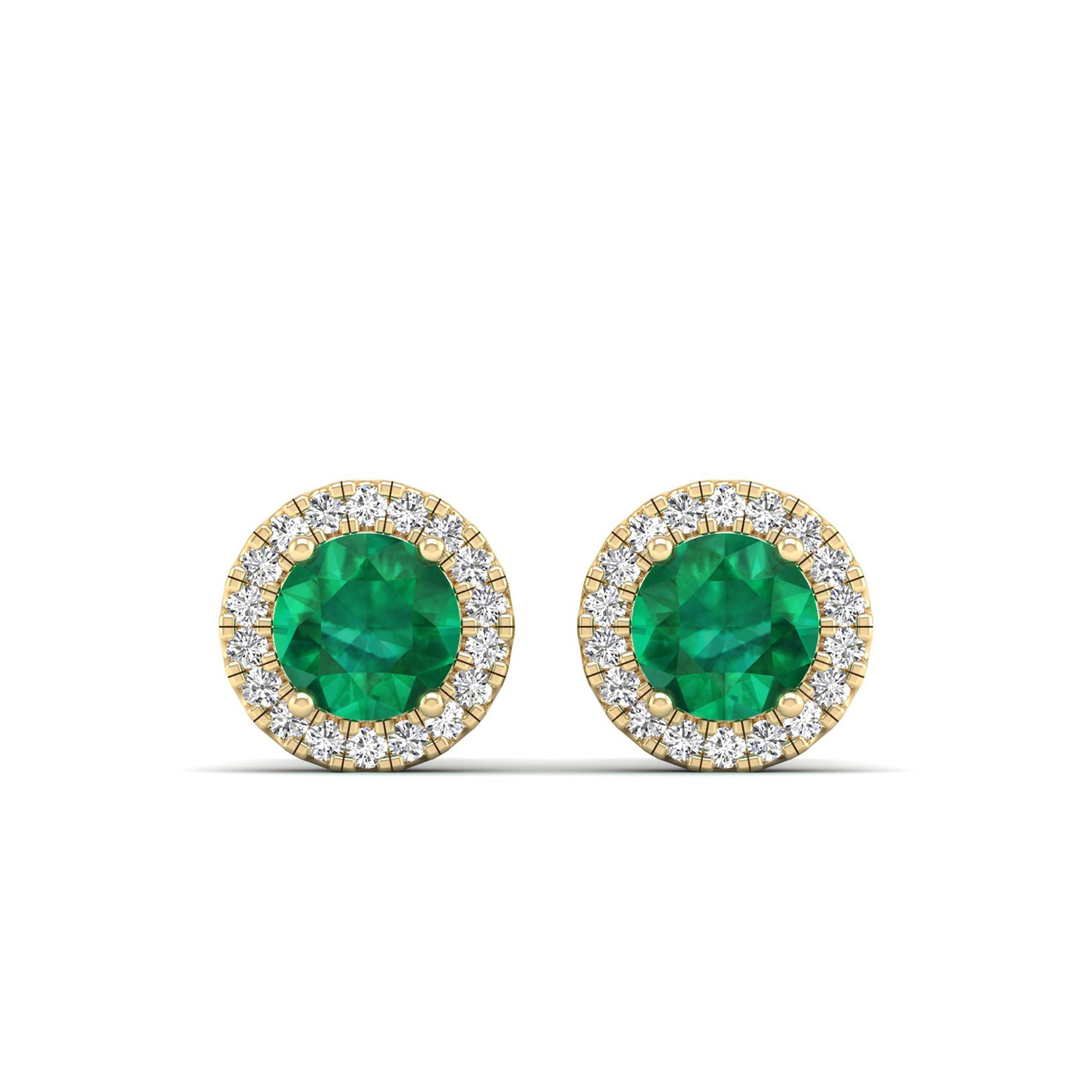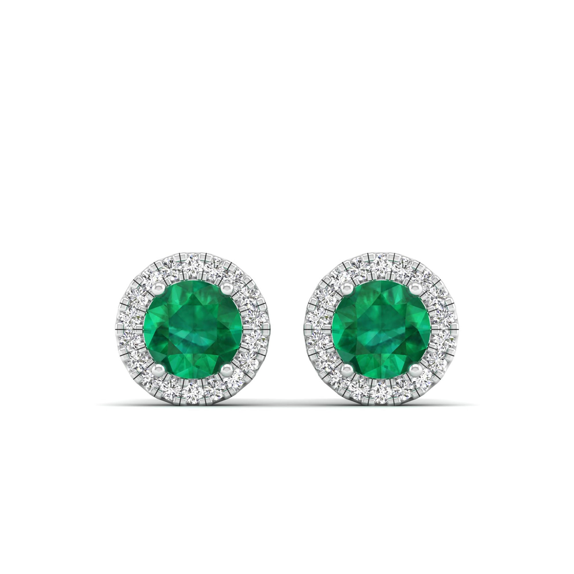 Round Emerald Halo Diamond Stud Earrings