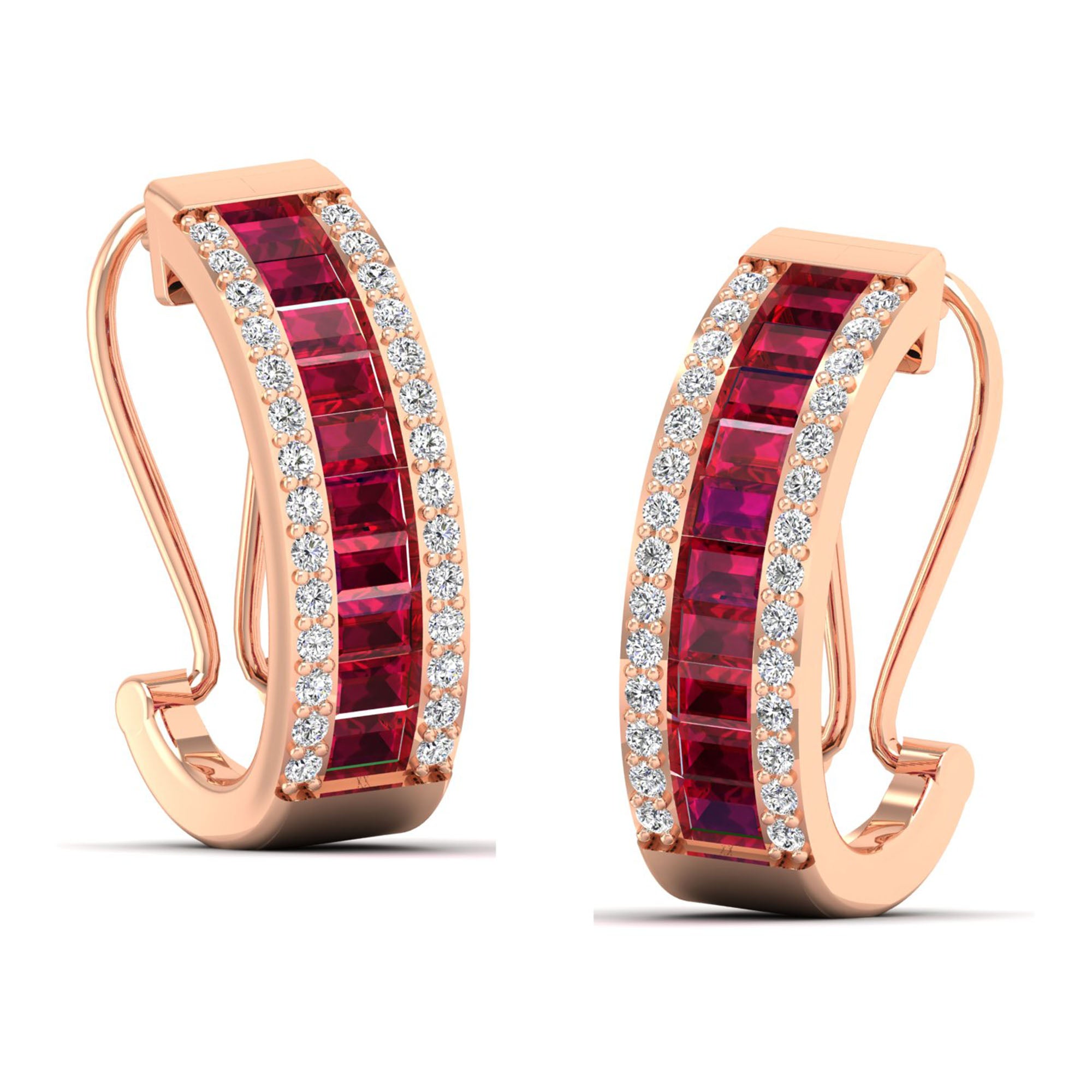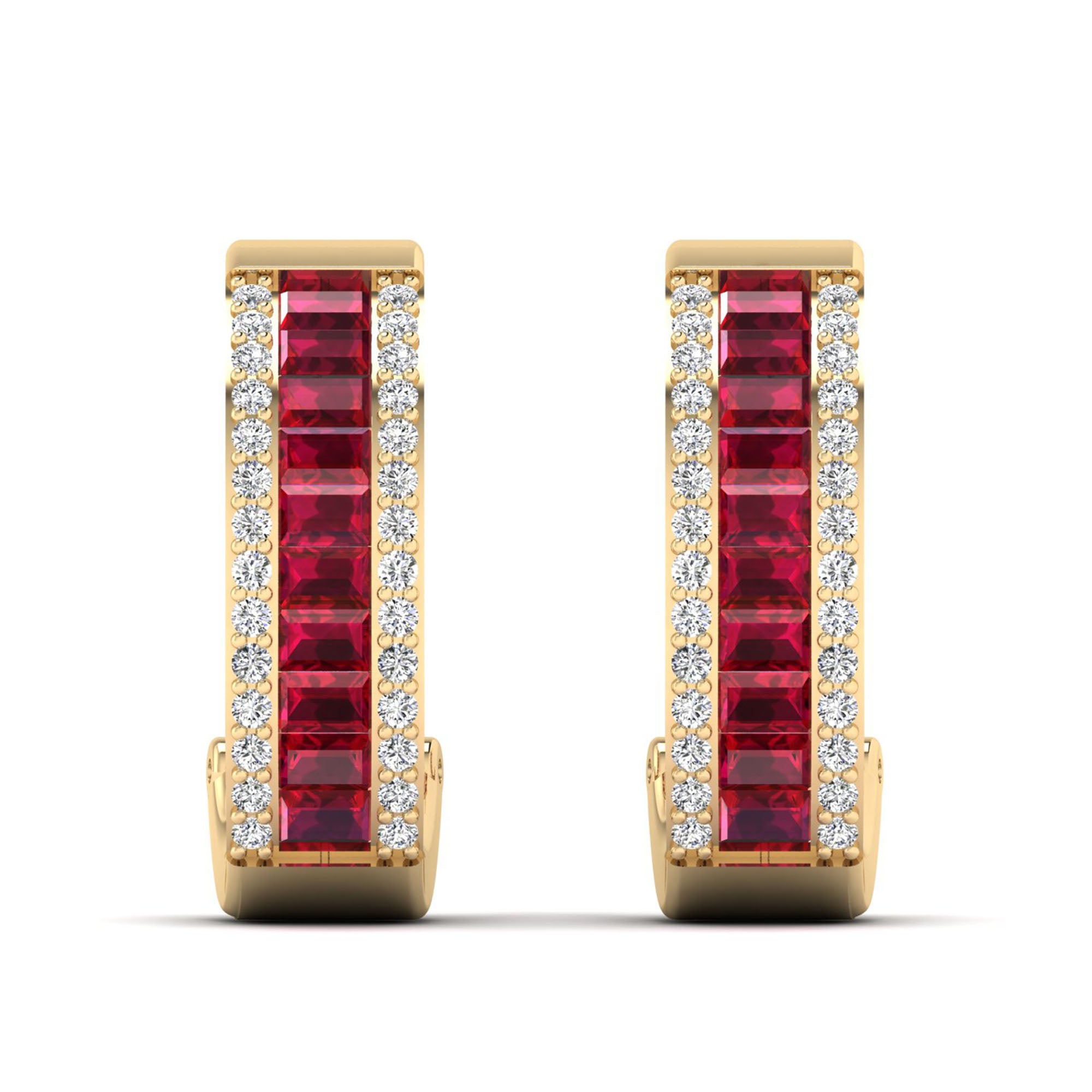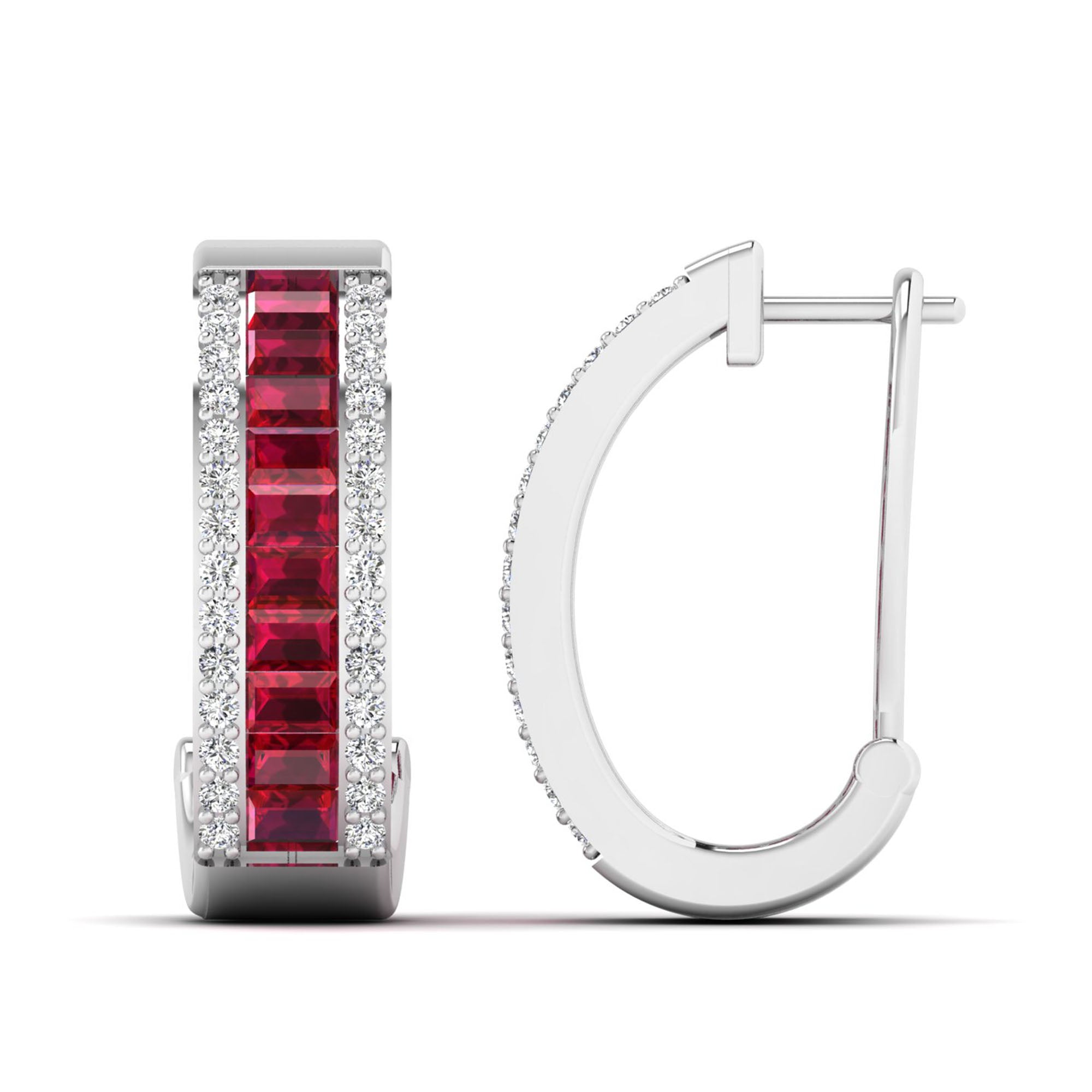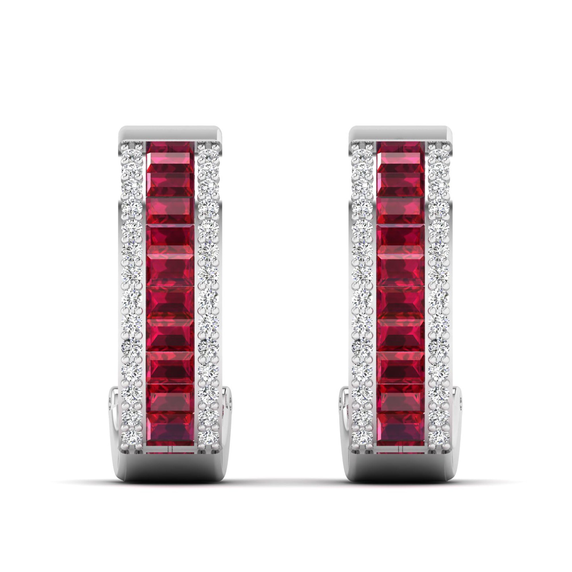 Baguette Ruby and Cluster Diamond Hoop Earrings
