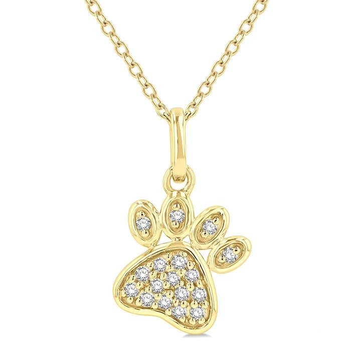 Add a touch of paw-some style to your outfit with our Dog Paw Mini Diamond Pendant! This cute and quirky necklace features a dainty dog paw charm encrusted with diamonds and set in elegant gold. Perfect for any dog lover, it's a playful and eye-catching accessory that will have tails wagging.