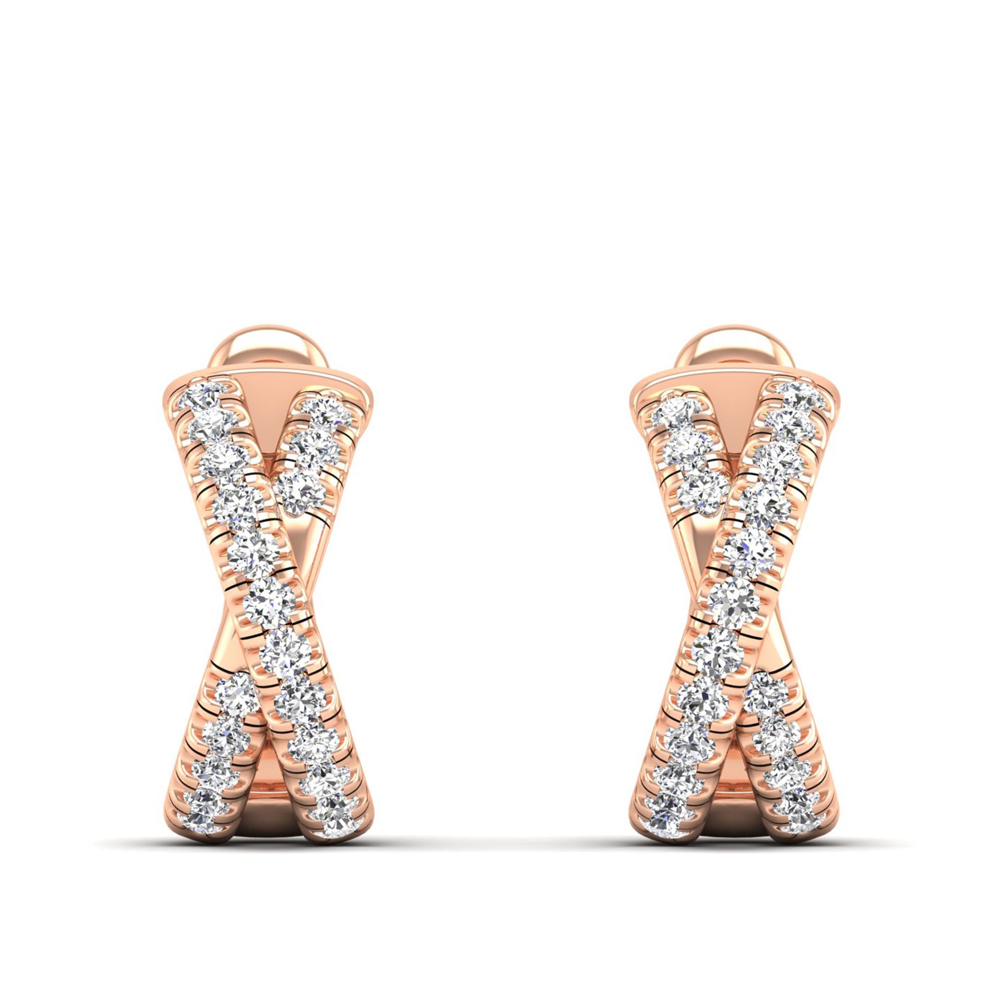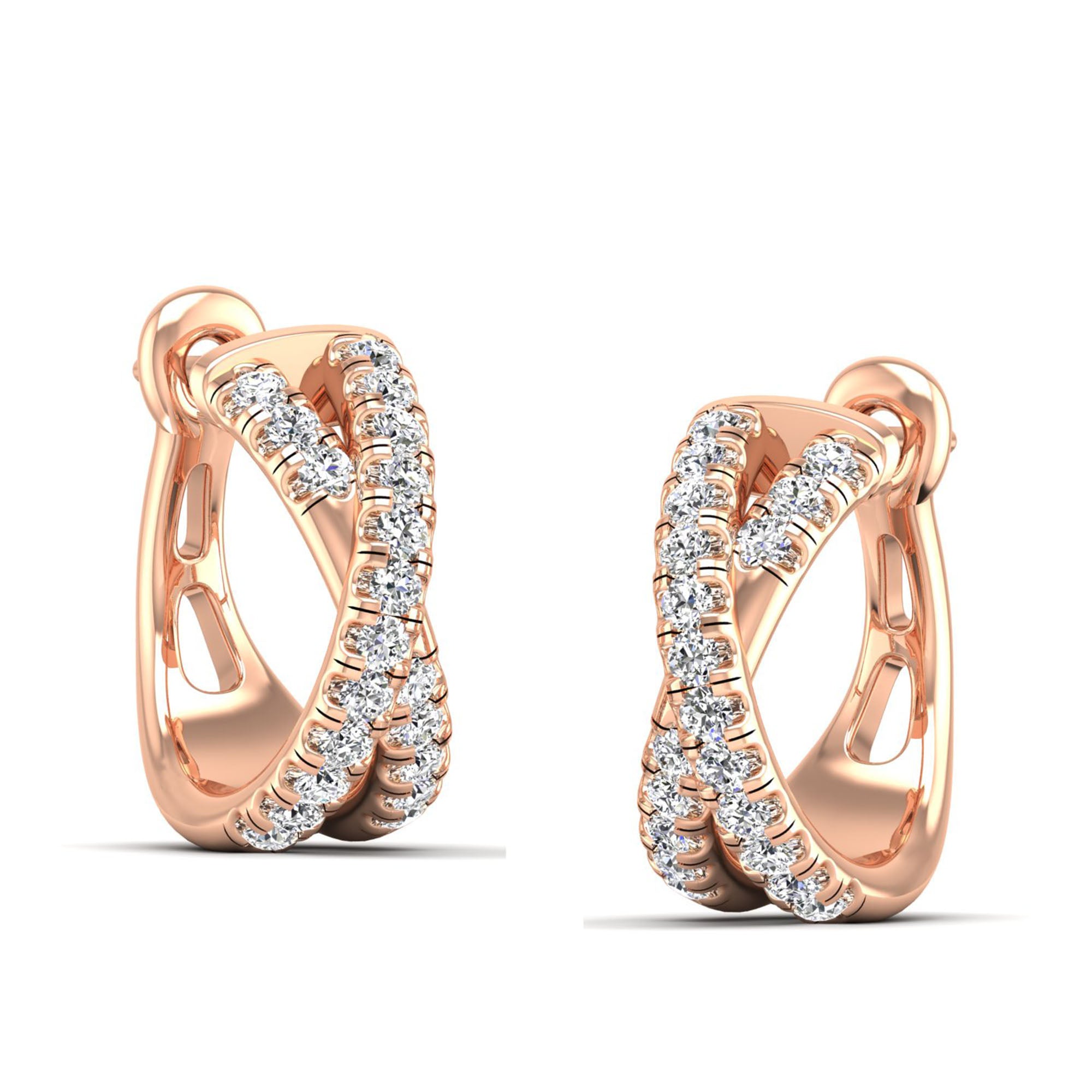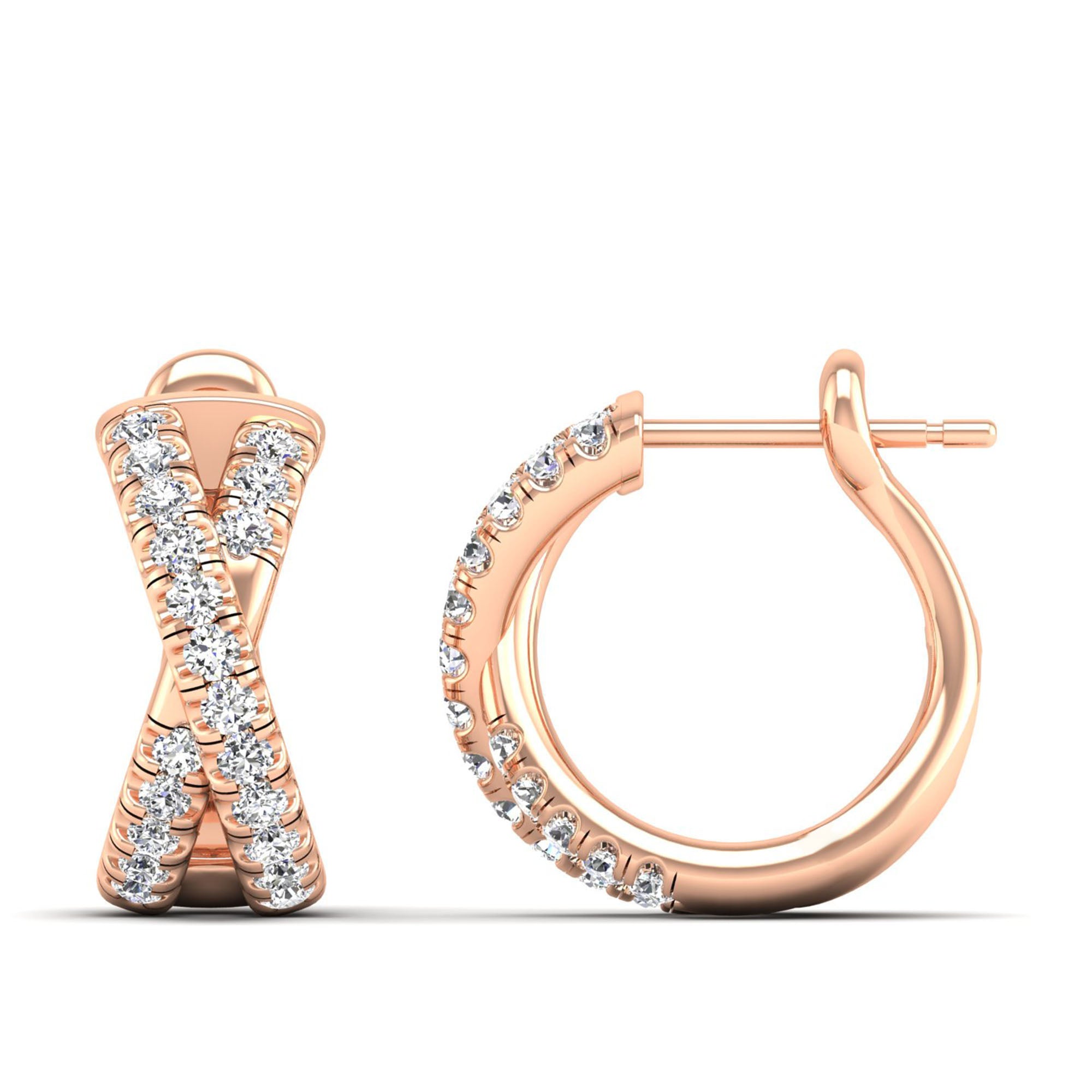 Pavé Round Diamond Criss Cross Hoop Earrings