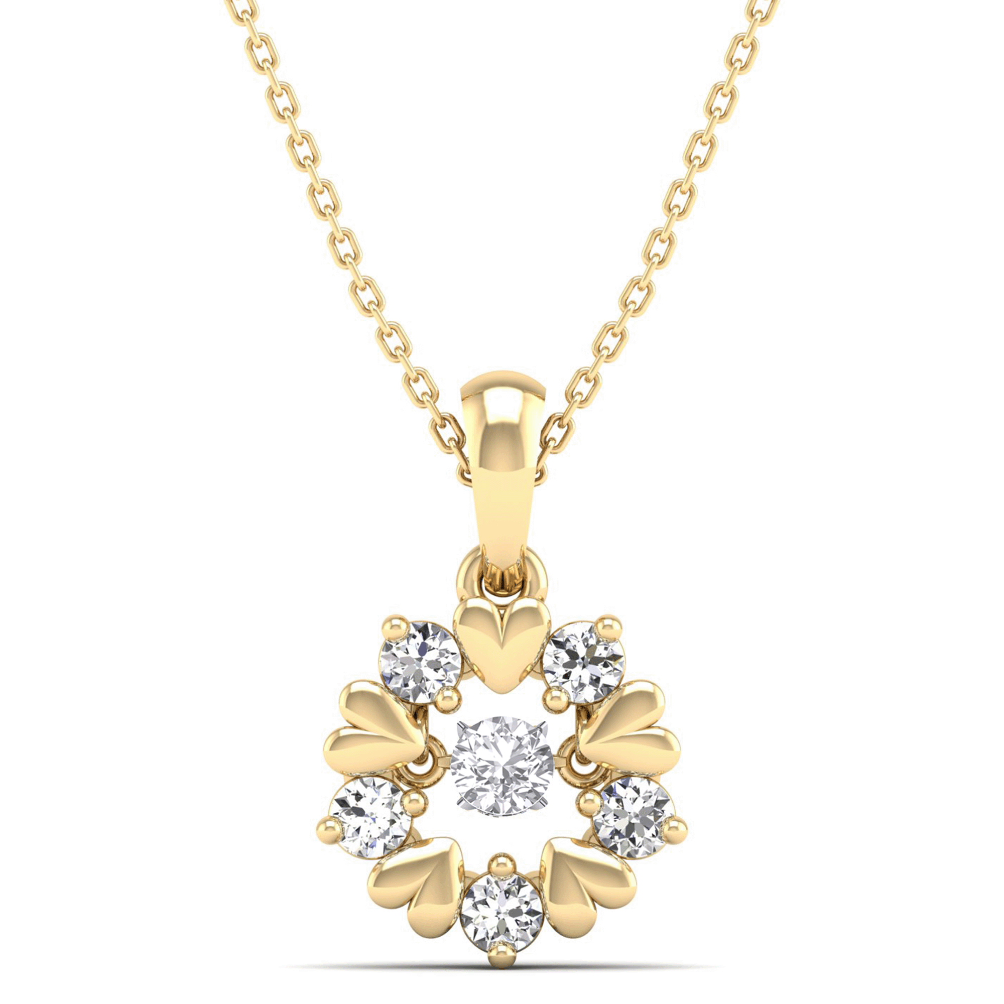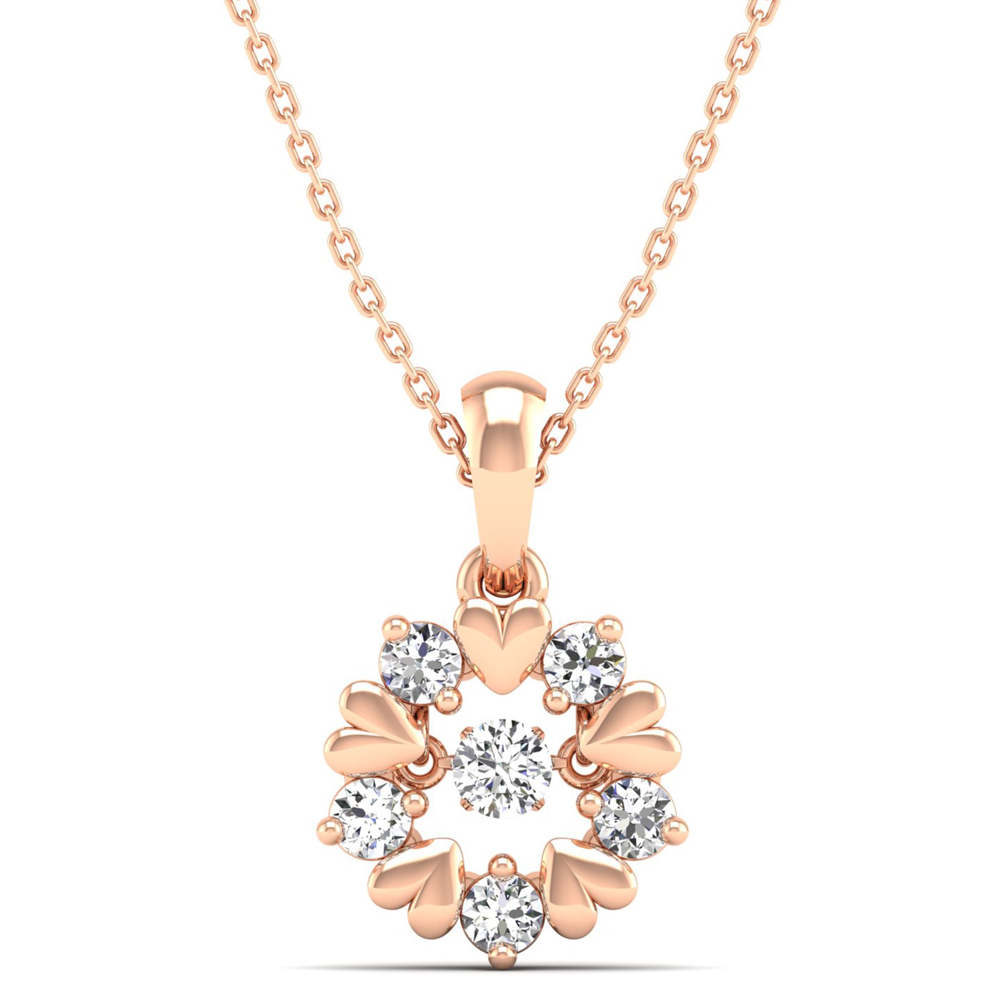 This stunning pendant features a diamond and heart halo design, creating a captivating and elegant piece of jewelry. The dancing motion of the diamond adds a unique and eye-catching touch, perfect for special occasions or everyday wear.
