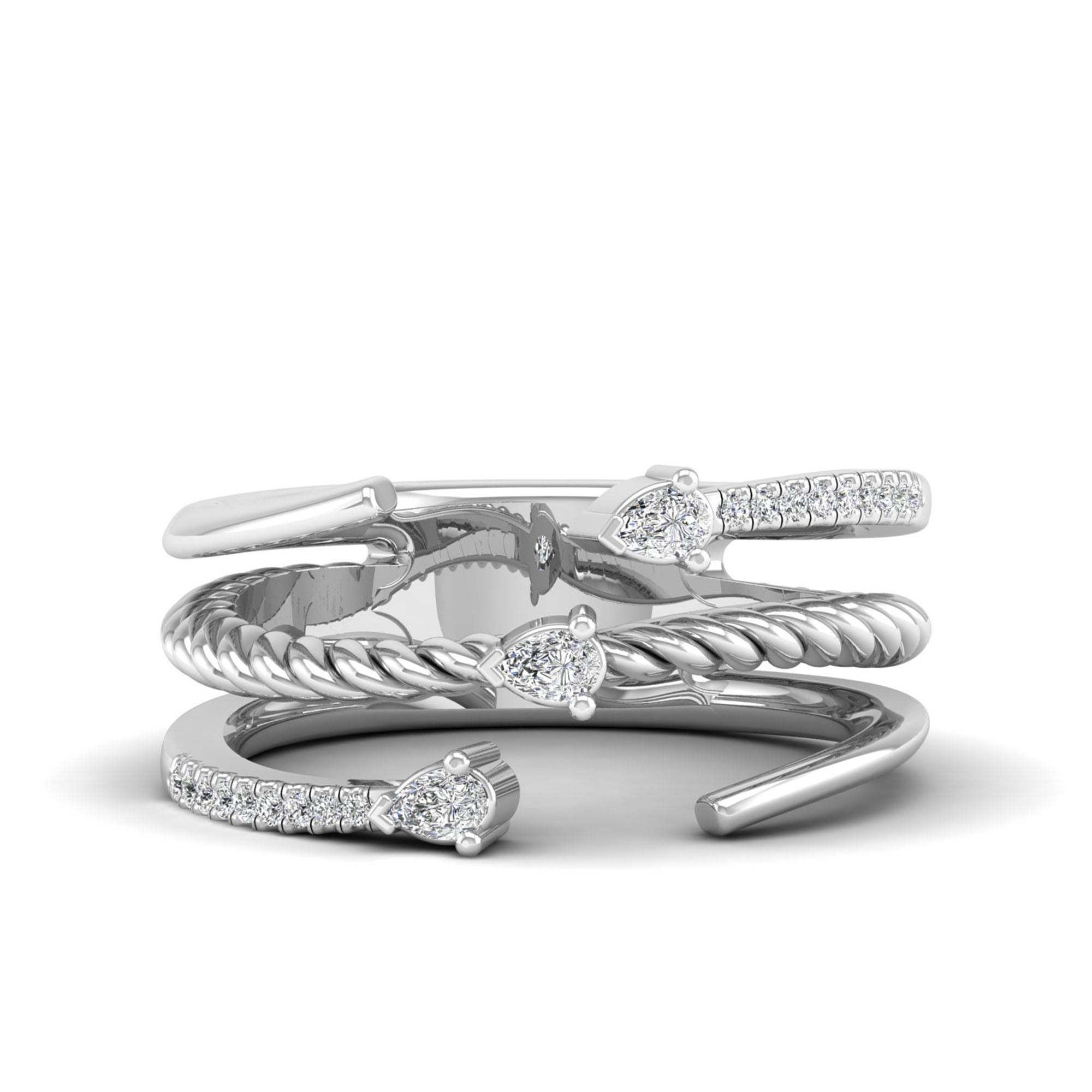 Twisted Triple Layer Bezel-Set Pear Diamond Ring