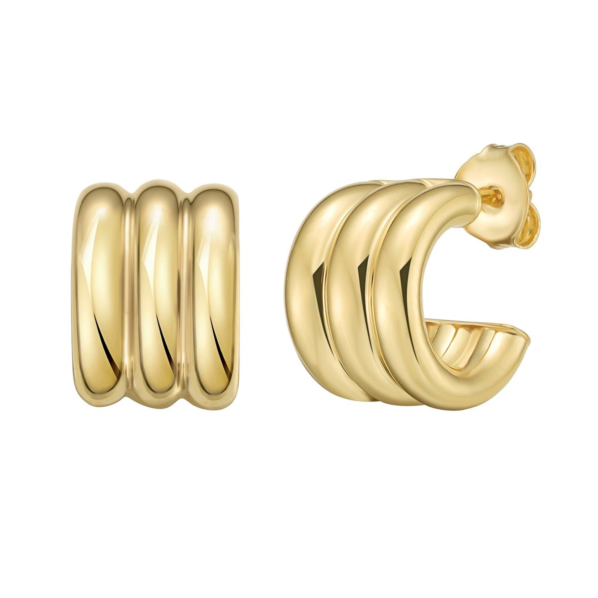 Sterling Silver Triple Row C-Hoop Earring with Push Back Clasp