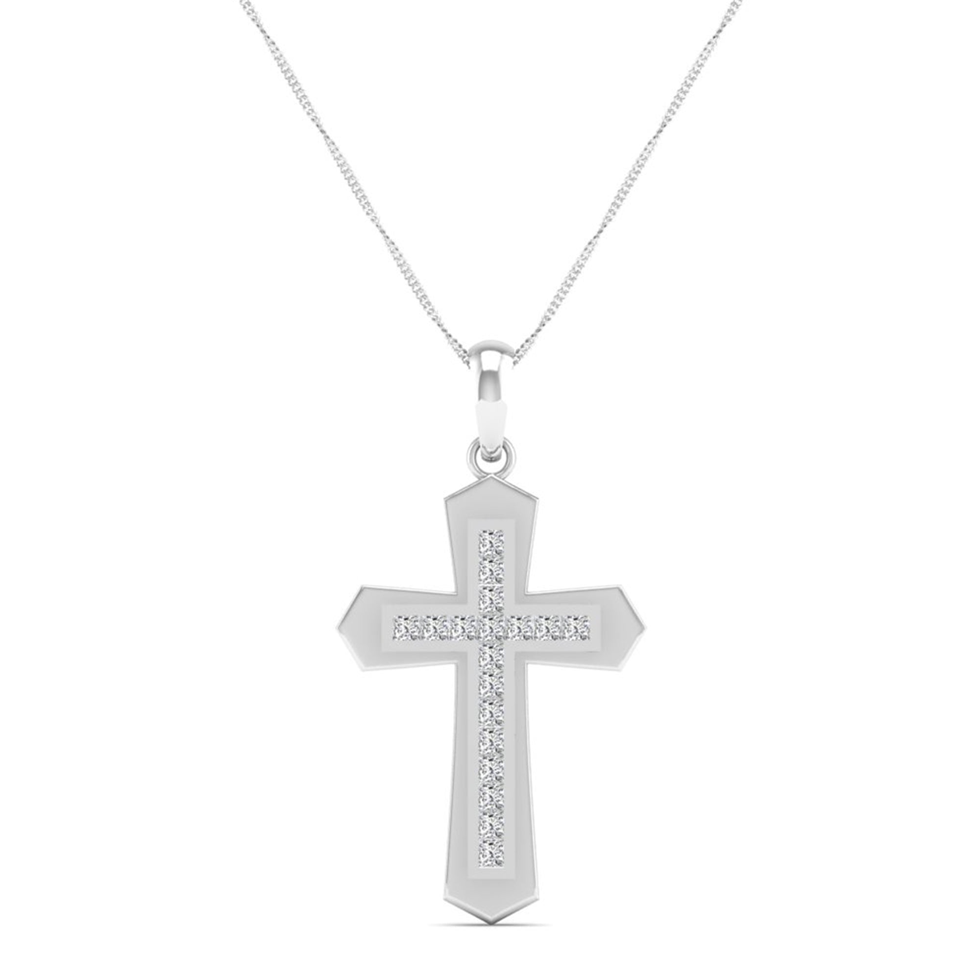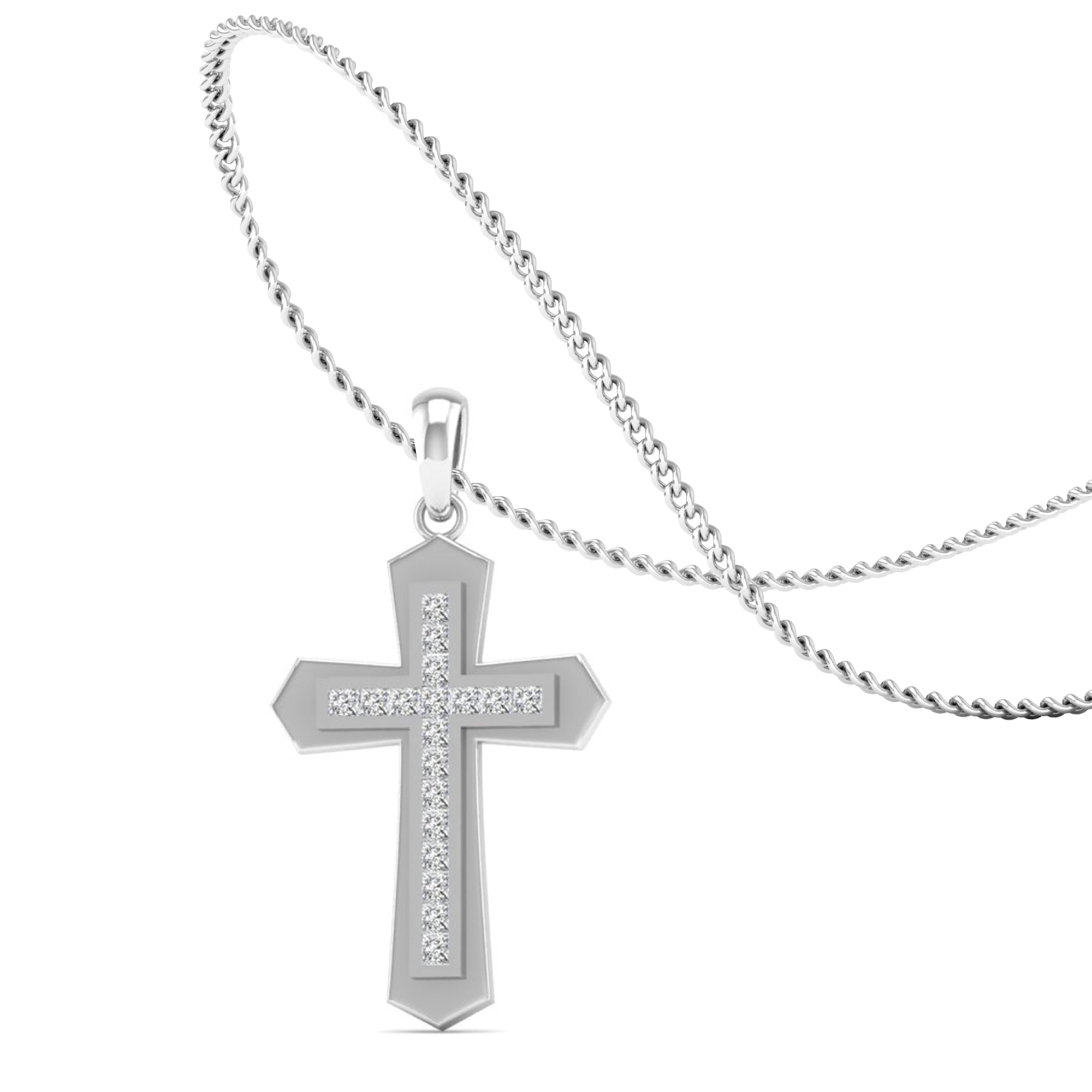 This sophisticated men's pendant features a double cross configuration with precision-set diamonds integrated into the architectural design.