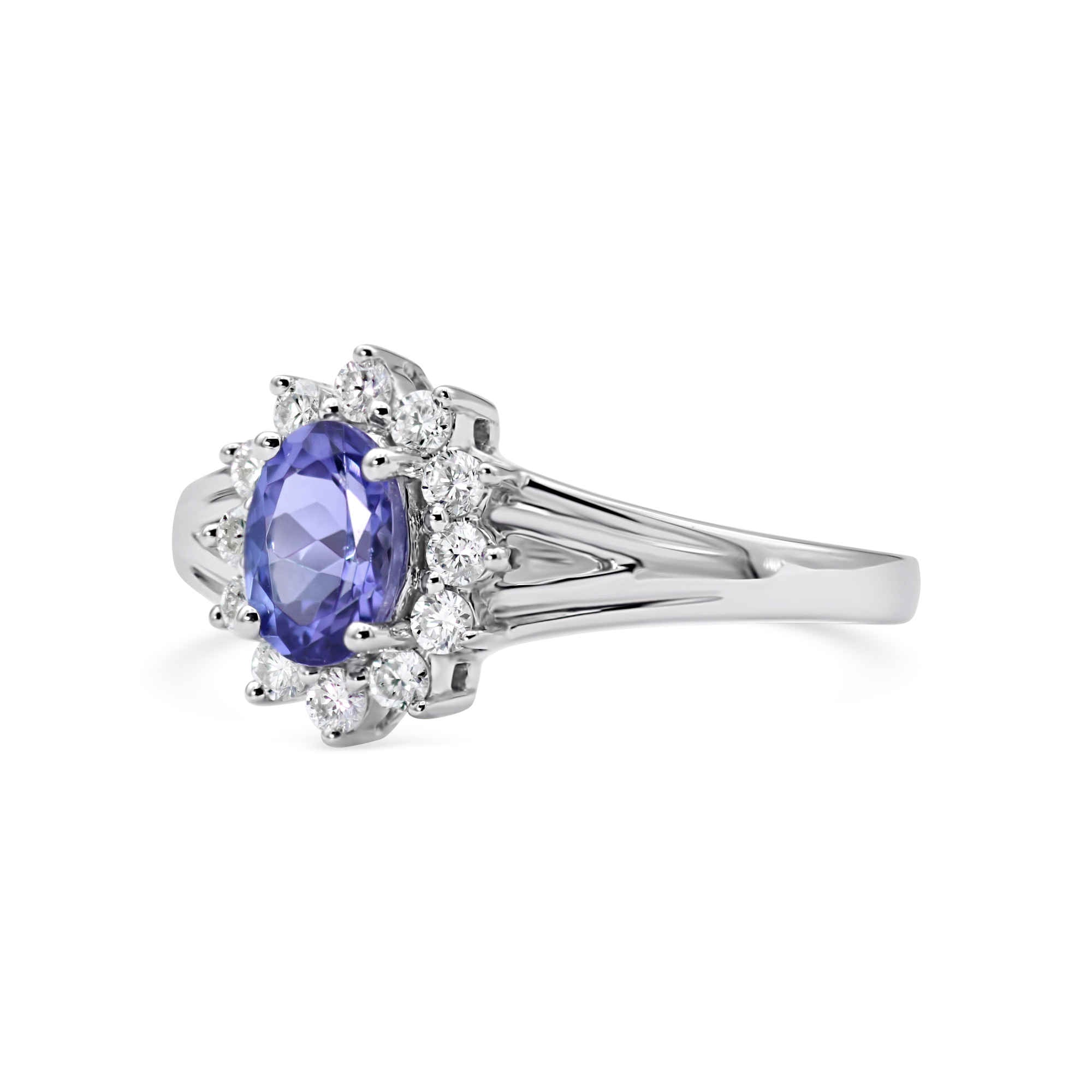 Shine bright with our Tanzanite and Lab Diamond Silver Ring! This stunning piece features a beautiful oval-shaped natural Tanzanite, surrounded by sparkling Lab Diamonds. Add a pop of color and elegance to any outfit with this unique and playful ring.