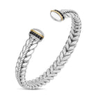 18K Gold & Silver Yellow Oxidized Finish Polished Woven Cuff Bangle with Round Black Spinel