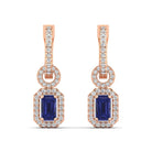 Expertly crafted from brilliant tanzanite and halo diamonds, these dangle earrings are a showstopper. With exceptional sparkle and radiance, they add a touch of elegance and sophistication to any outfit.