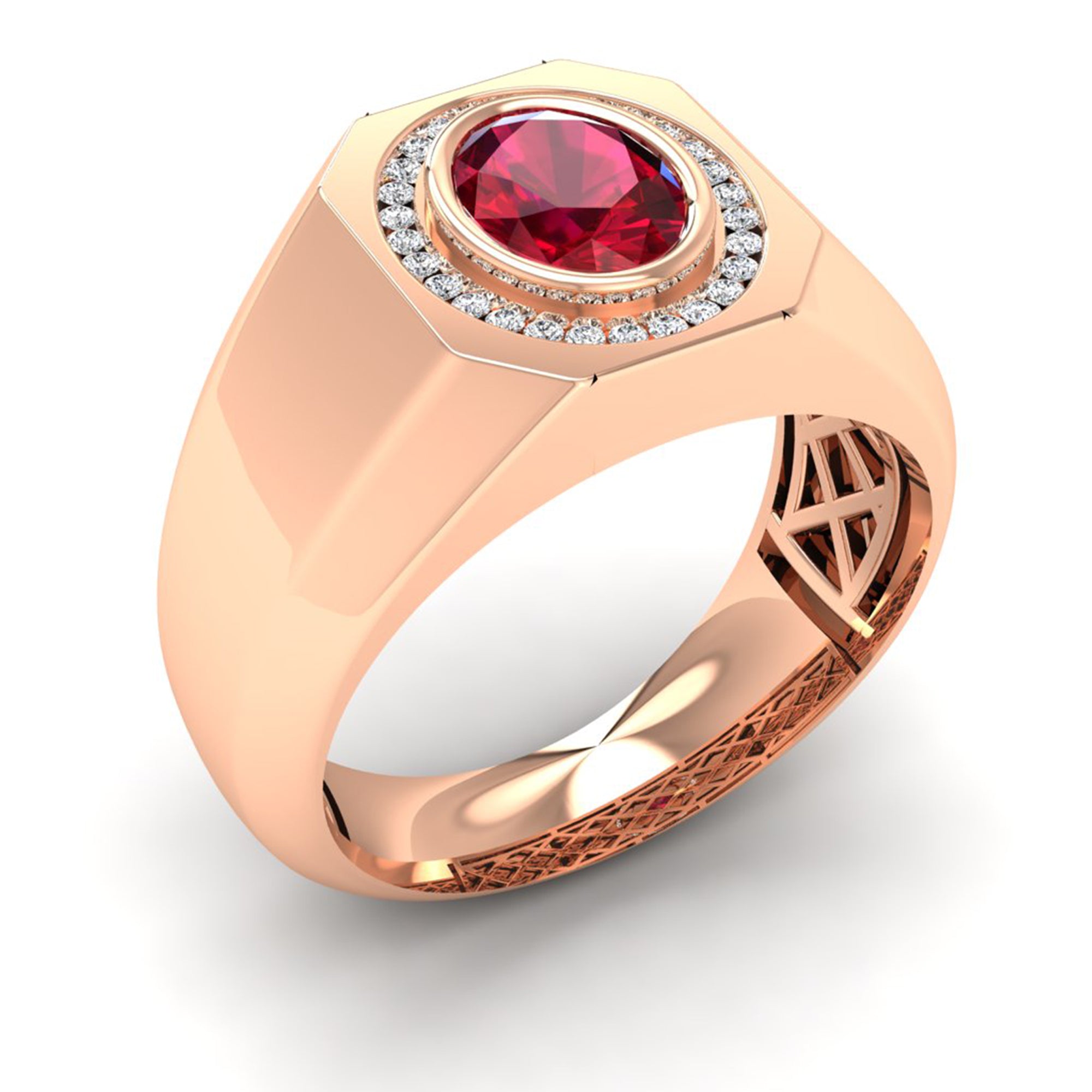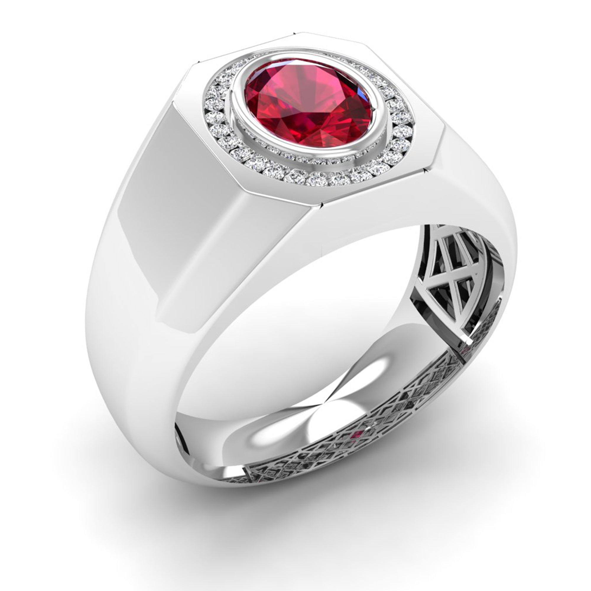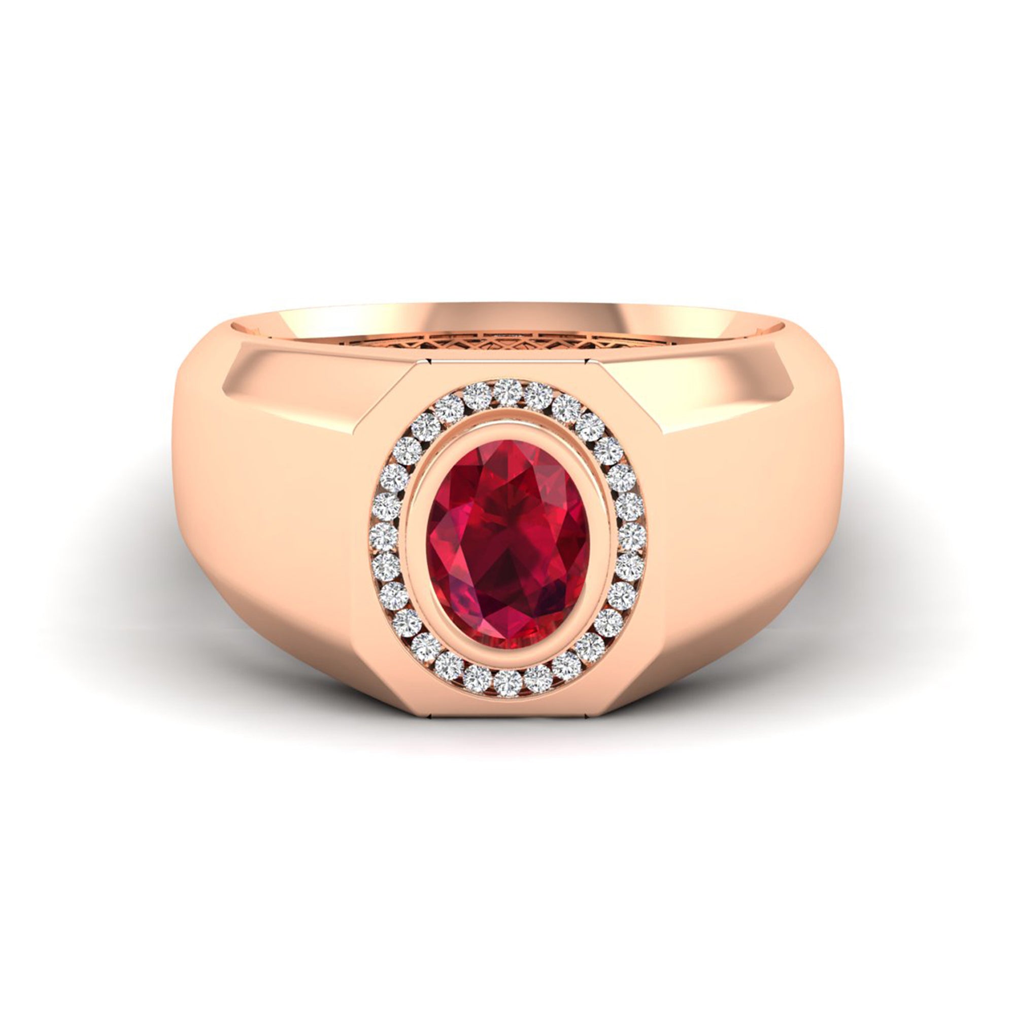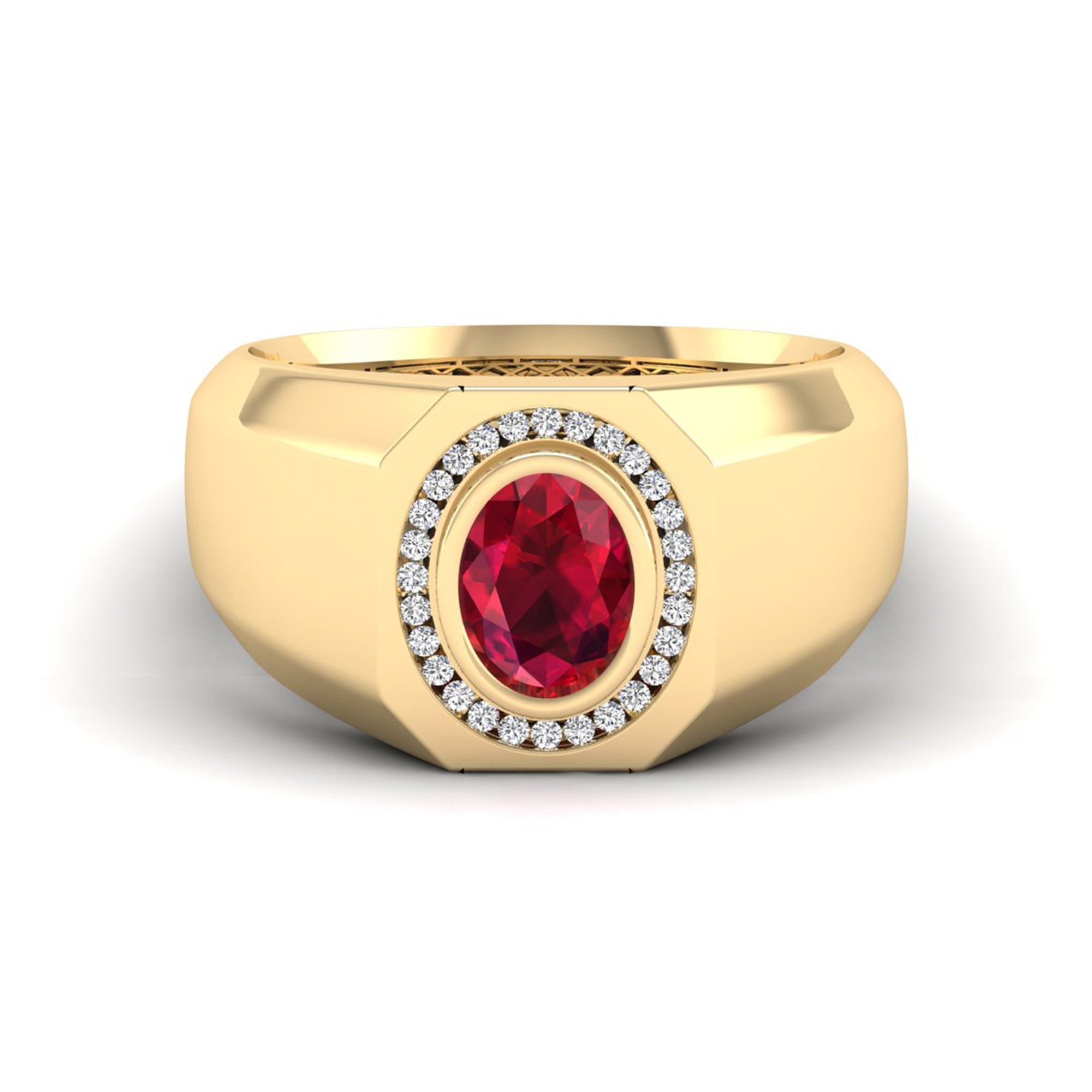 Men's Oval Ruby Bezel-Set Halo Diamond Ring