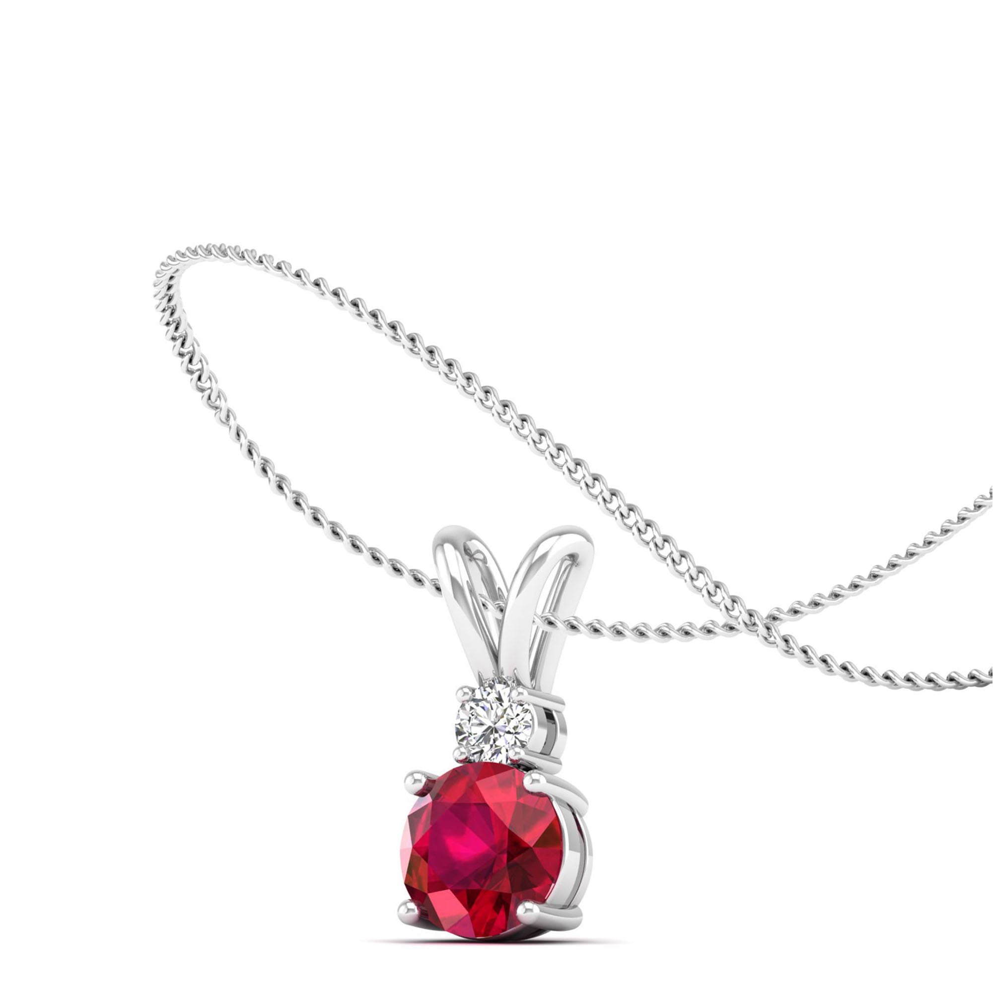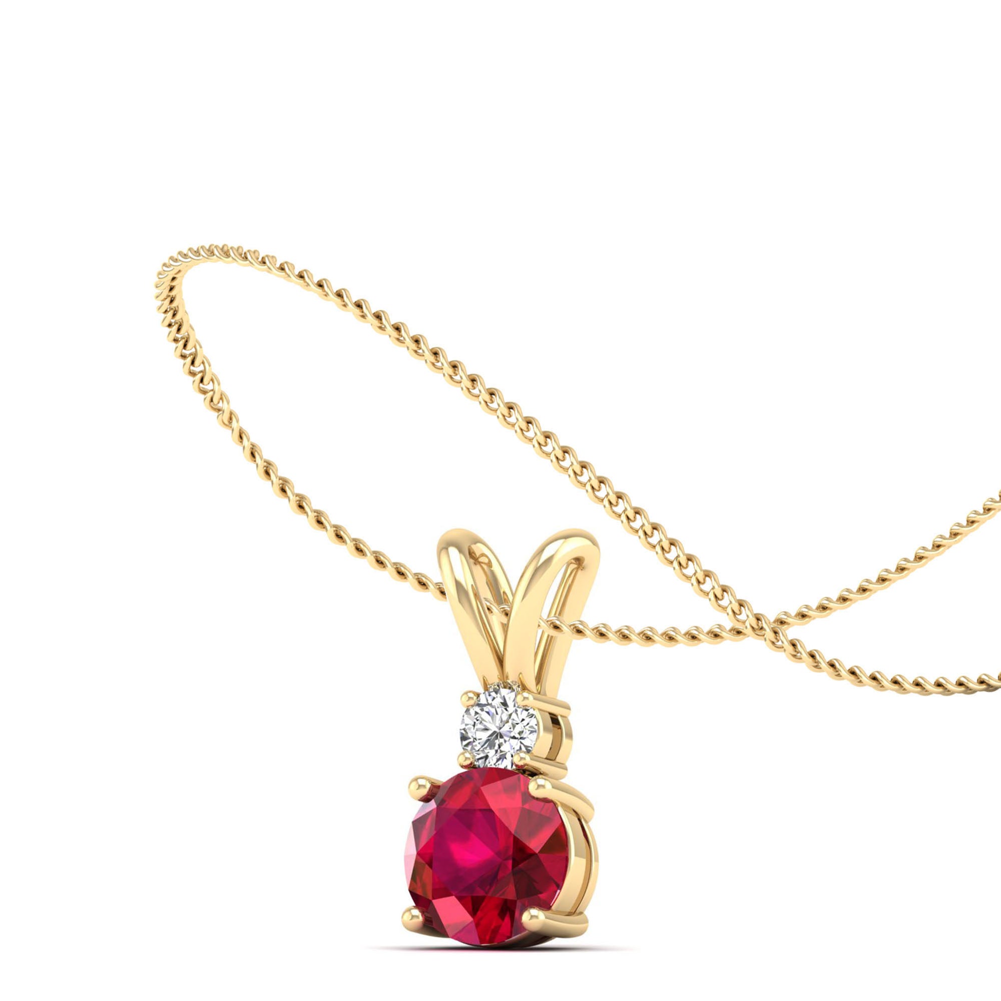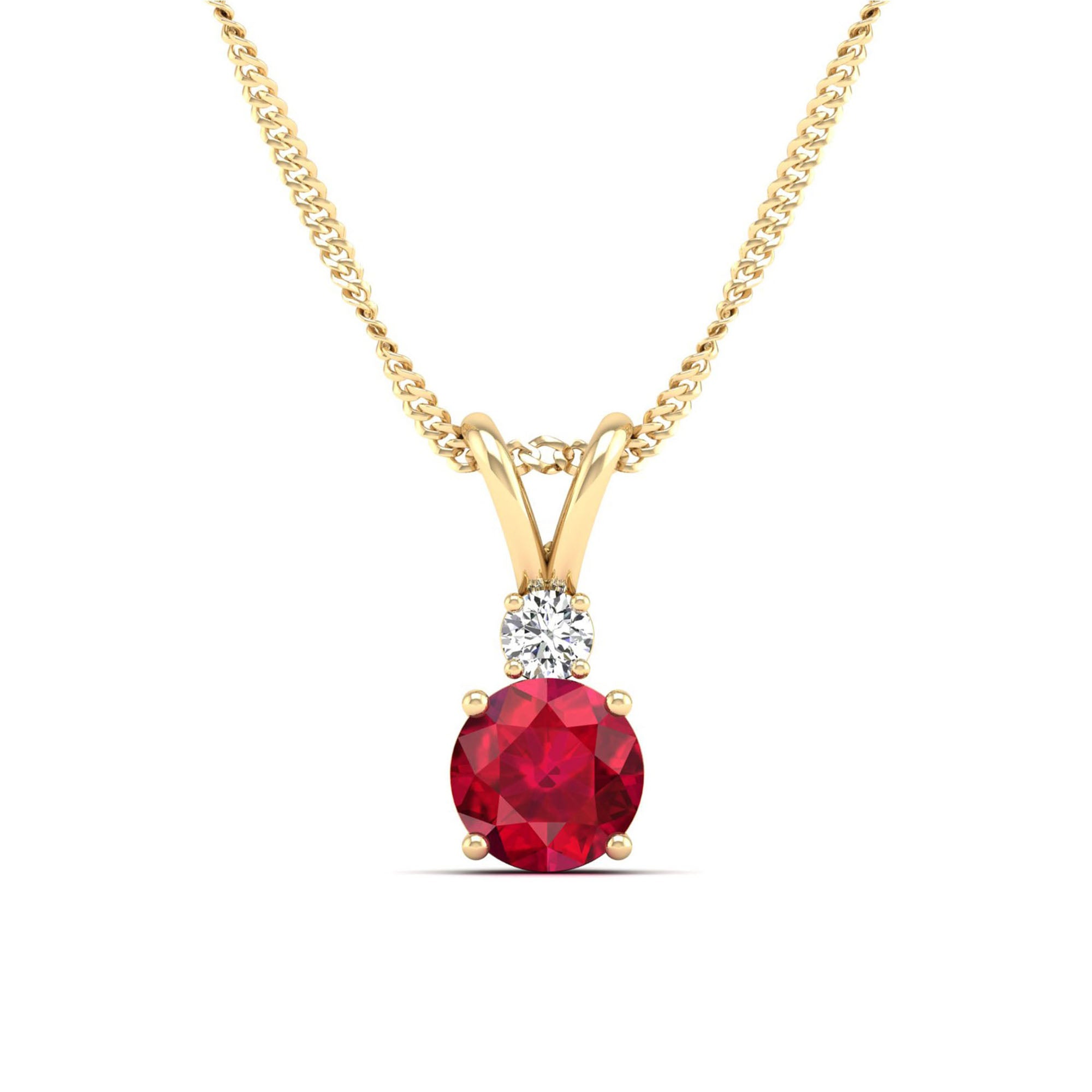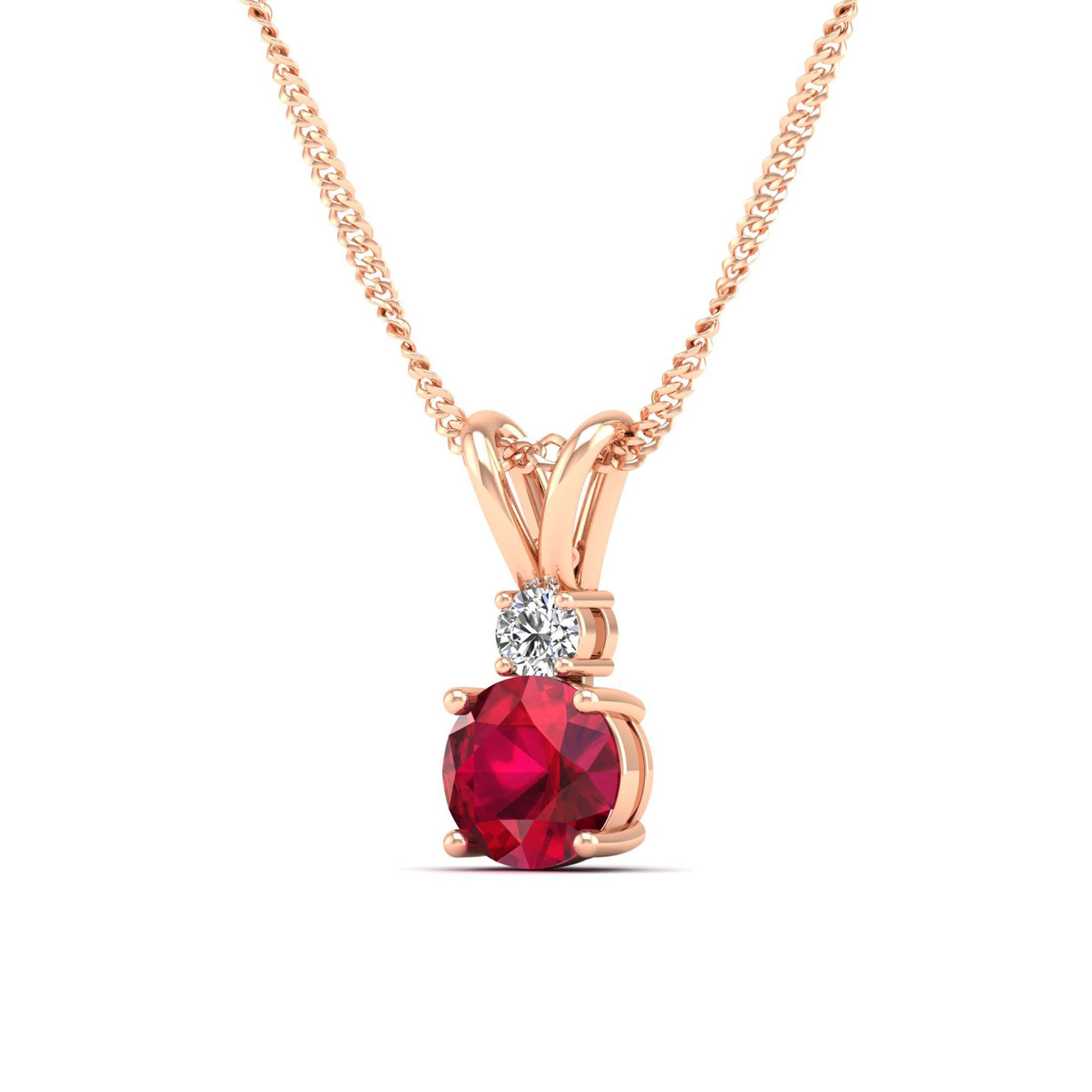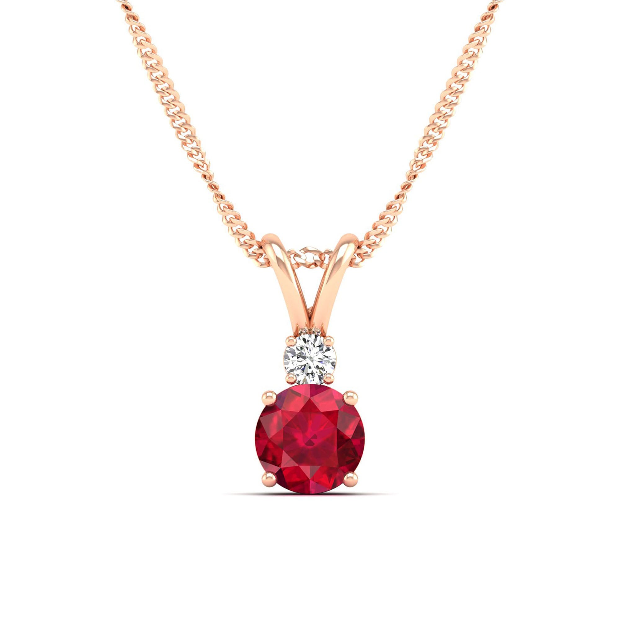 Add a touch of elegance to your look with our Round Ruby and Diamond Pendant. Made with high-quality materials, this pendant features a stunning ruby gemstone surrounded by sparkling diamonds.