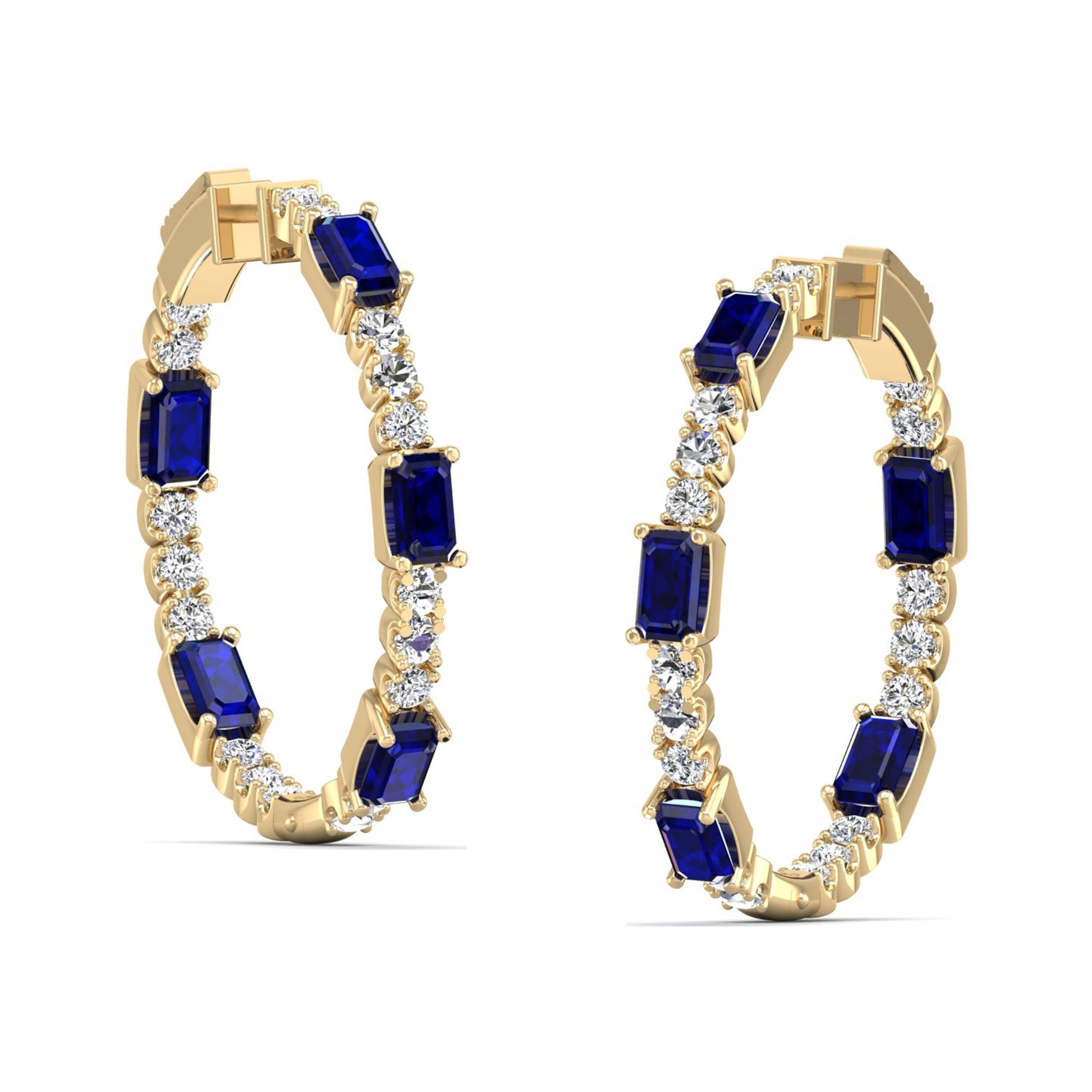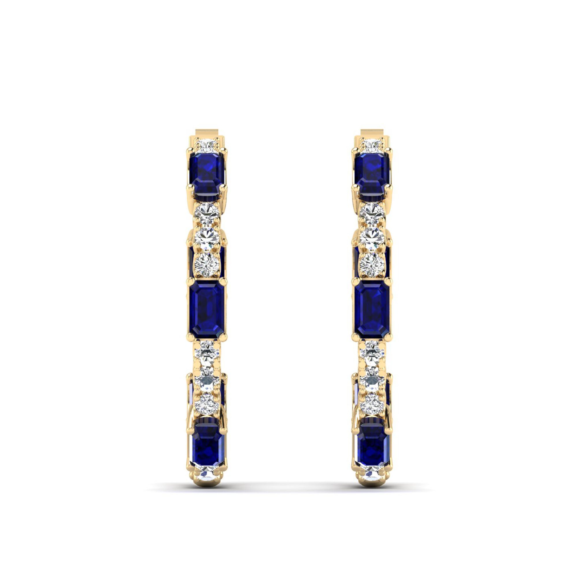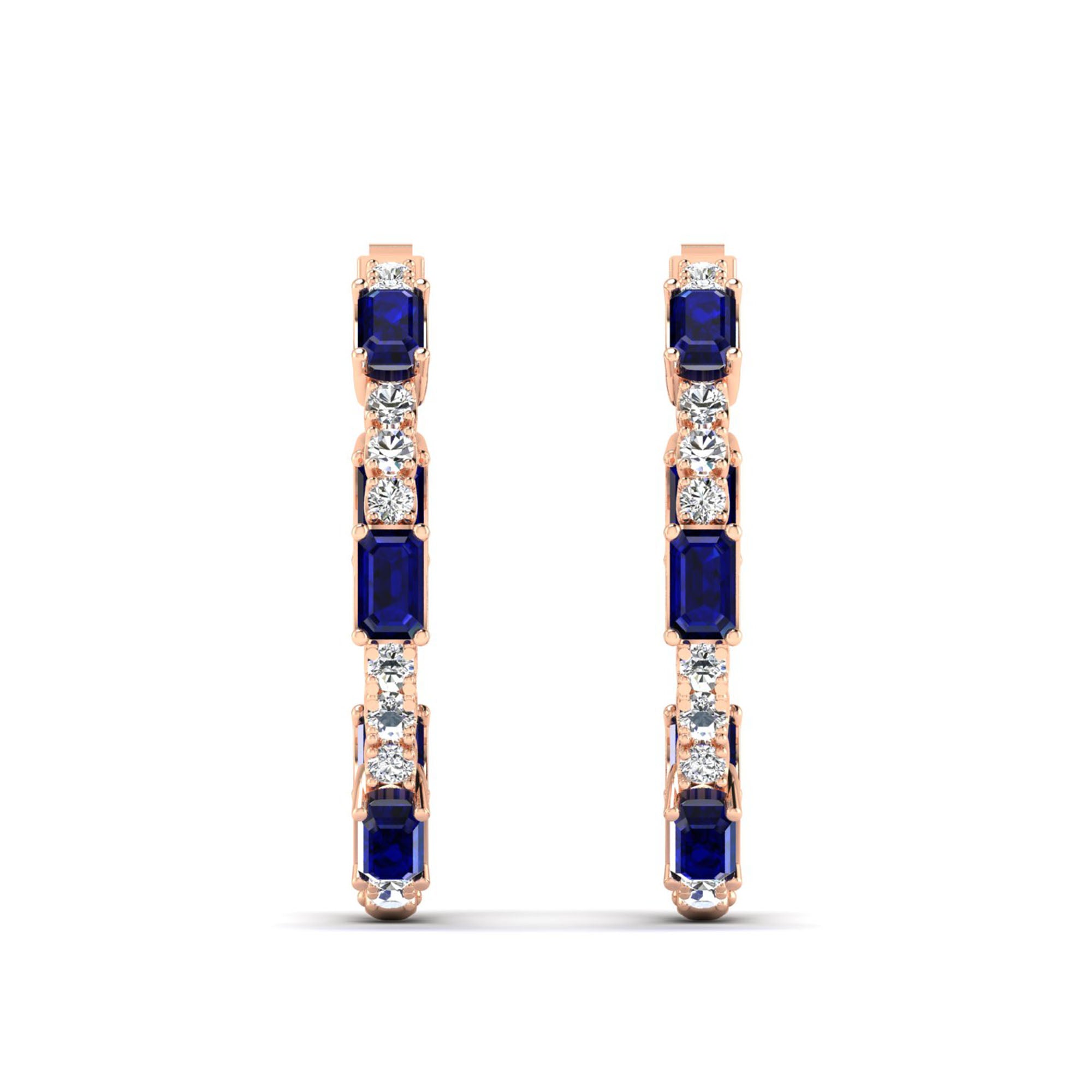 Expertly crafted, the Olivia Sapphire and Diamond Inside-Out Hoops feature a stunning array of sapphire and diamonds, creating a bold and elegant look.