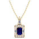 Sapphire Halo Baguette and Round Diamond Pendant