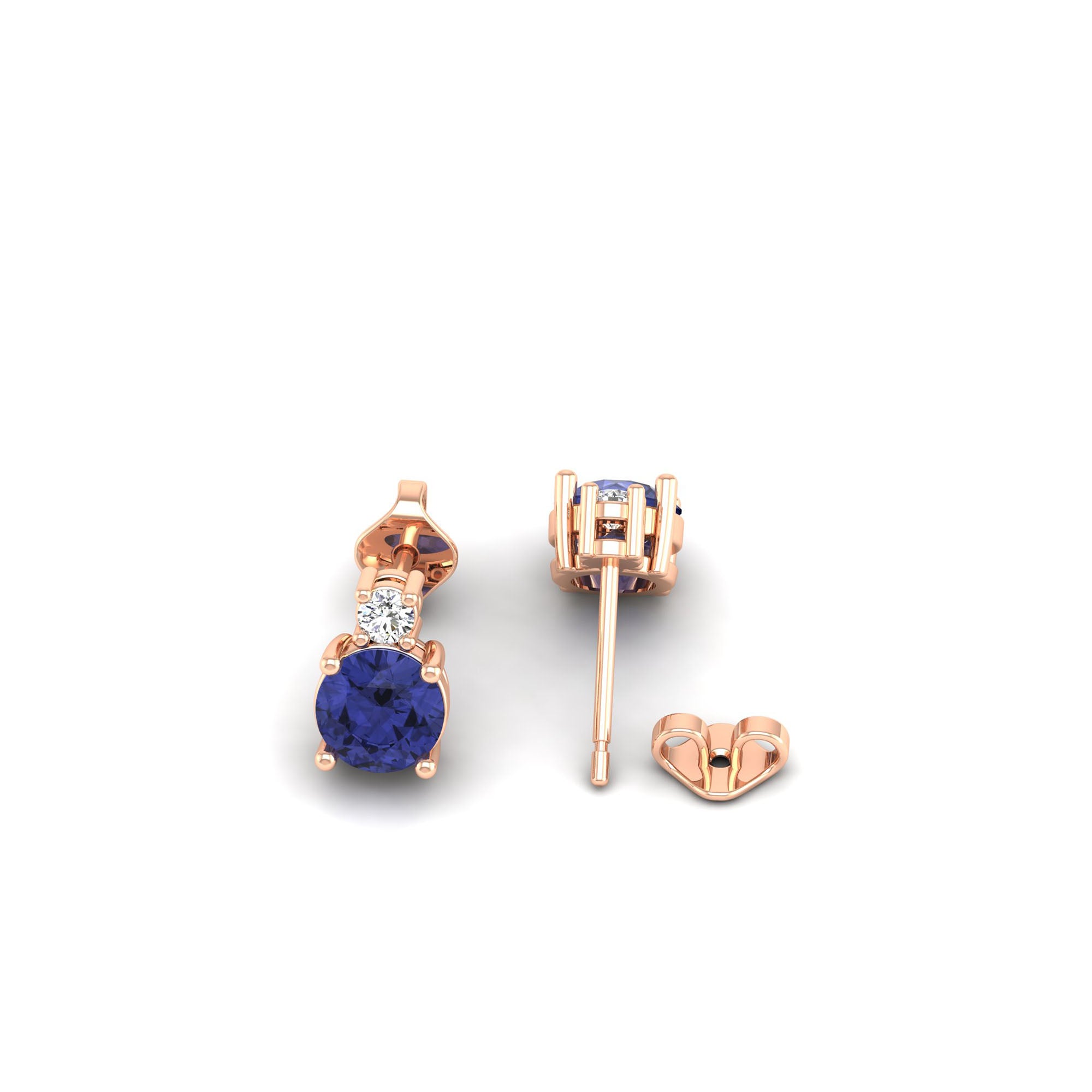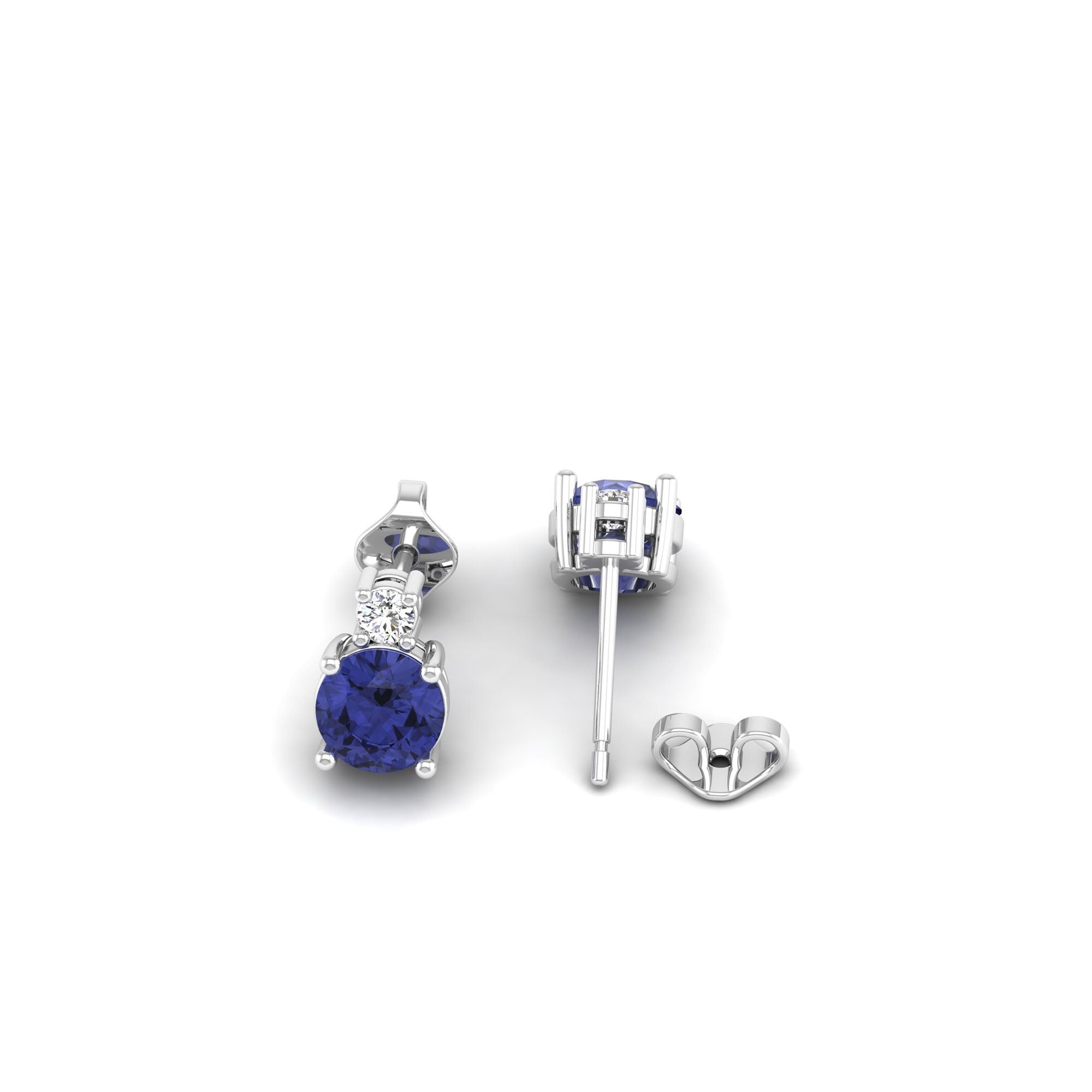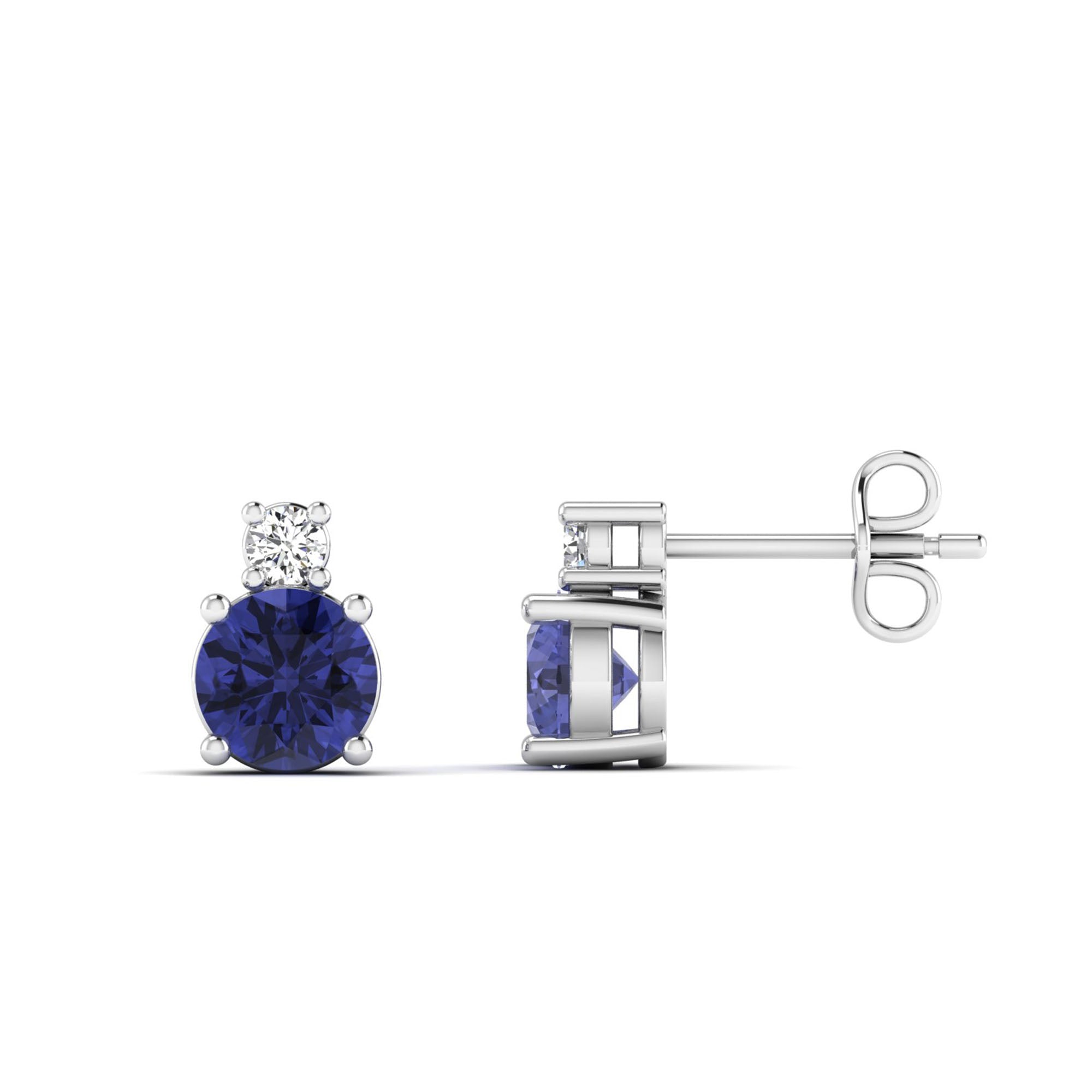 Classic Round Tanzanite and Diamond Stud Earrings