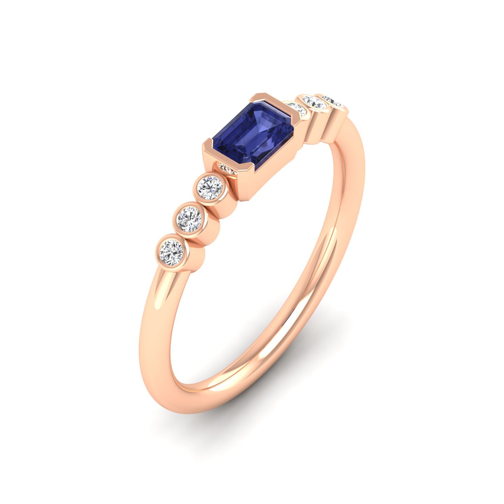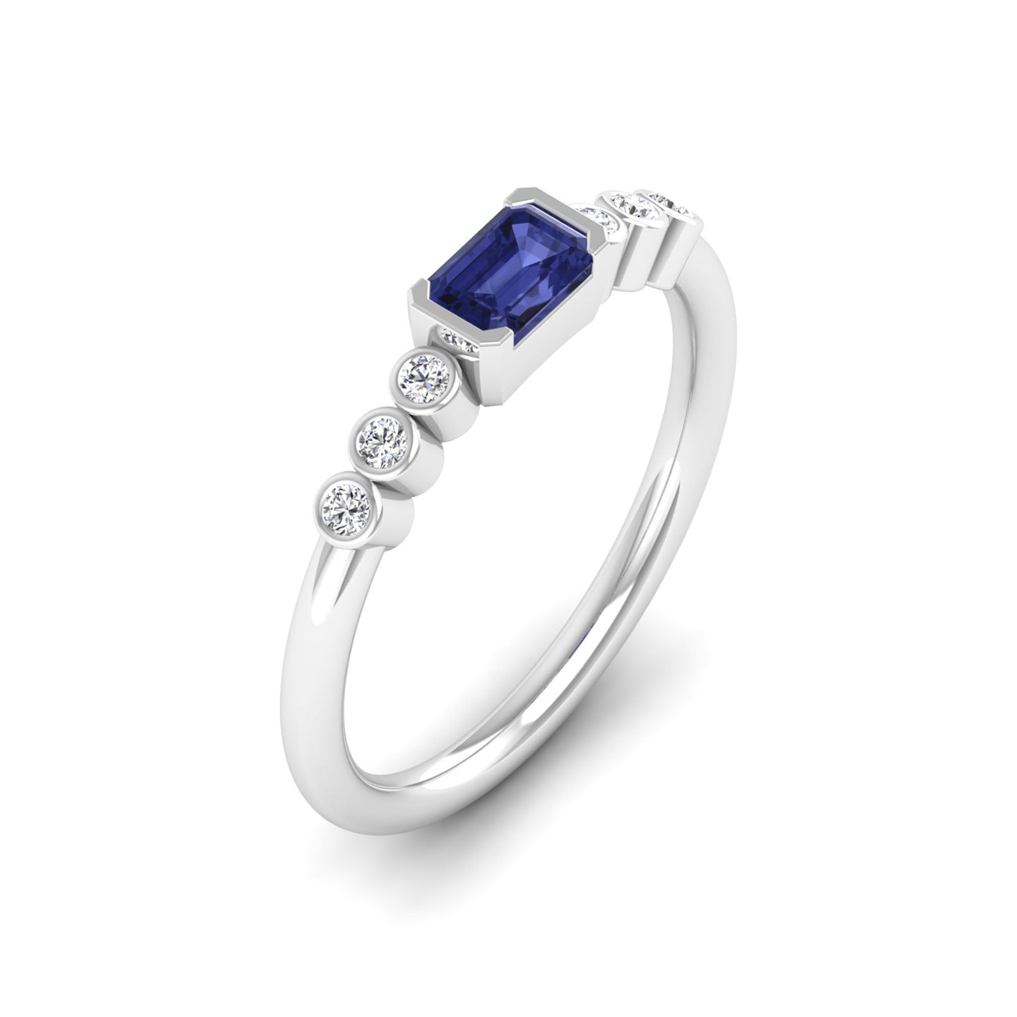 East-West Tanzanite and Bezel Diamond Ring