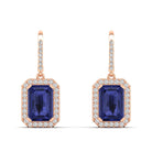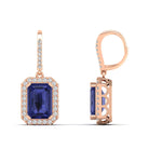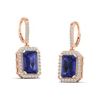 Emerald Cut Tanzanite and Halo Diamond Drop Earrings