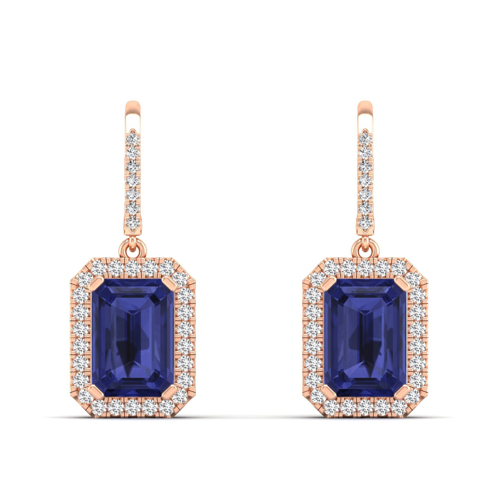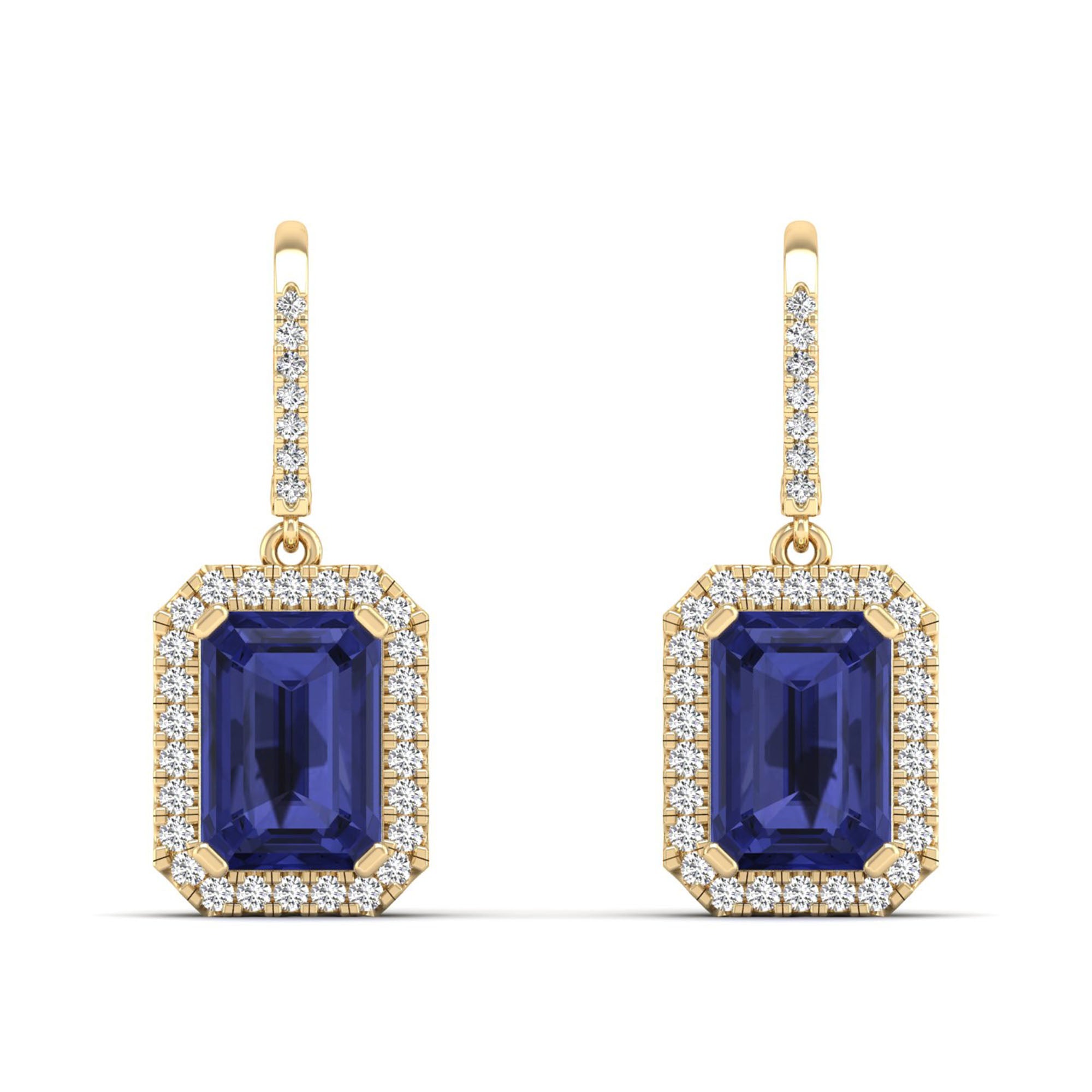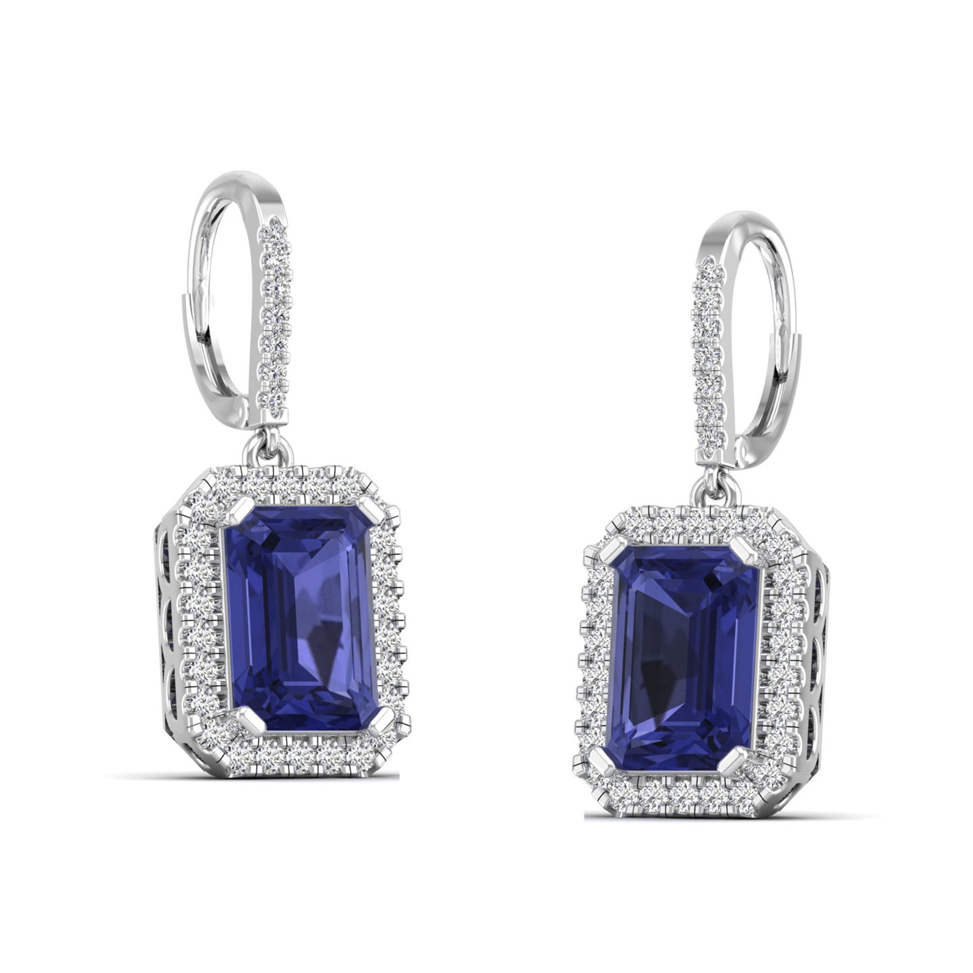 Expertly crafted with an emerald-cut tanzanite stone and a halo of sparkling diamonds, these drop earrings are sure to dazzle. The elegant design combines classic and modern elements, perfect for any special occasion or adding a touch of luxury to any outfit.