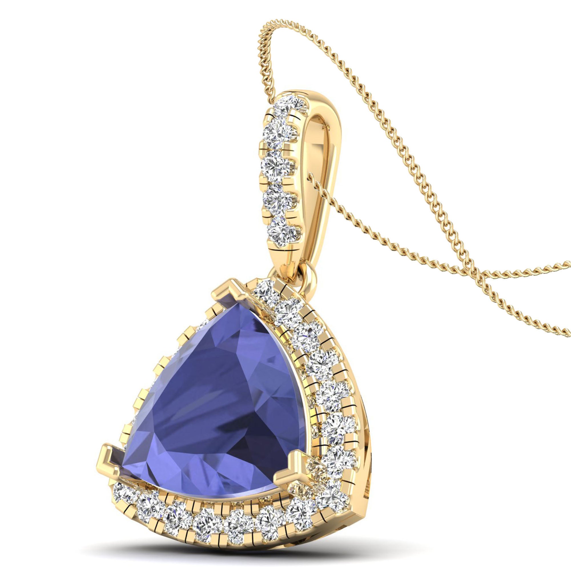 This exquisite pendant features a stunning triangle-shaped tanzanite gemstone accented by sparkling diamonds, creating a sophisticated and elegant piece of jewelry. Perfect for adding a touch of glamour to any outfit, this pendant is sure to make a statement and become a cherished addition to any jewelry collection.