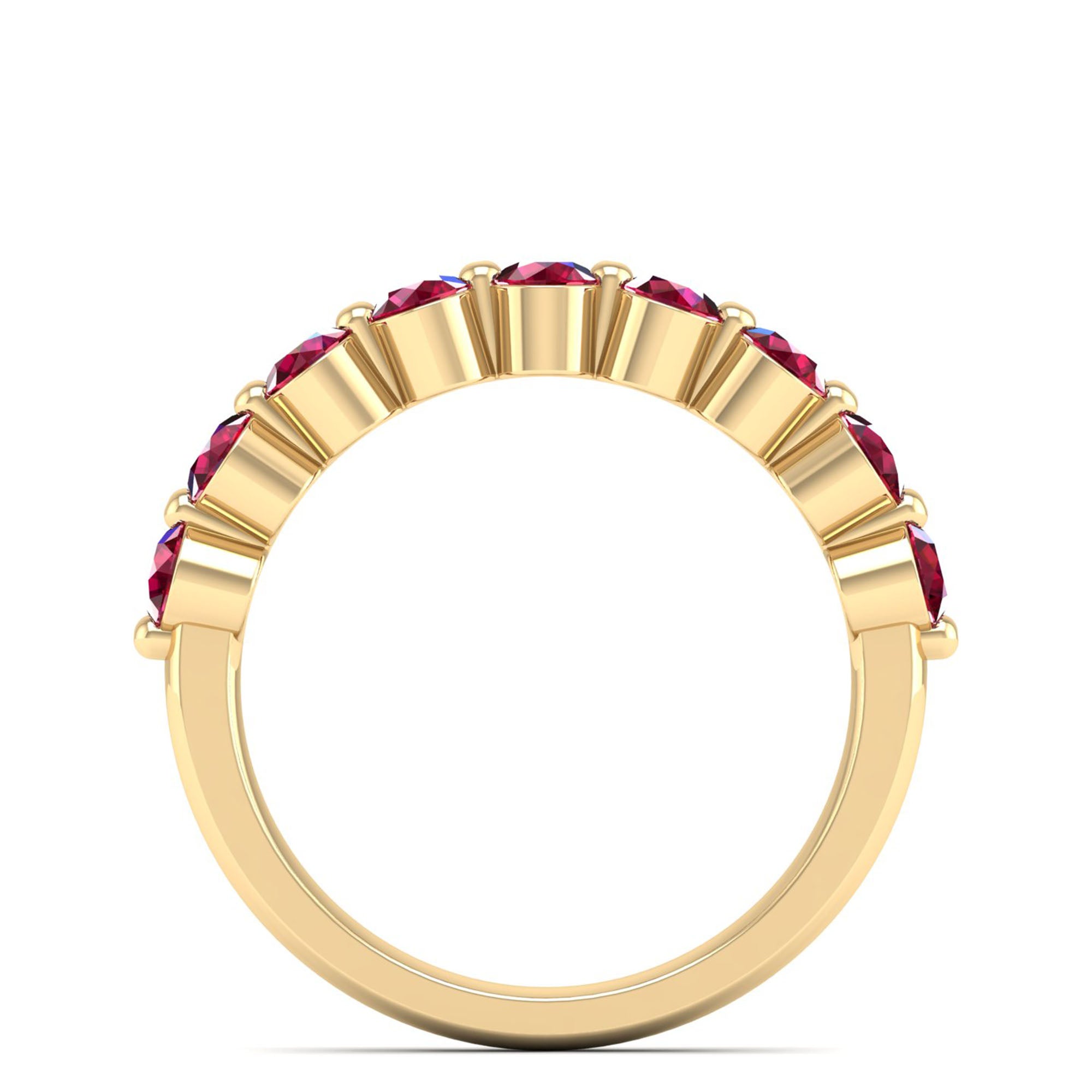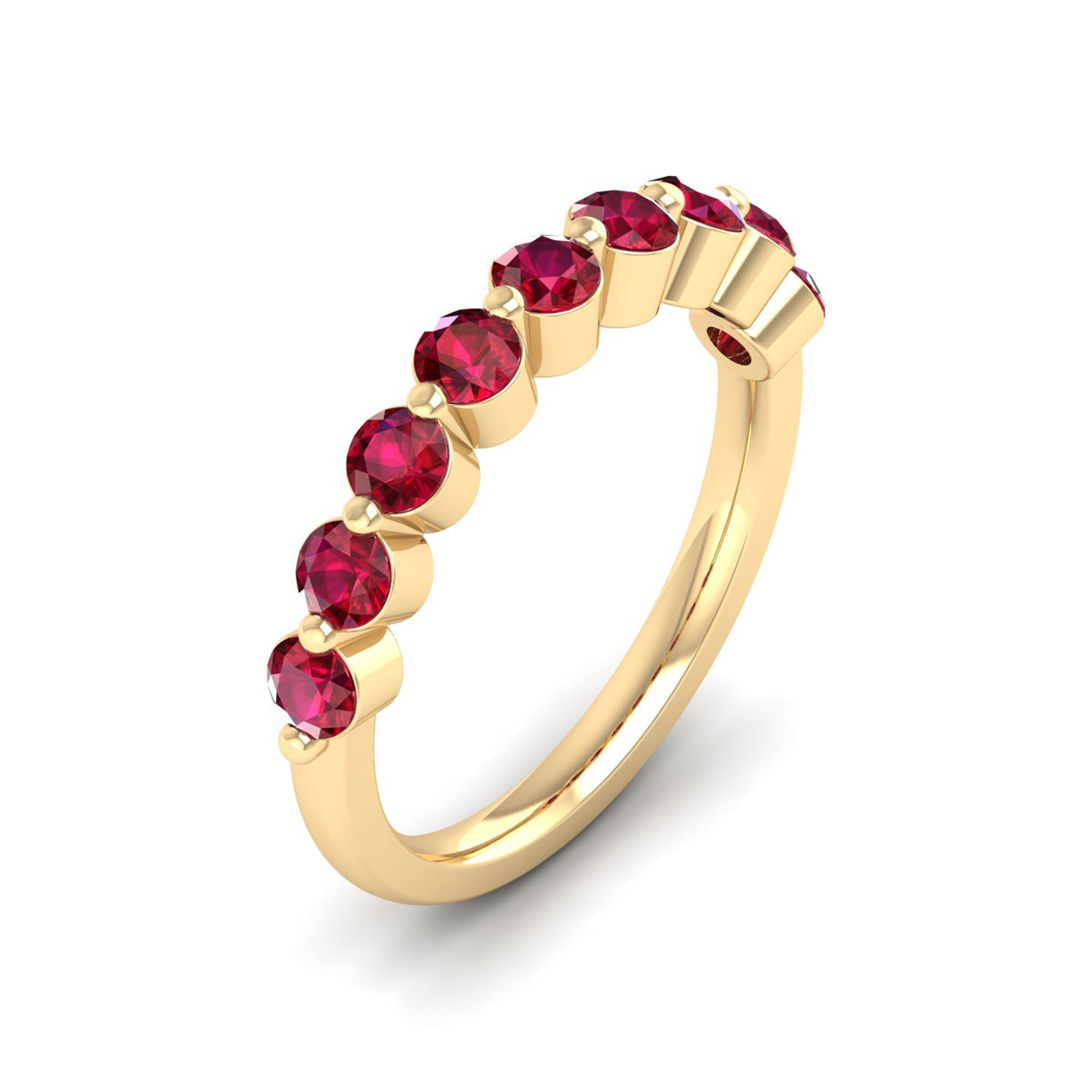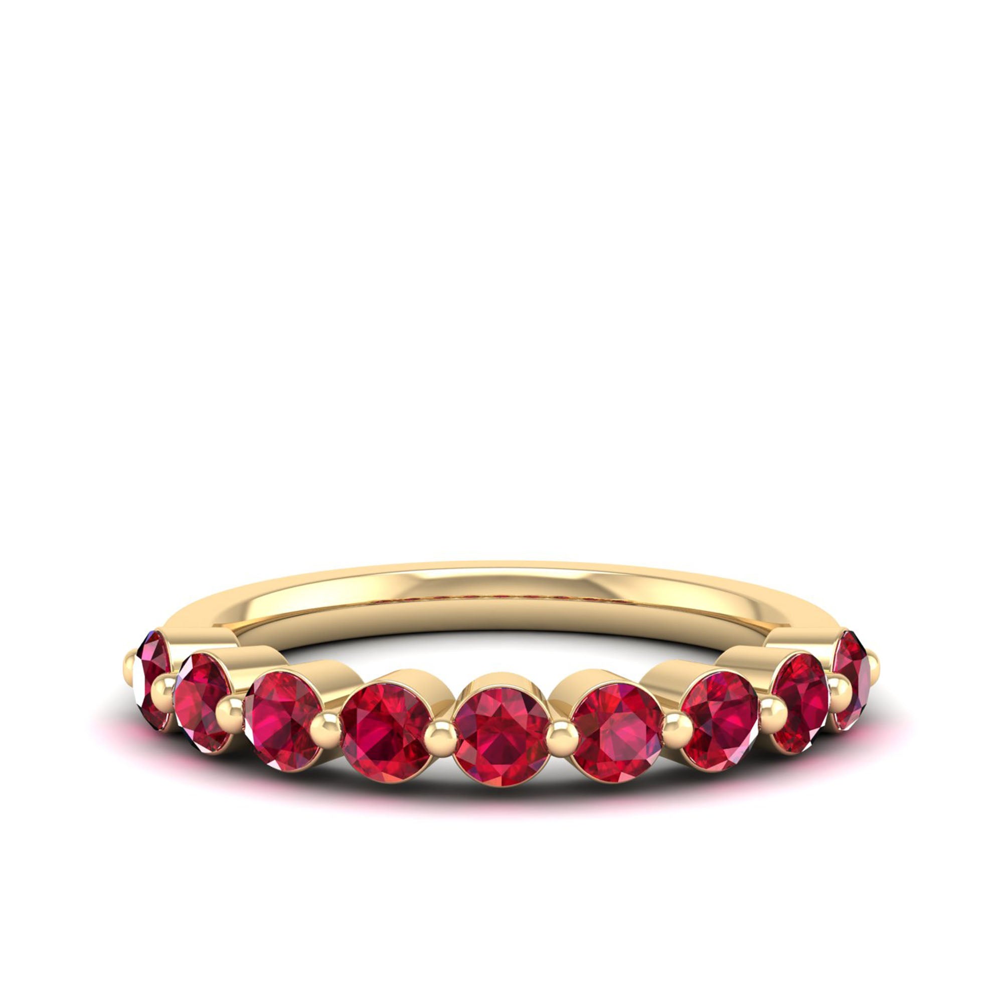 Expertly crafted with nine ruby stones, this stackable ring is a timeless and elegant addition to any jewelry collection. Each stone is carefully selected for its vibrant green color and faceted for maximum sparkle.