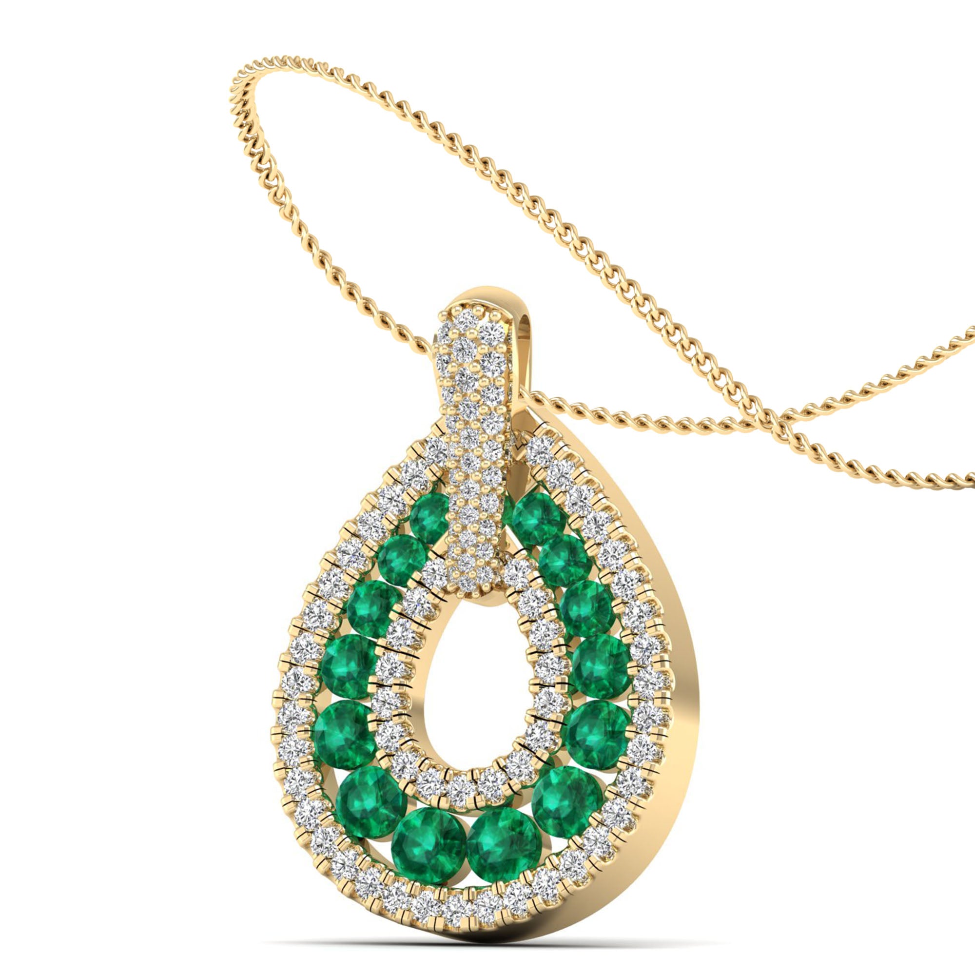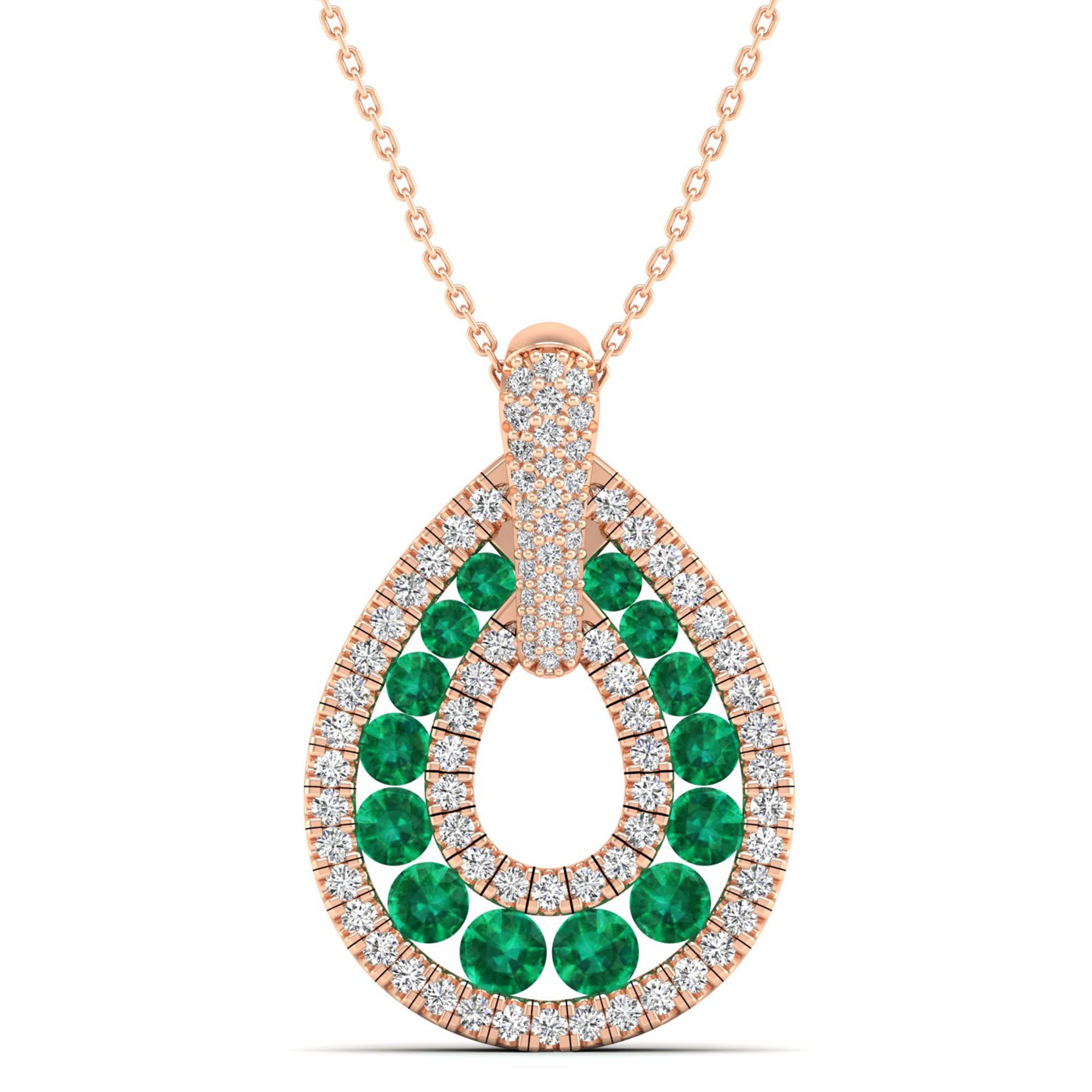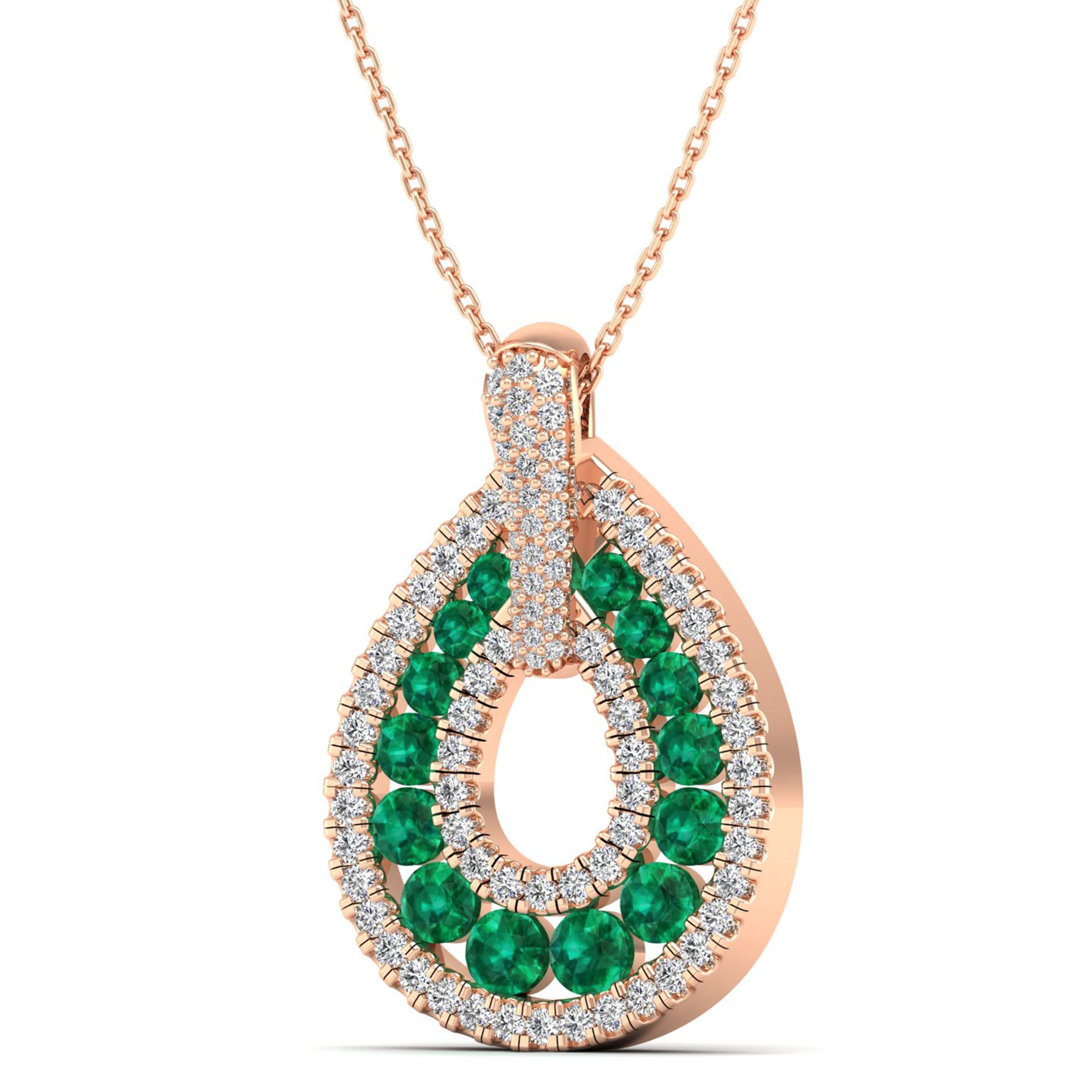 Crafted with a stunning emerald and sparkling diamonds, this teardrop pendant exudes elegance and sophistication. The eye-catching design is perfect for adding a touch of glamour to any outfit.