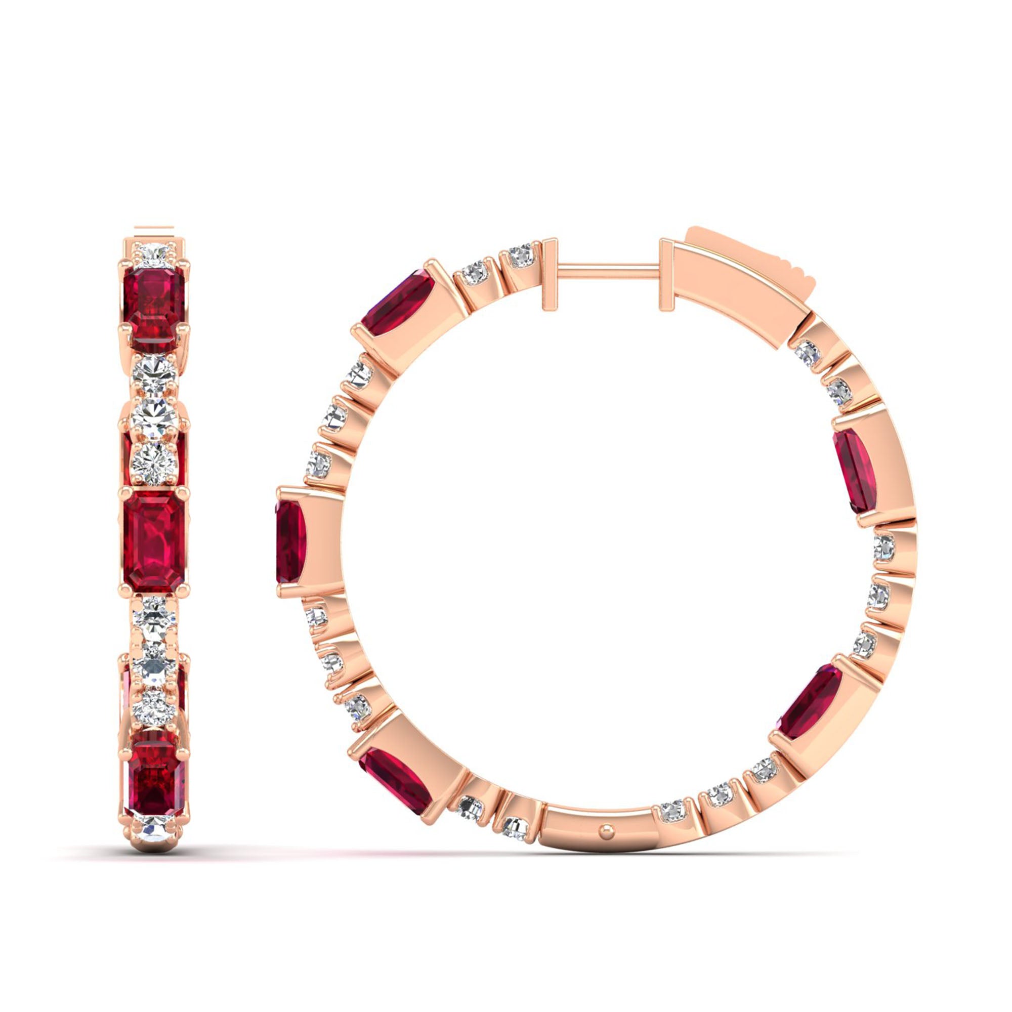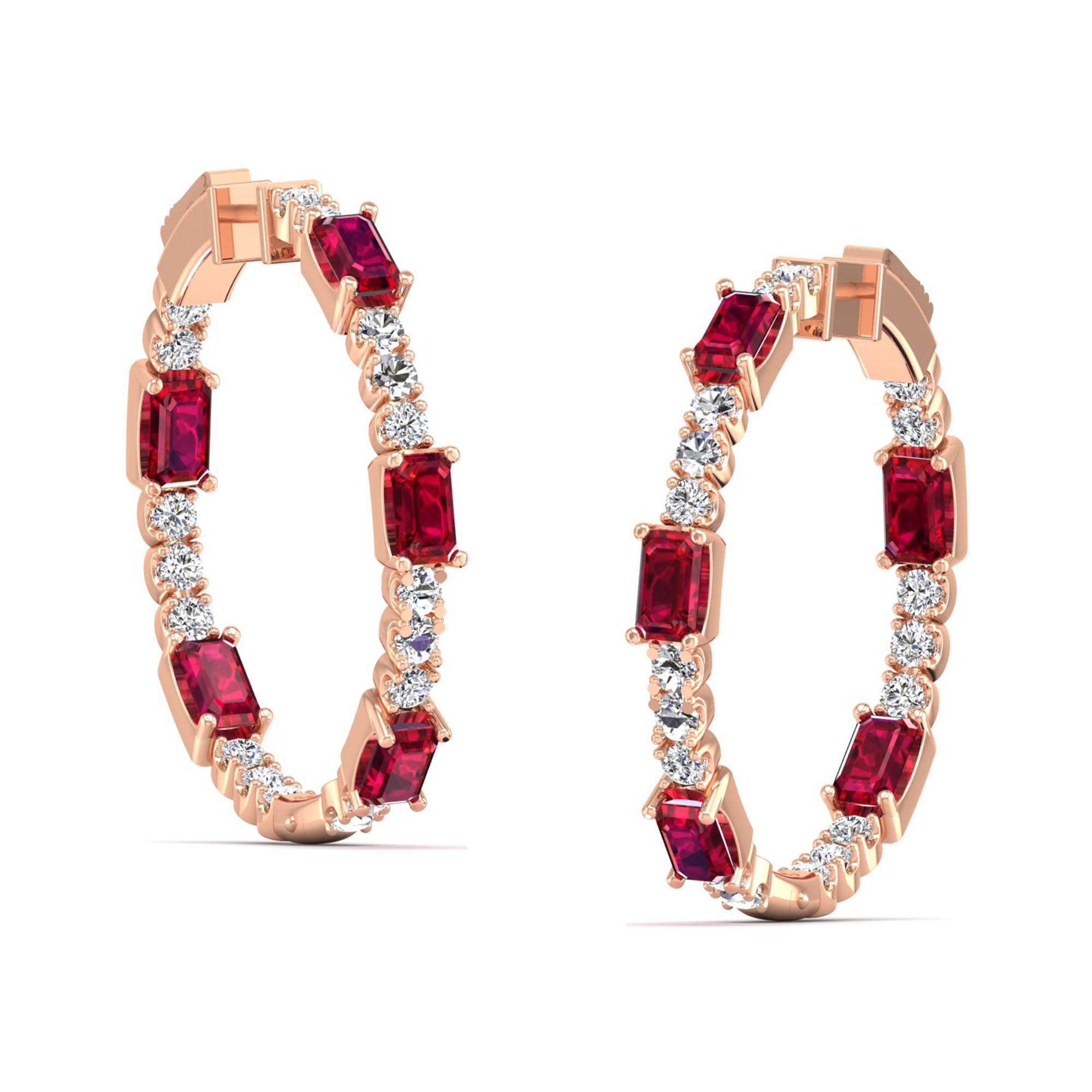 Expertly crafted, the Olivia Ruby and Diamond Inside-Out Hoops feature a stunning array of rubies and diamonds, creating a bold and elegant look.