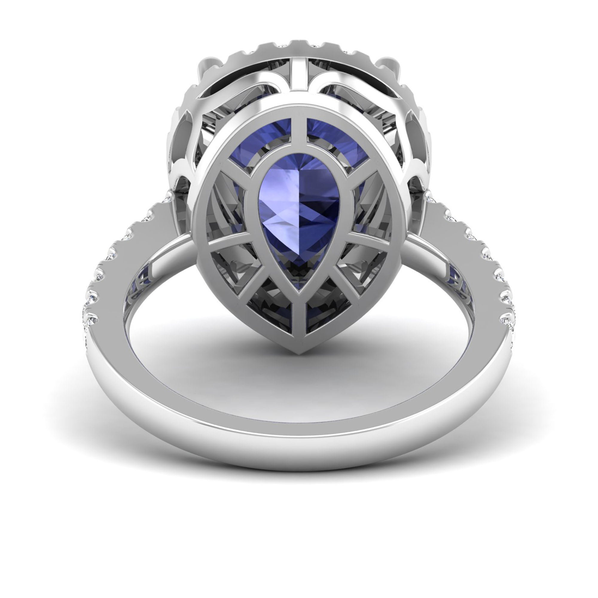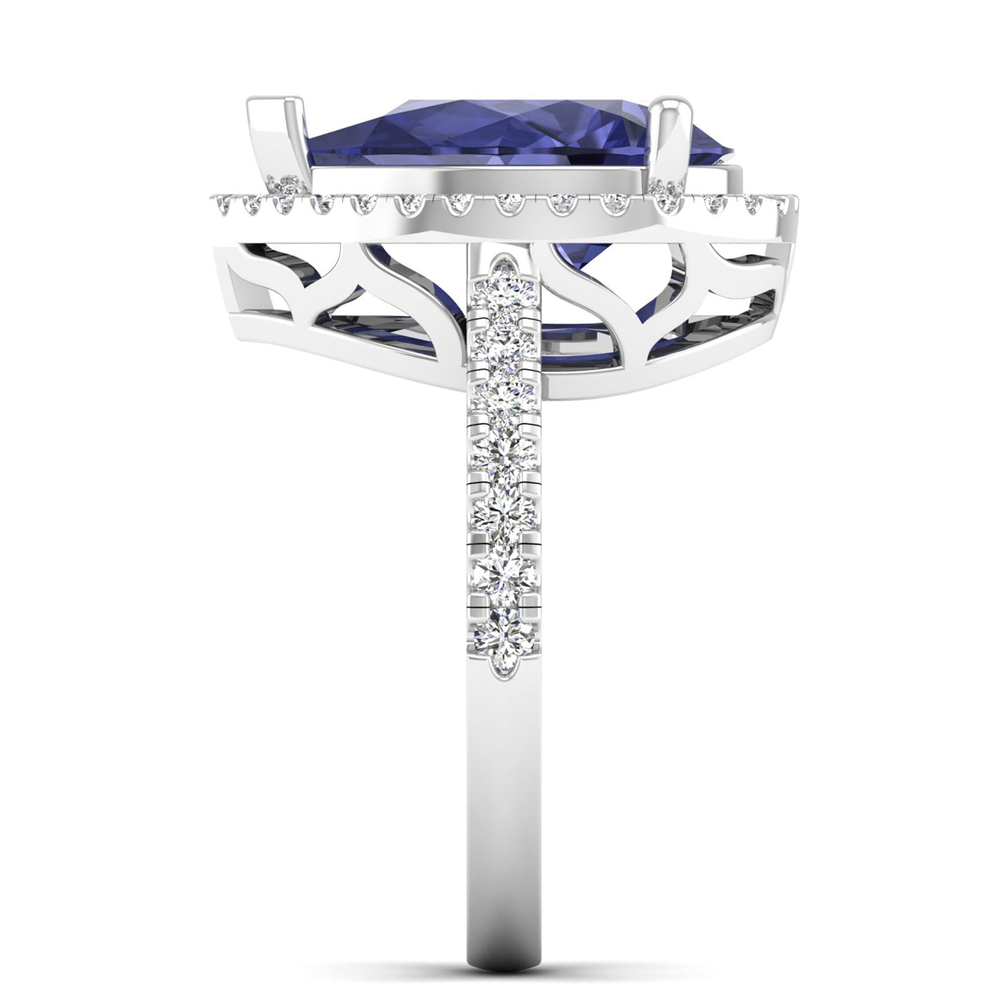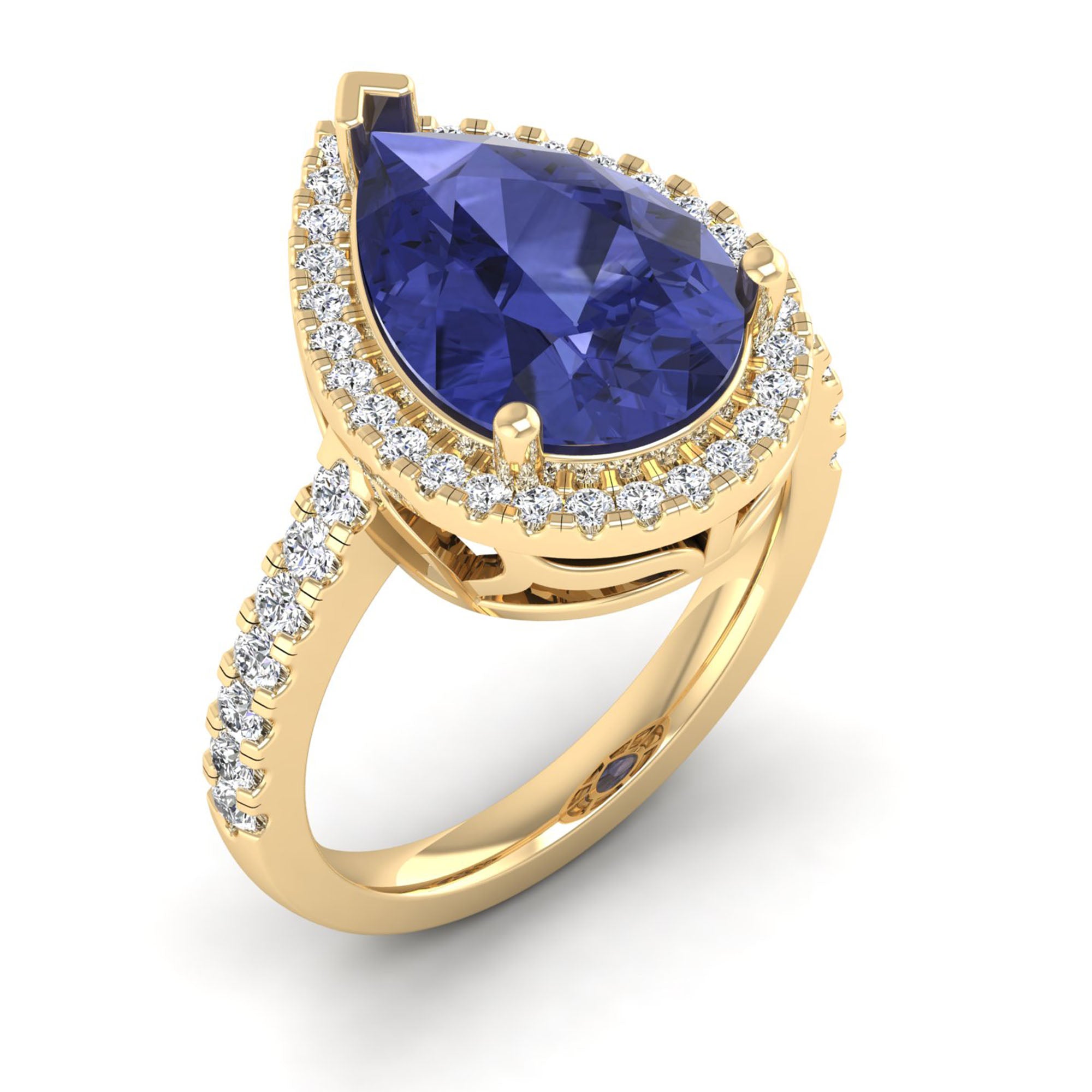 This elegant ring features a stunning teardrop-shaped pear tanzanite stone, accented by sparkling diamonds. With its unique shape and luxurious gemstones, this ring is perfect for a special occasion or as a signature piece in your collection.