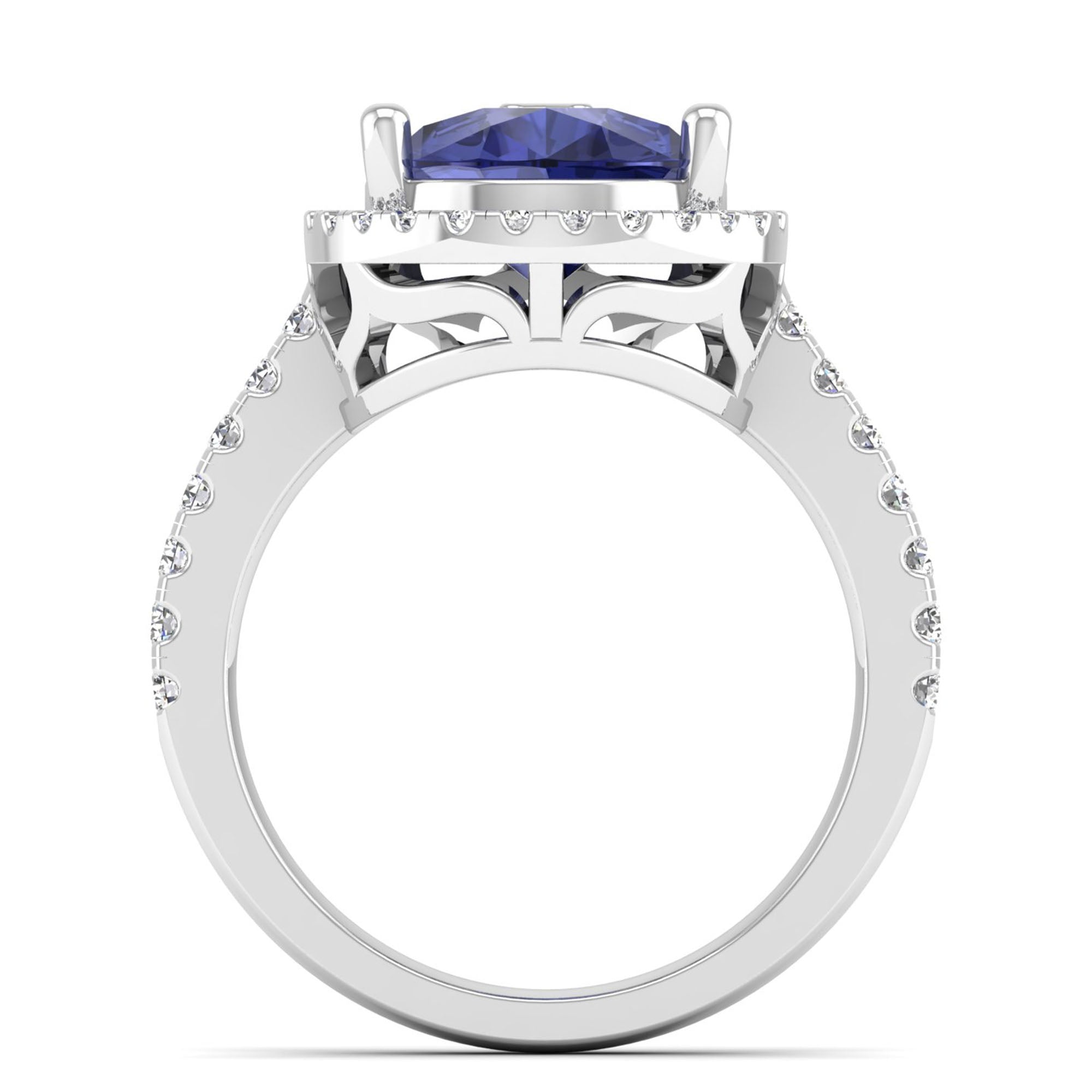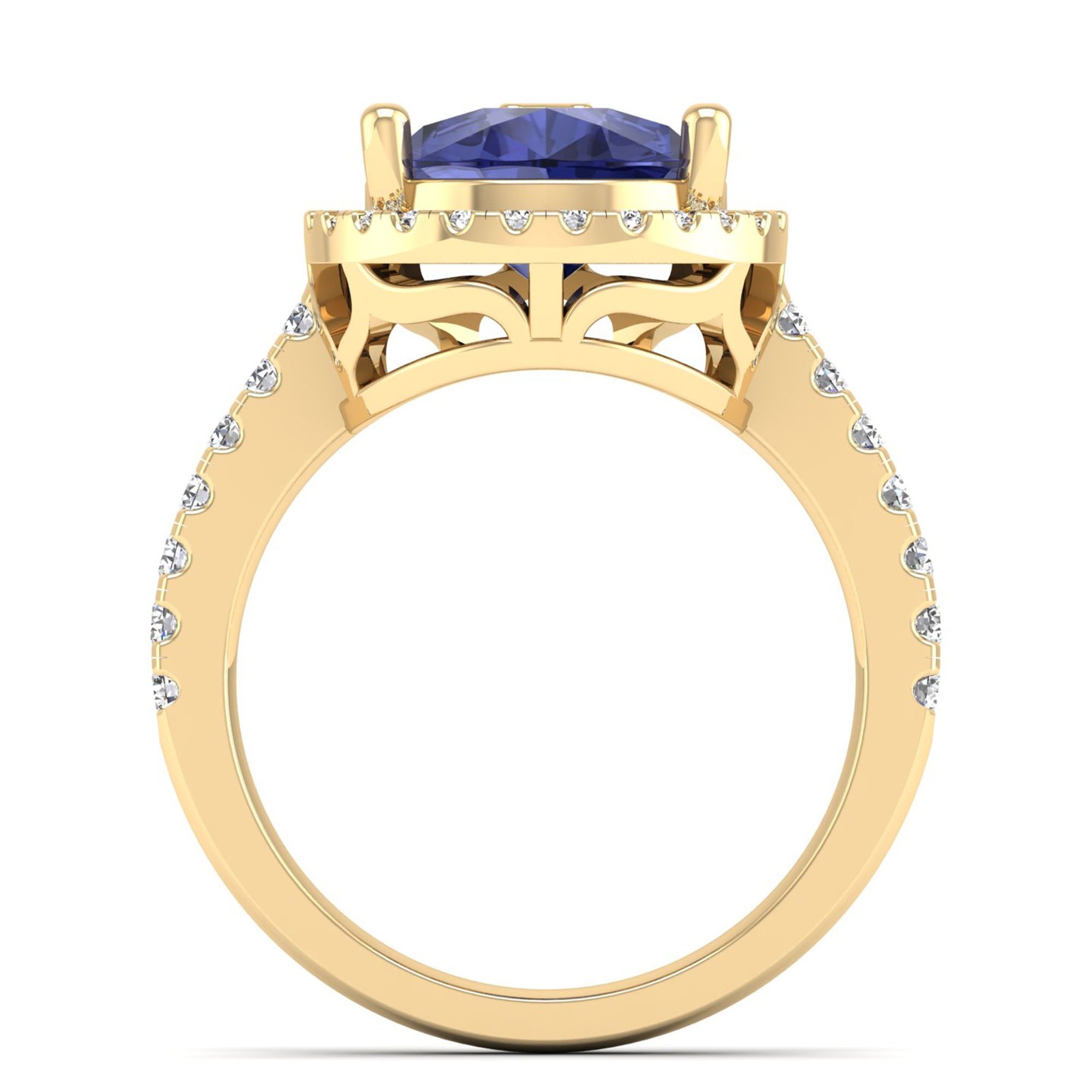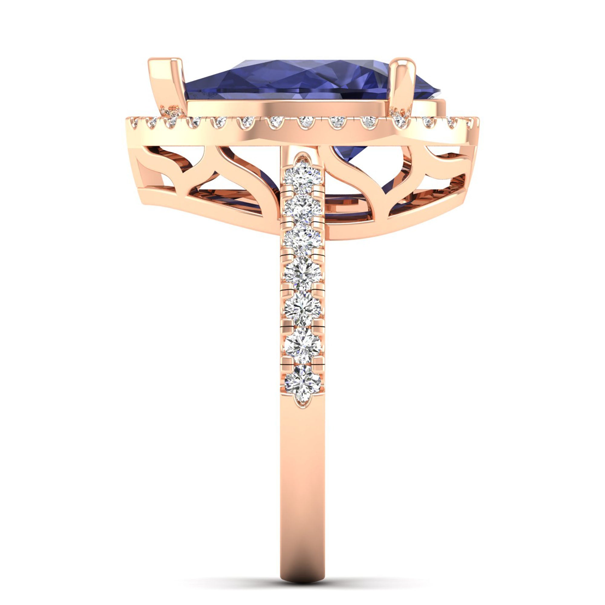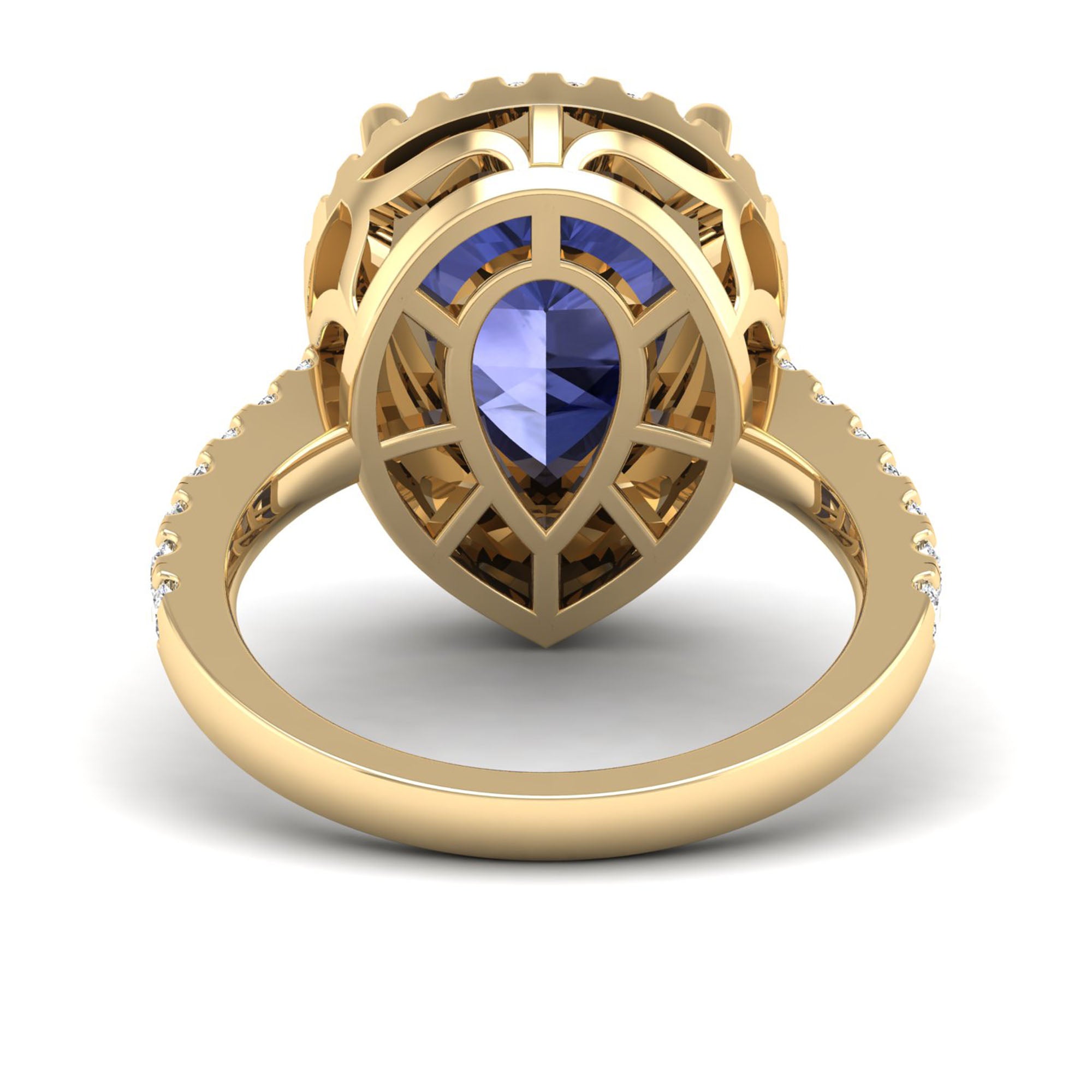 This elegant ring features a stunning teardrop-shaped pear tanzanite stone, accented by sparkling diamonds. With its unique shape and luxurious gemstones, this ring is perfect for a special occasion or as a signature piece in your collection.