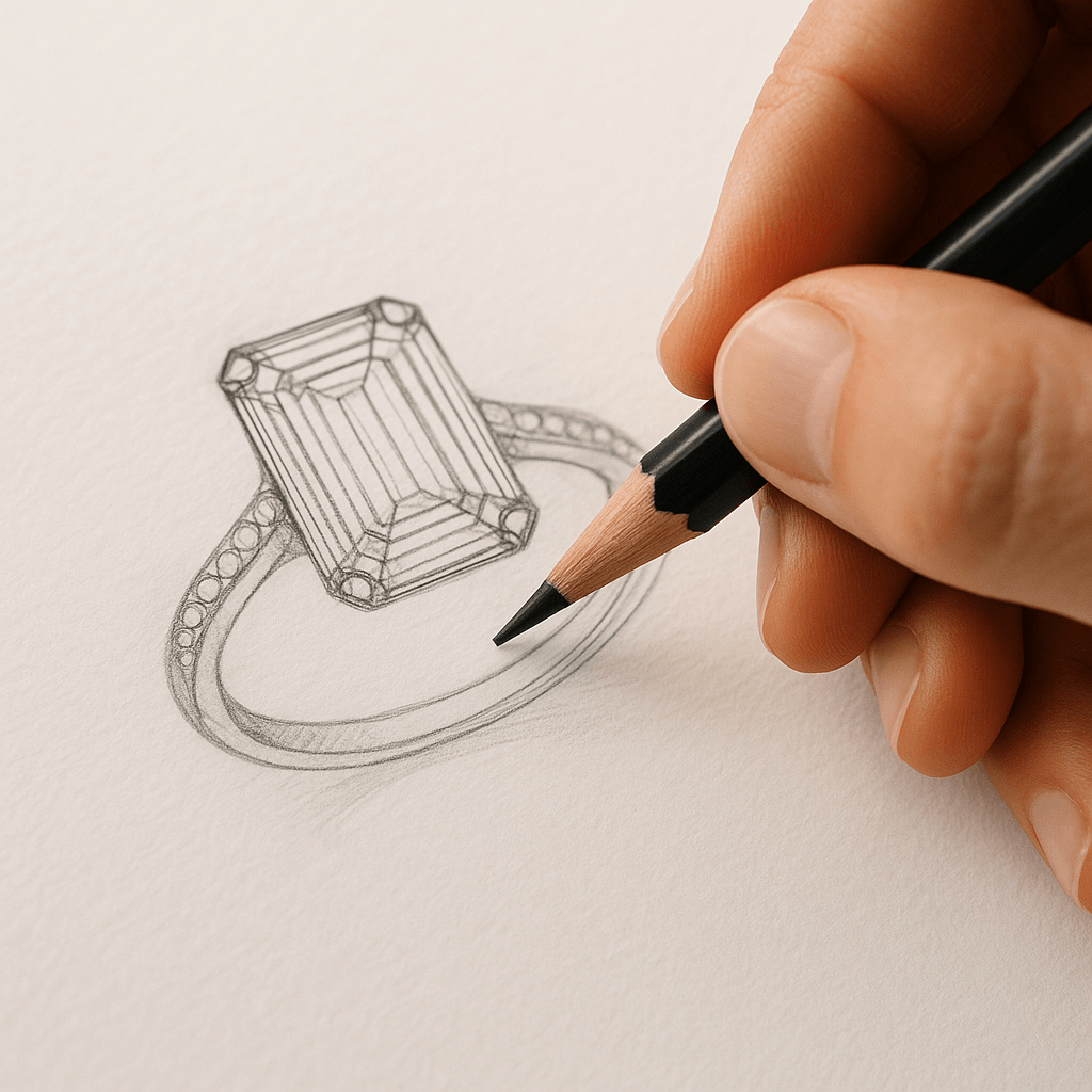 The custom design process can begin however you prefer—by email, phone, in-person or a one-on-one virtual consultation with our Milano design team. Whether you bring us inspiration through words, sketches, photos, links, or even an existing piece of jewelry, our team will carefully listen to your vision and needs. From this conversation, we’ll be able to understand your style and provide you with a precise, tailored quote.