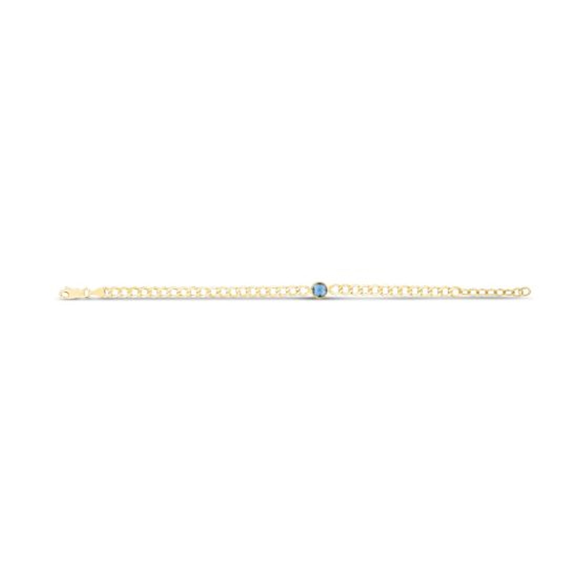 14kt Gold 7.25" Yellow Finish Polished Including 1" Extender Curb Link Bracelet with Lobster Clasp with 6mm Round Briolette Blue Topaz