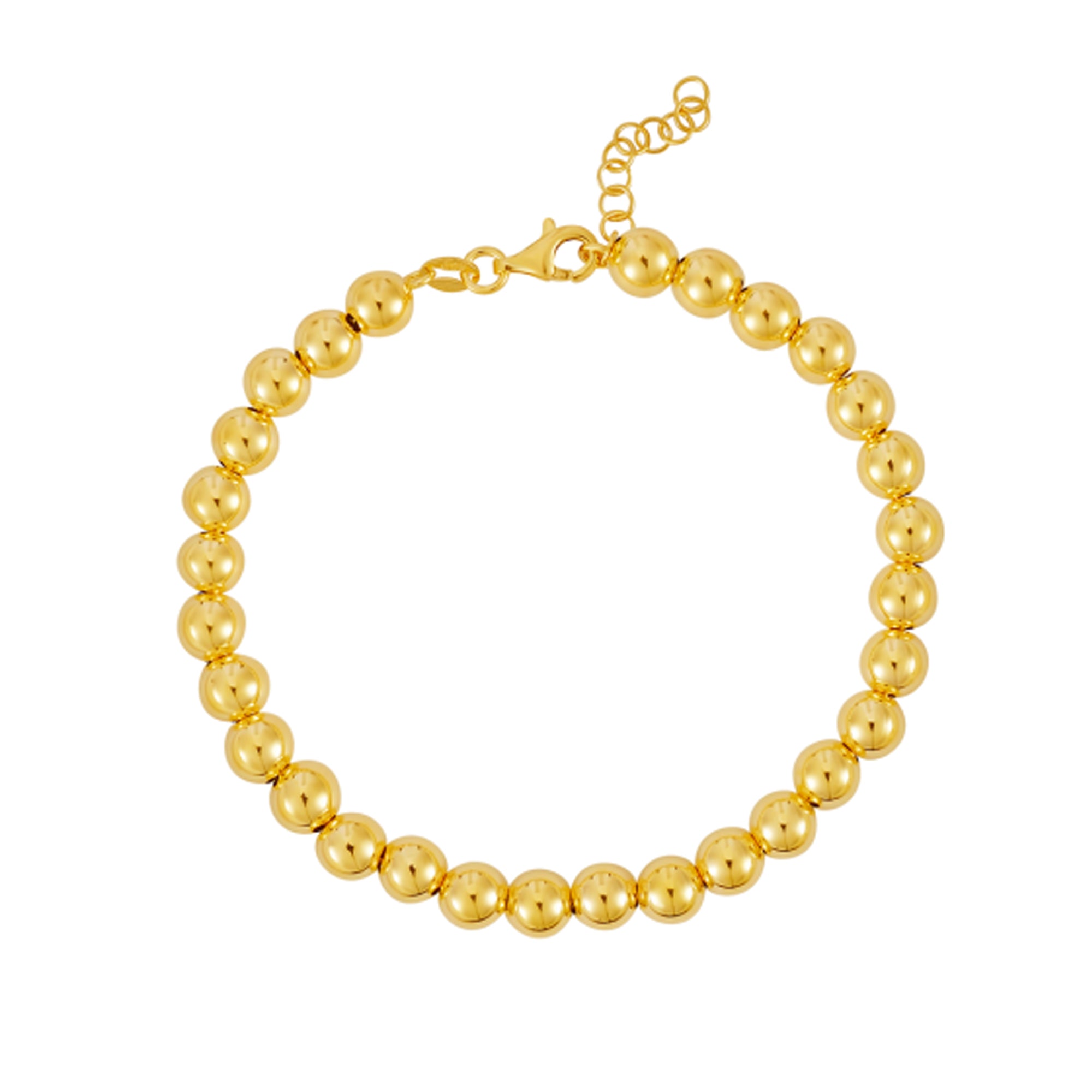 14KT Gold Yellow Finish Polished Round including 1-2" Extender Bead Bracelet with Lobster Clasp