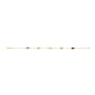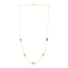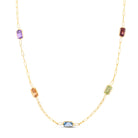 This playful 14K gold paperclip chain dazzles with a polished yellow finish and a pear-shaped lobster clasp. It’s decorated with six 4x6mm baguette-cut gemstones in garnet, peridot, blue topaz, citrine, and amethyst, bringing a colorful sparkle to your style.