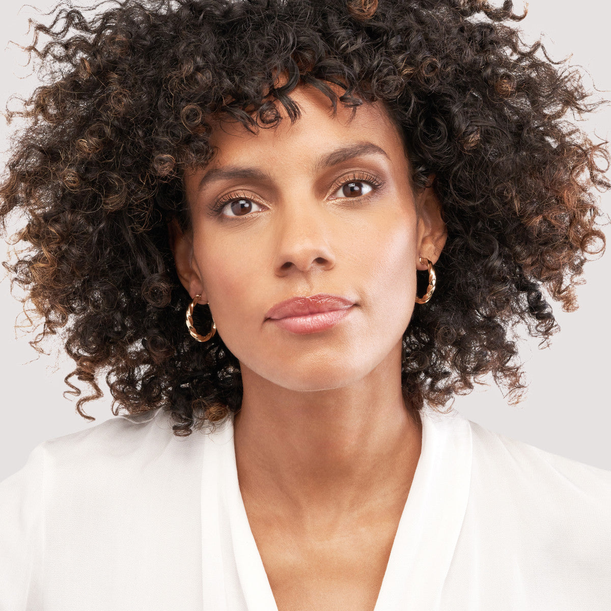 Bold elegance with a unique twist. Our 20x3mm hoops are made in 14K gold.