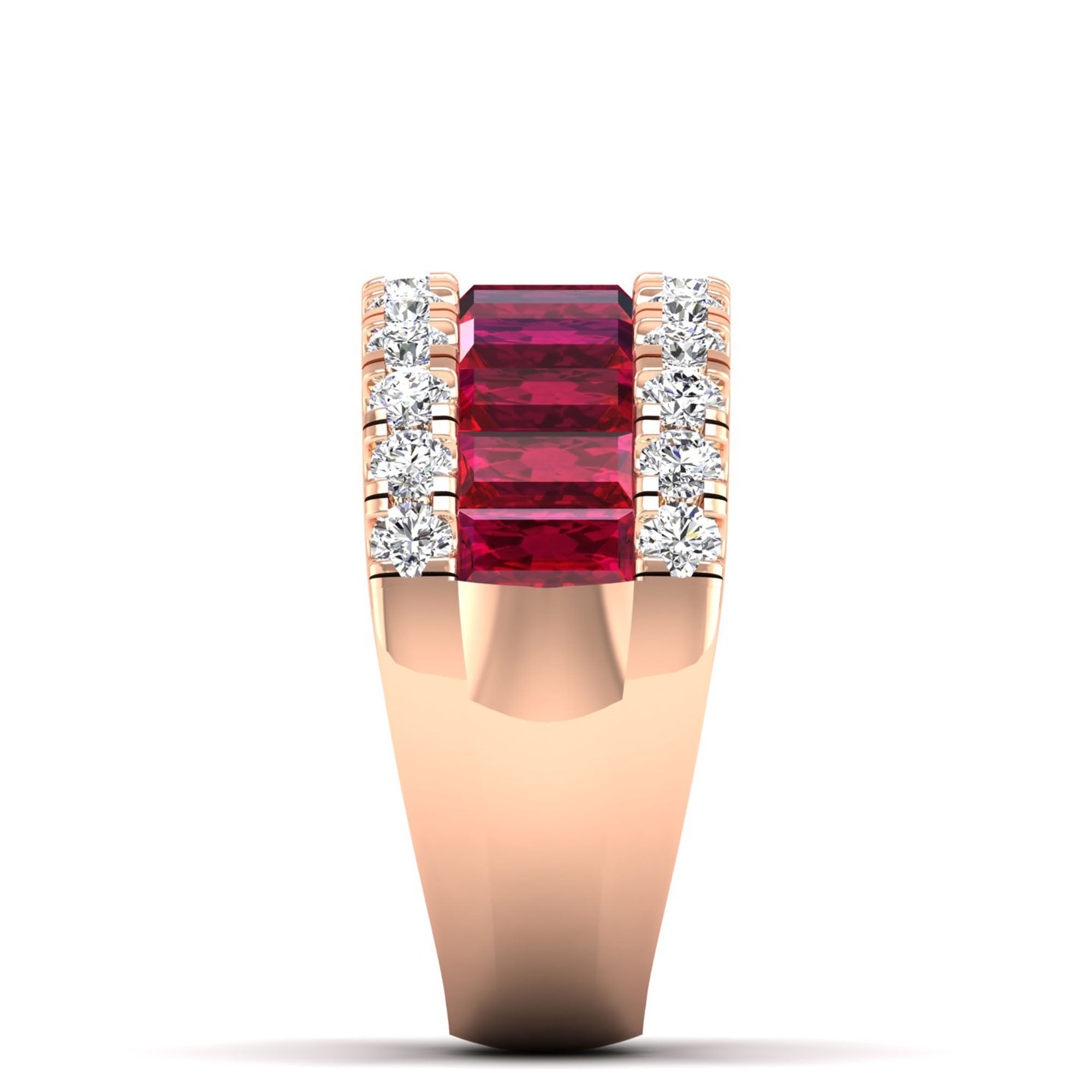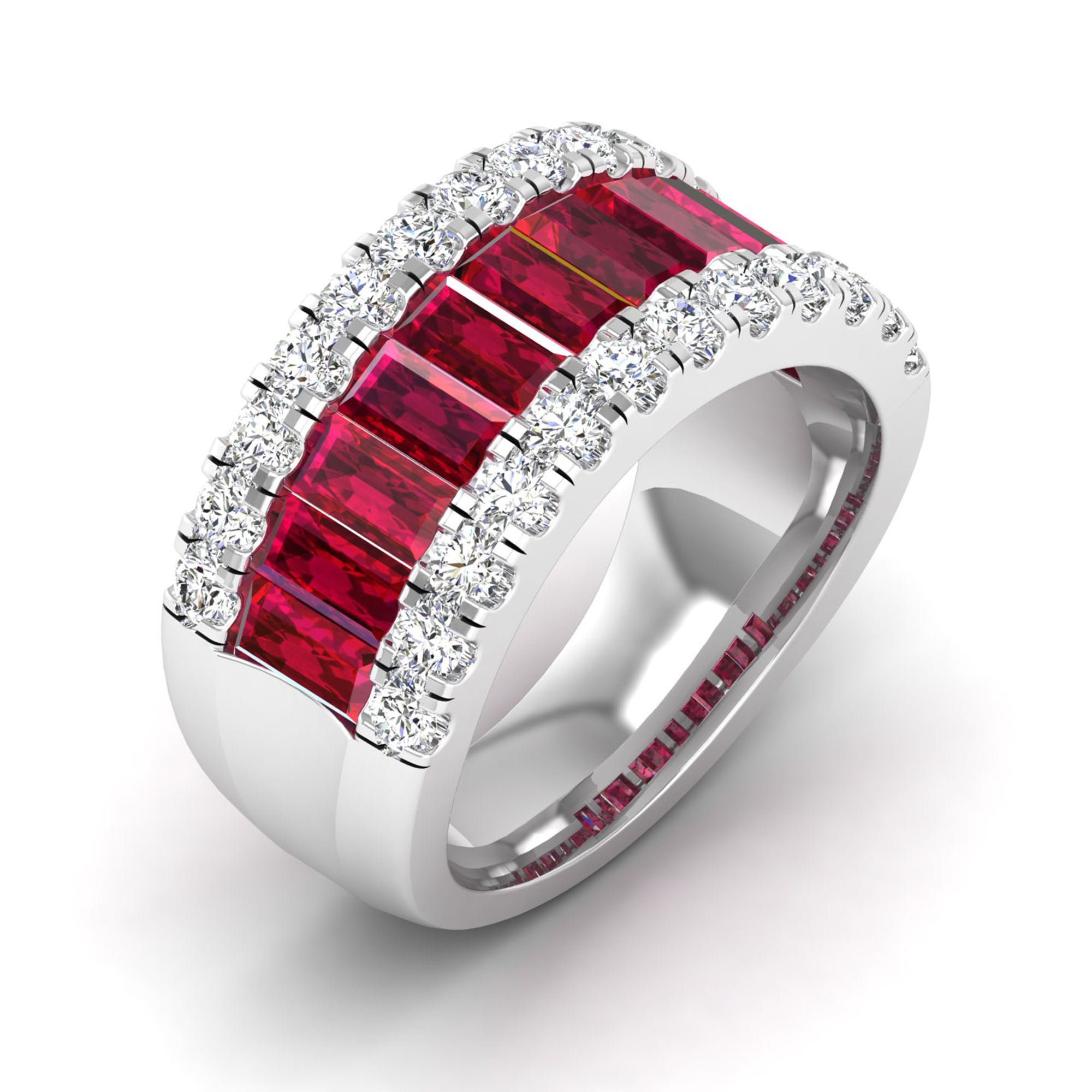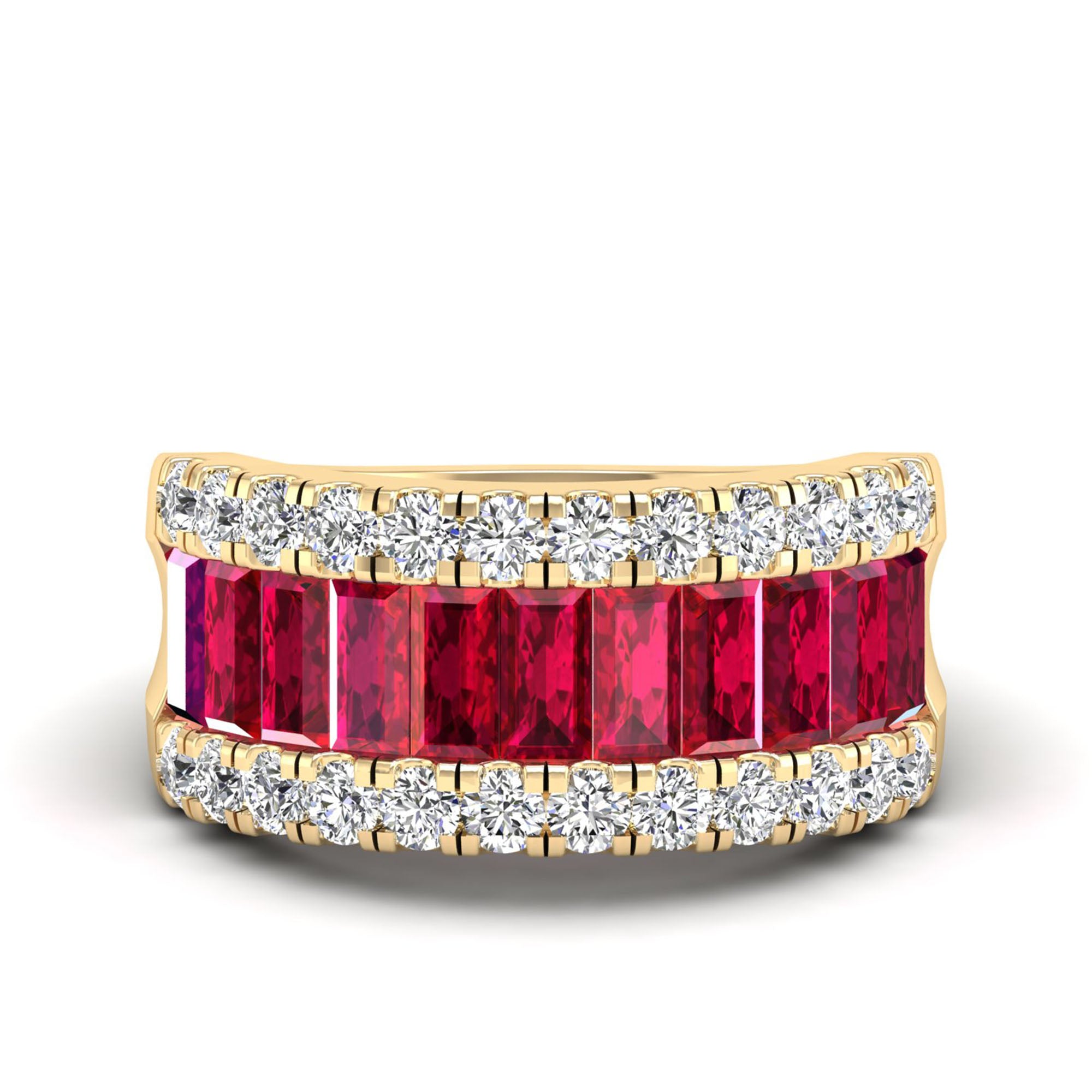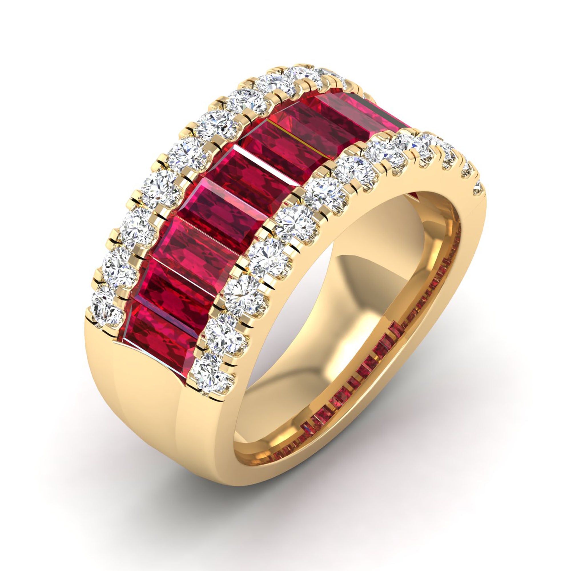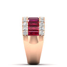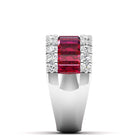 This elegant 3-Row Baguette Ruby and Diamond Ring is a stunning addition to any jewelry collection. With alternating ruby and diamond baguettes, this ring offers a classic and sophisticated look.