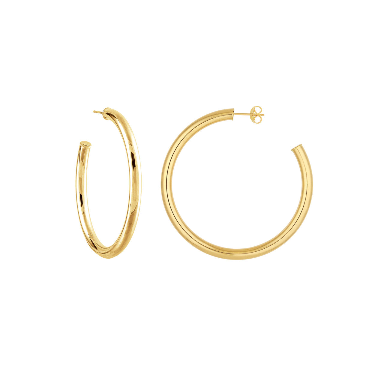 Every jewelry blogger and influencer's favorite, get your hand on these on-trend hoops. The tube hoop earrings measure 4mm wide by 50mm in diameter.
