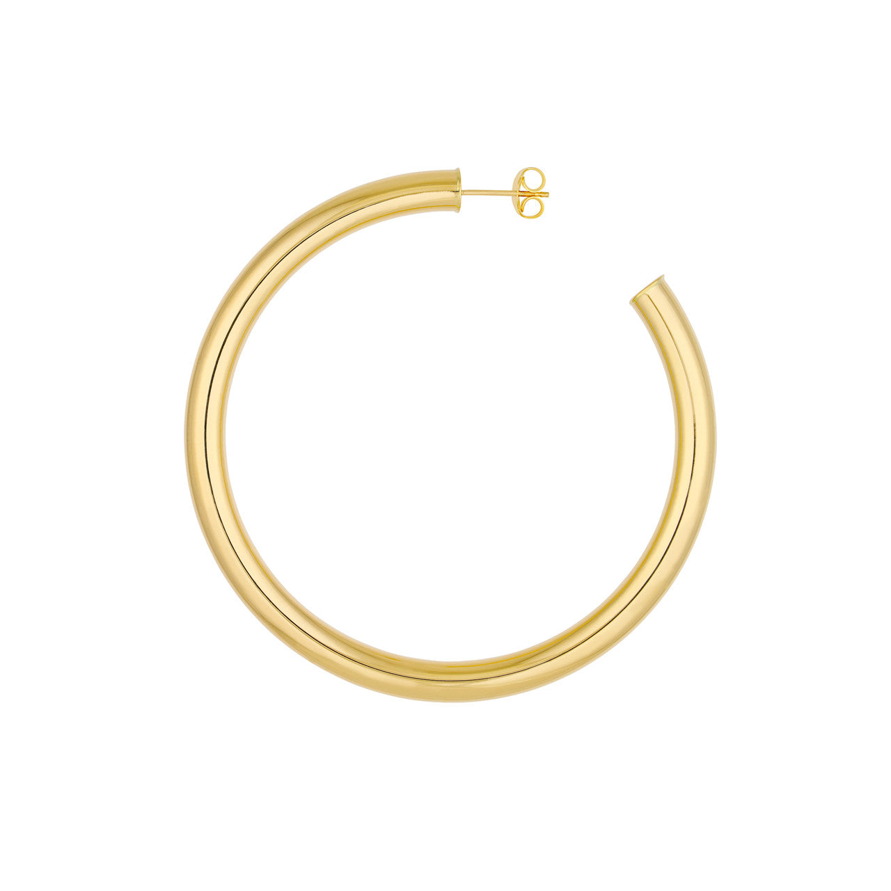 Every jewelry blogger and influencer's favorite, get your hand on these on-trend hoops. The tube hoop earrings measure 5mm wide by 60mm in diameter.