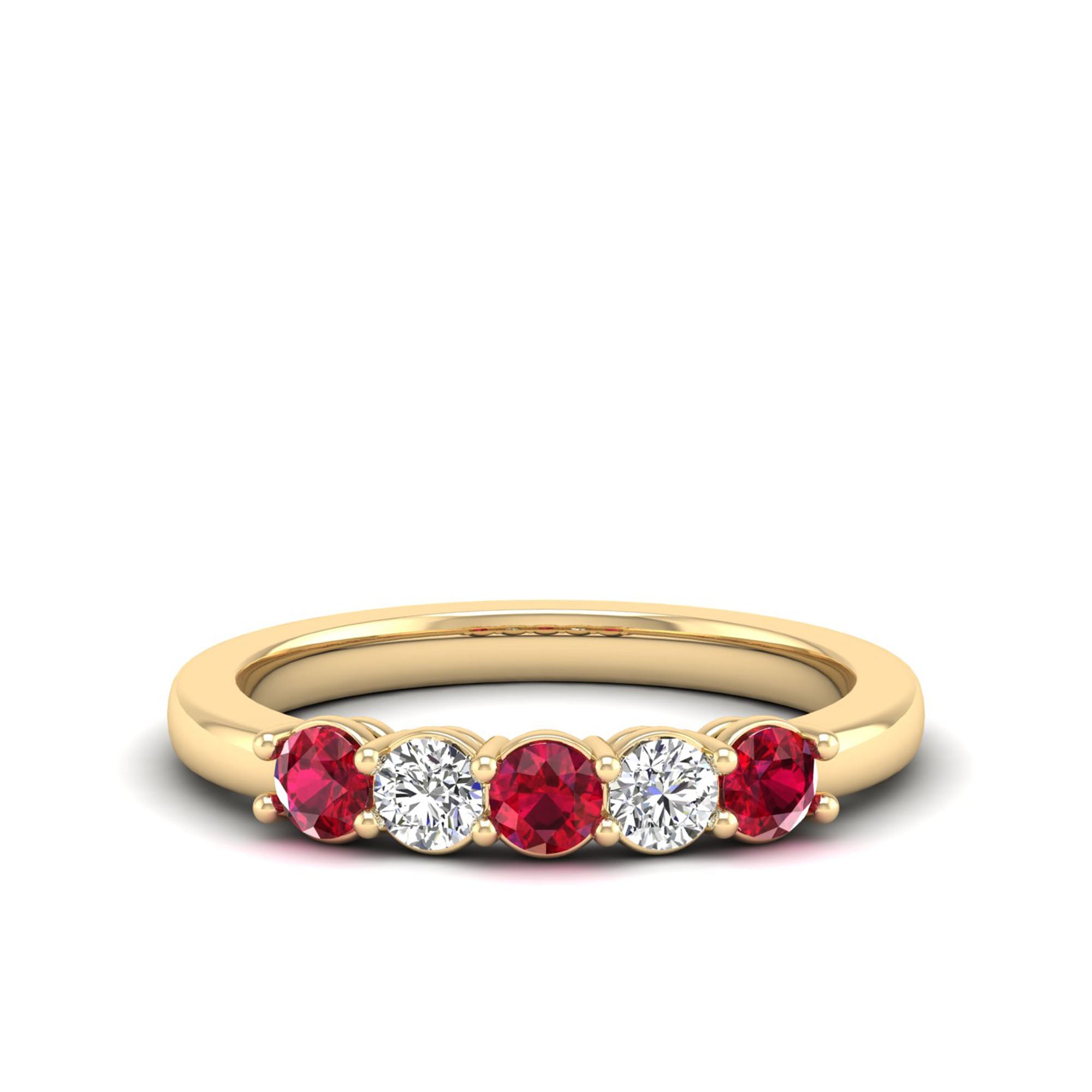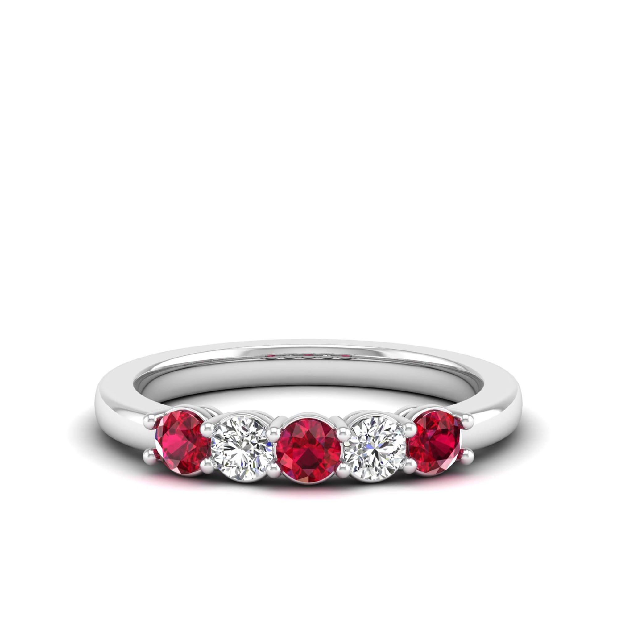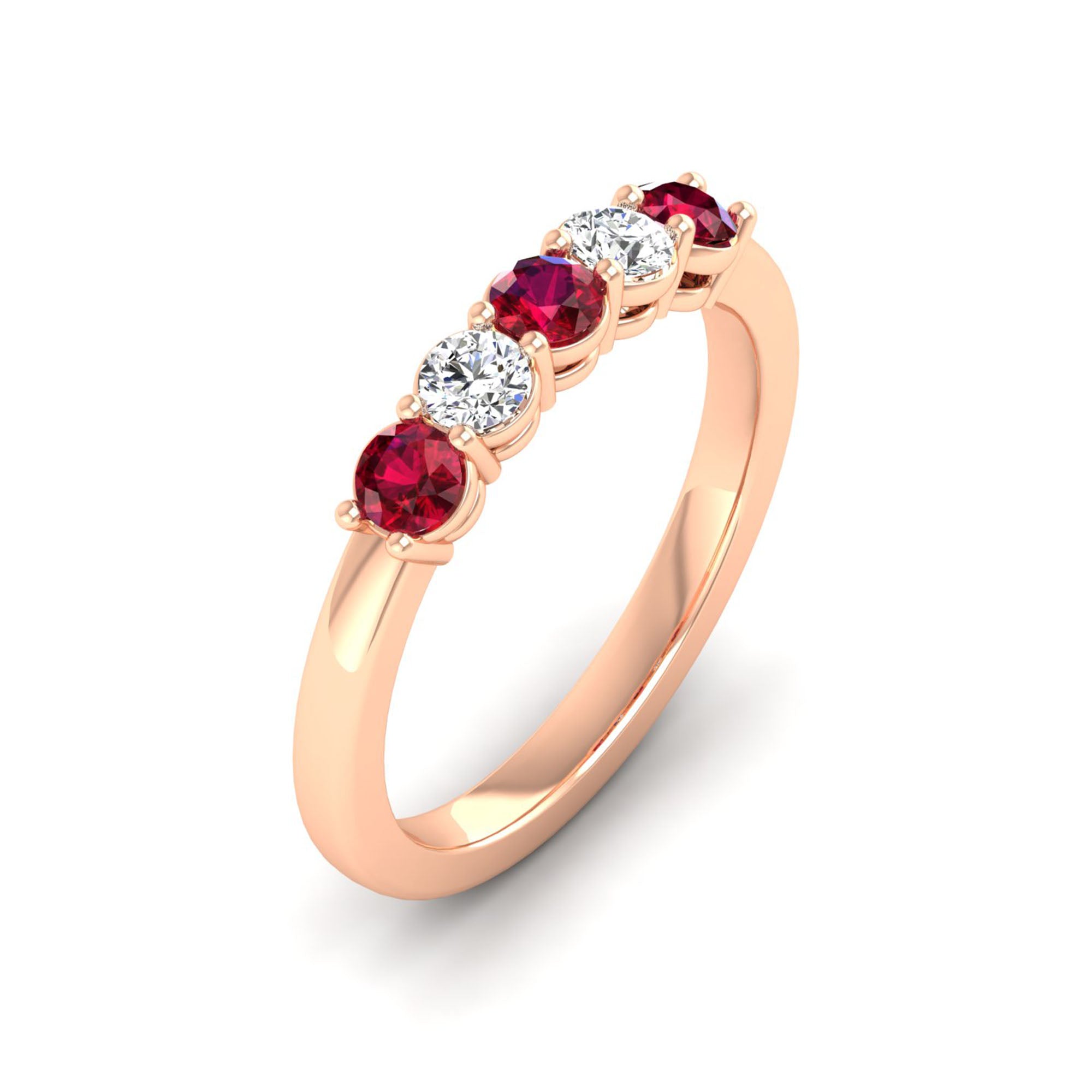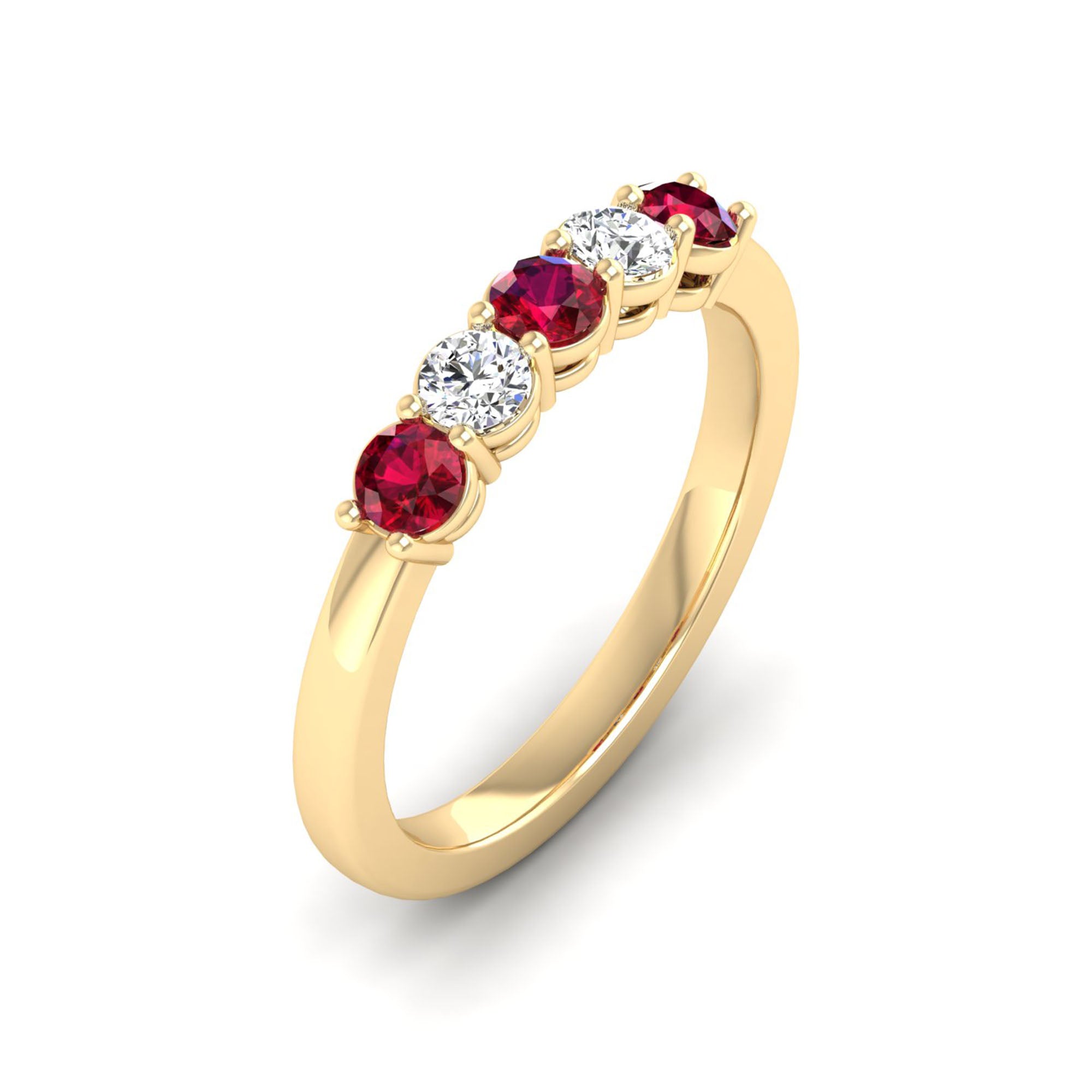 Expertly crafted with alternating 5-stone ruby and diamonds, this ring showcases the classic beauty of both gemstones.