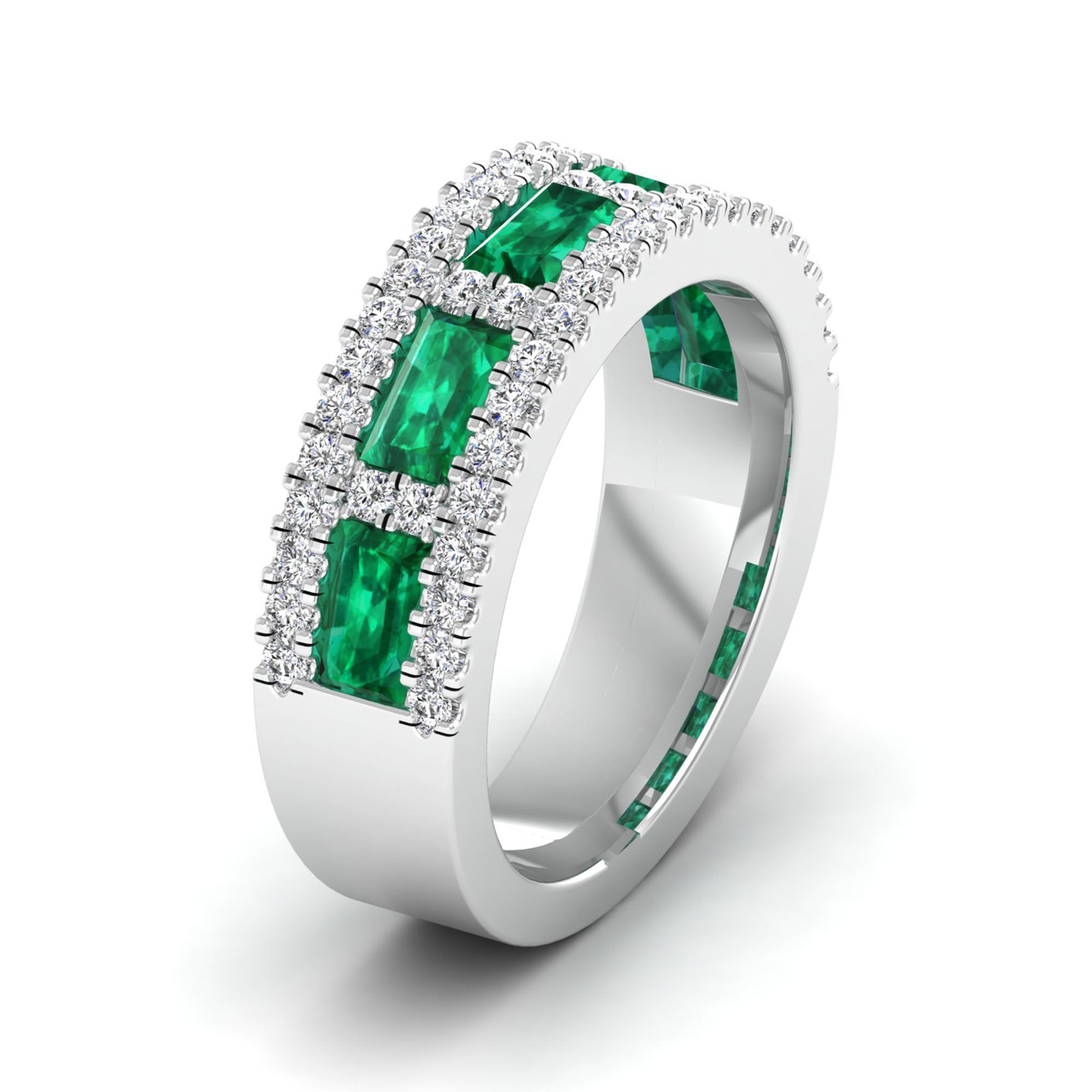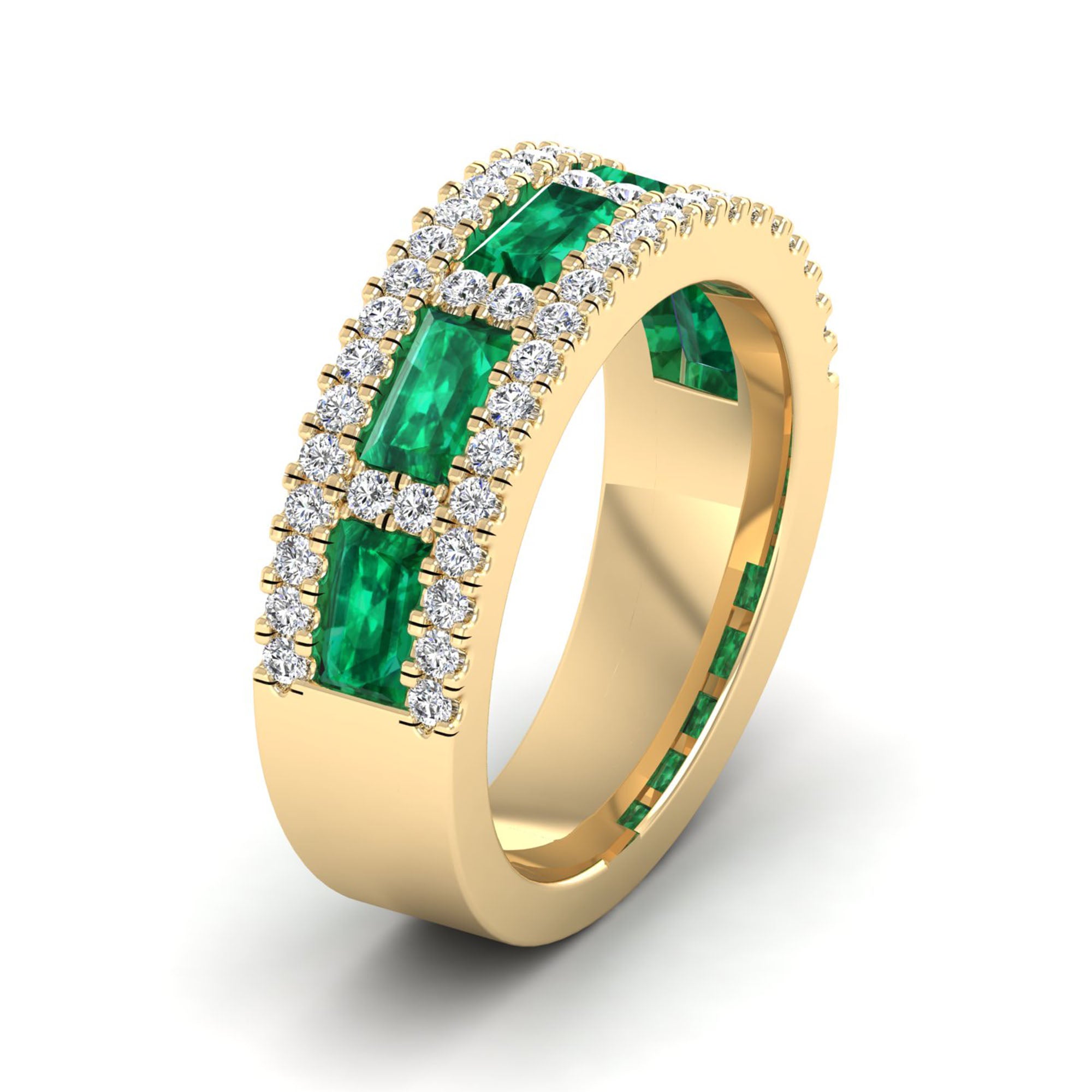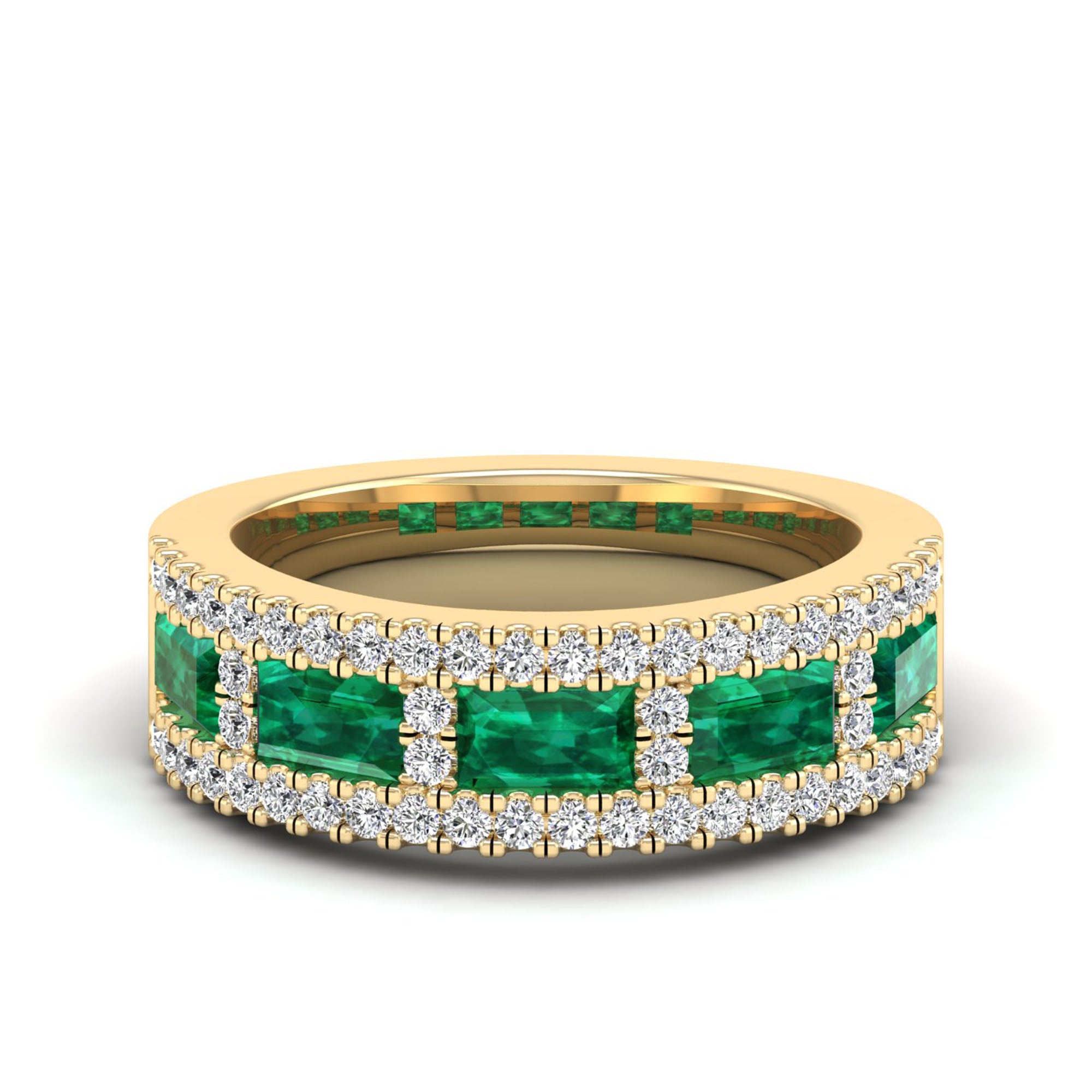 Add a touch of elegance to any outfit with our Alternating Baguette Emerald and Diamond Band. Each baguette-cut emerald and diamond is expertly set in a band, creating a unique and eye-catching design.