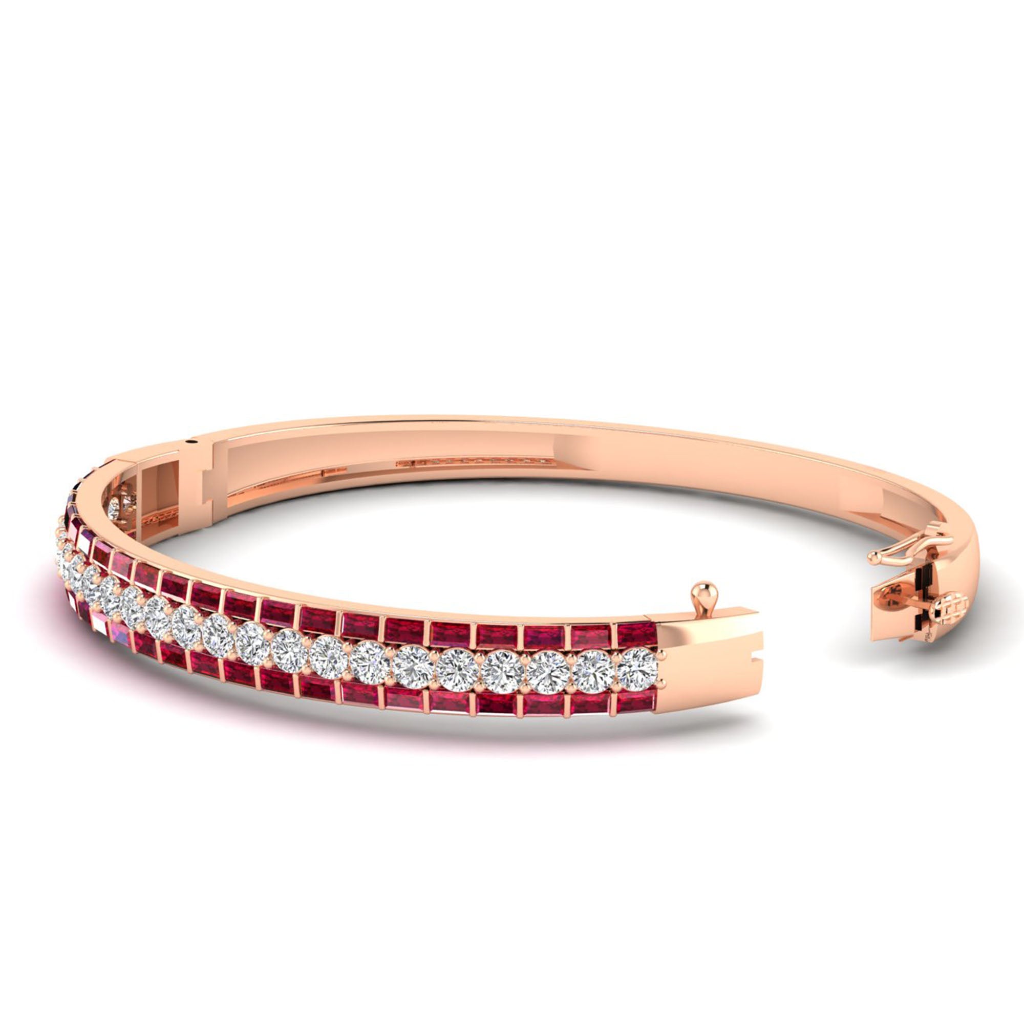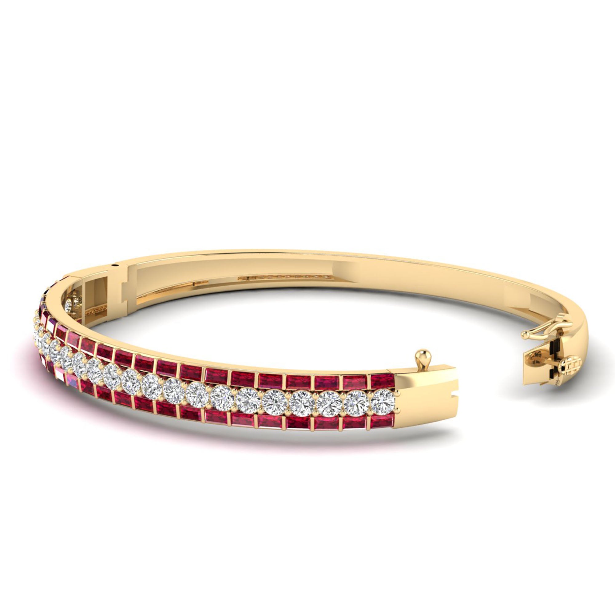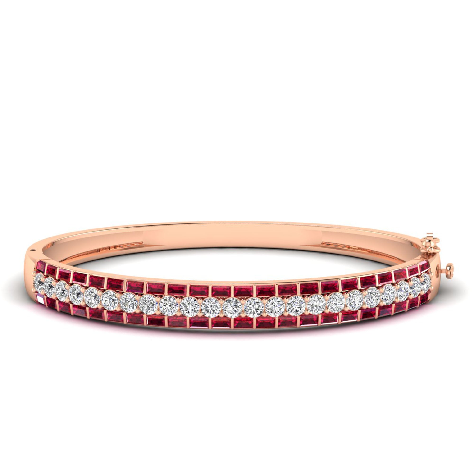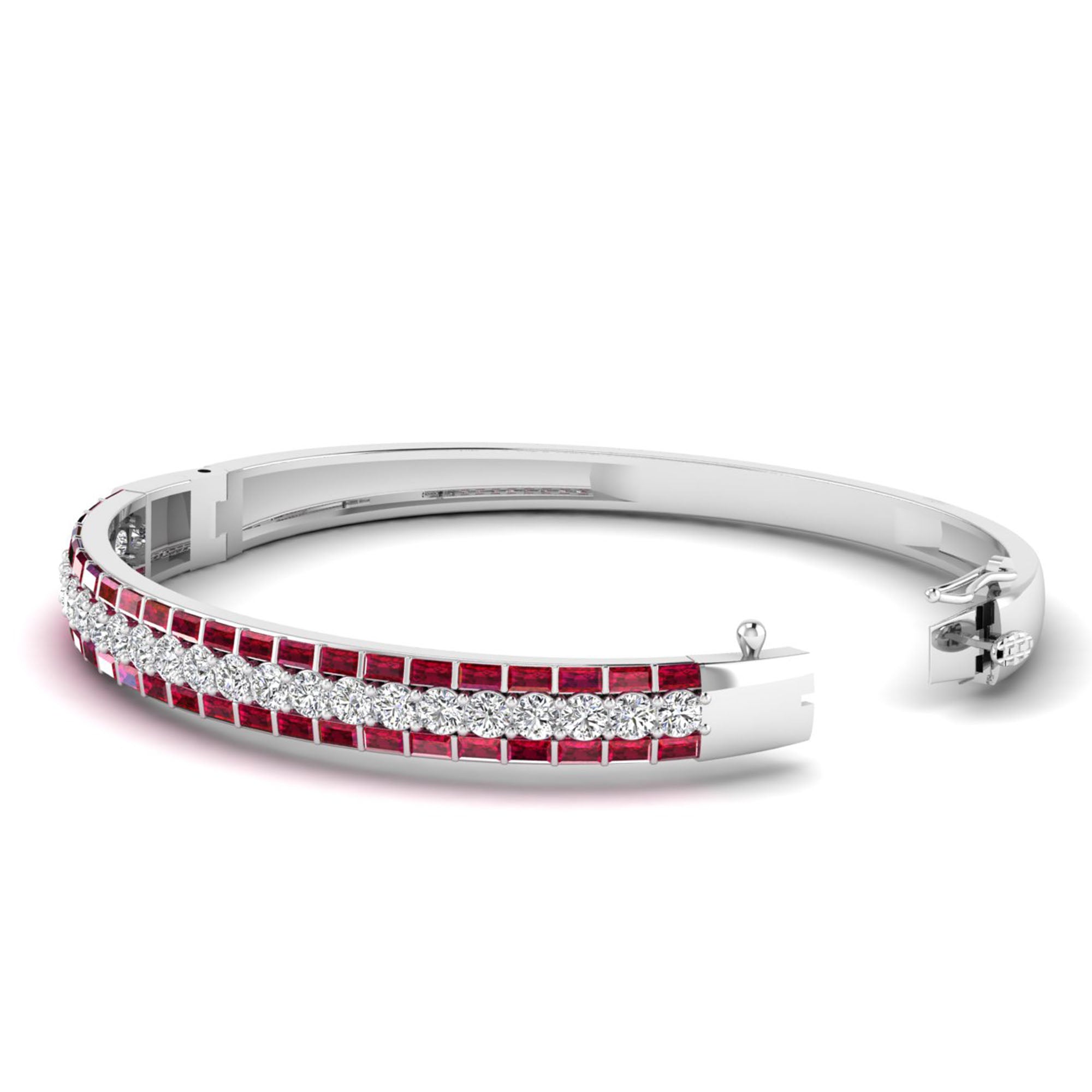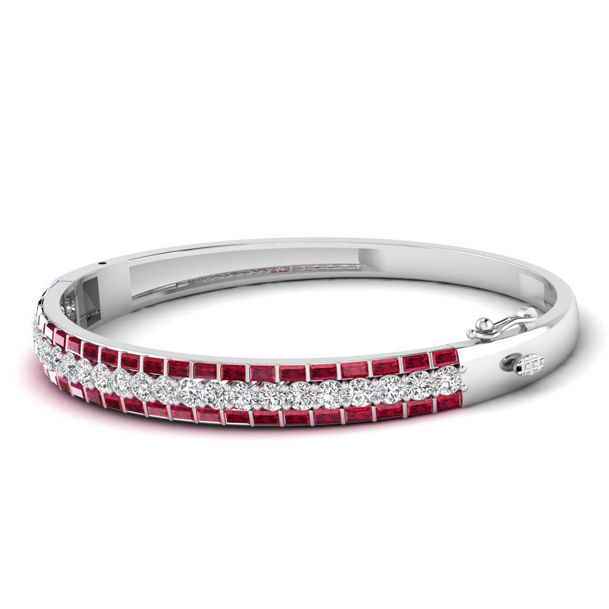 Alternating Baguette Ruby and Cluster Diamond Bracelet