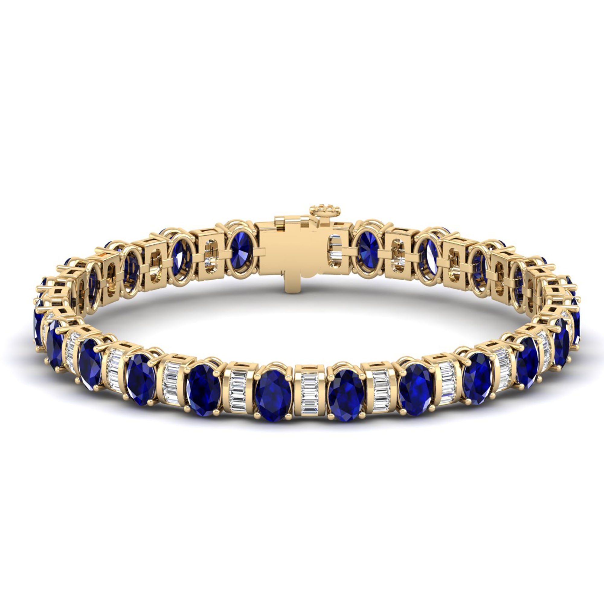 This elegant bangle features alternating oval sapphire and baguette diamond stones, creating a stunning and unique design.