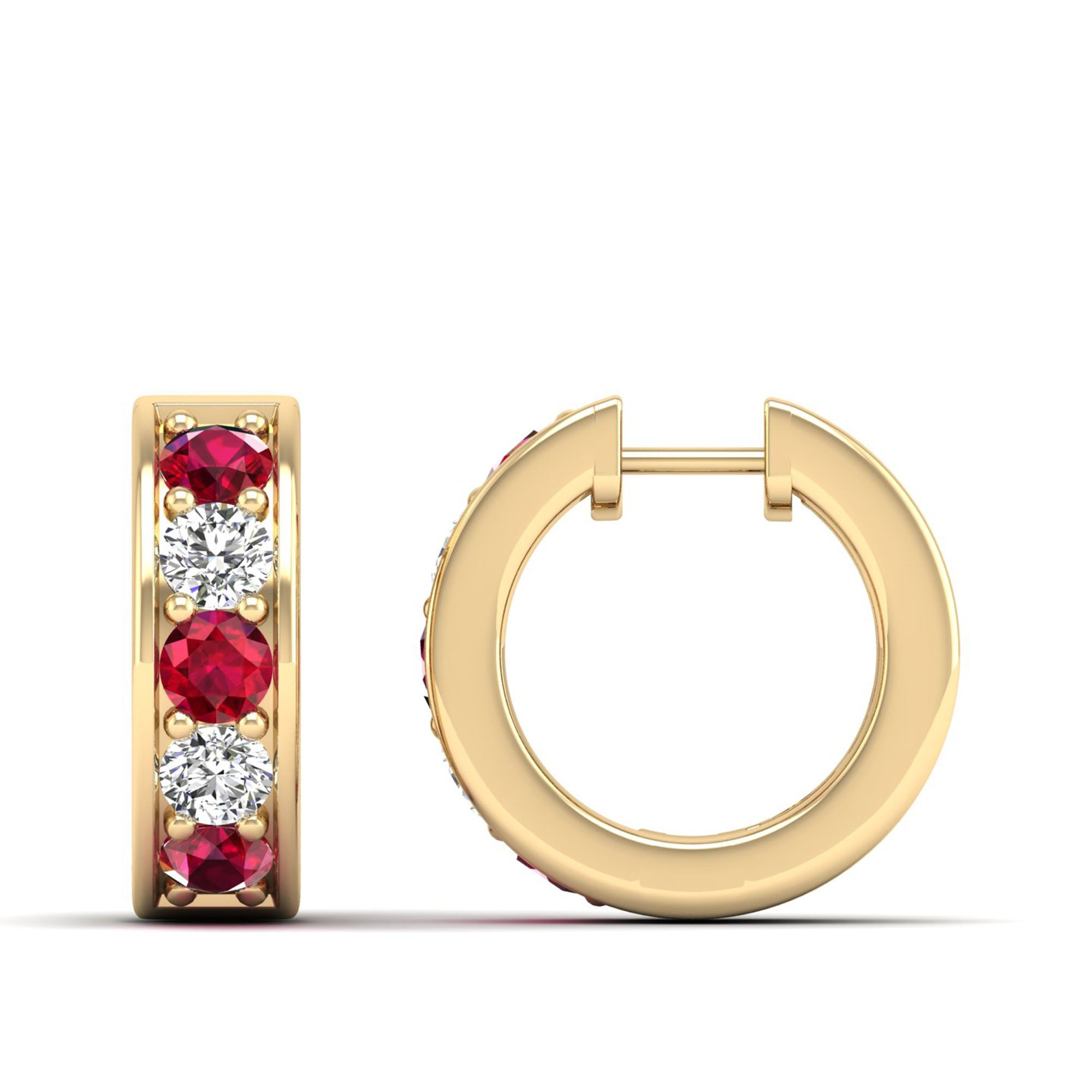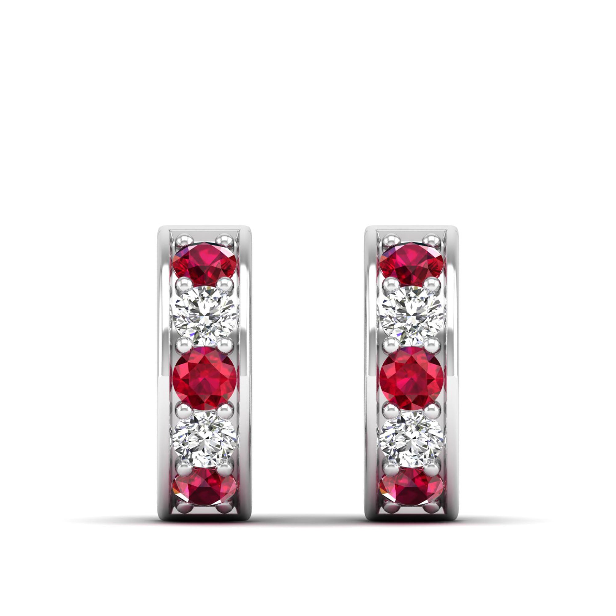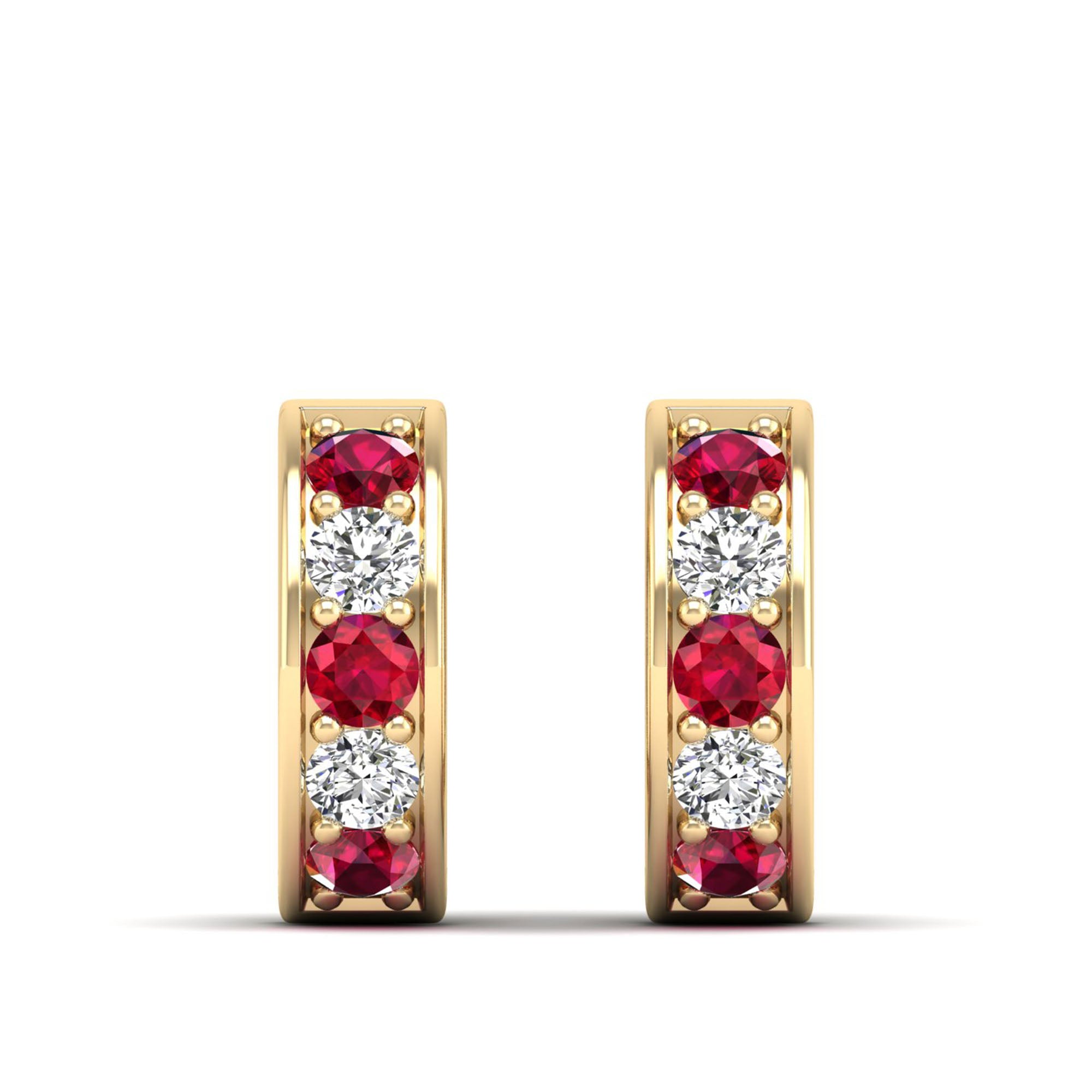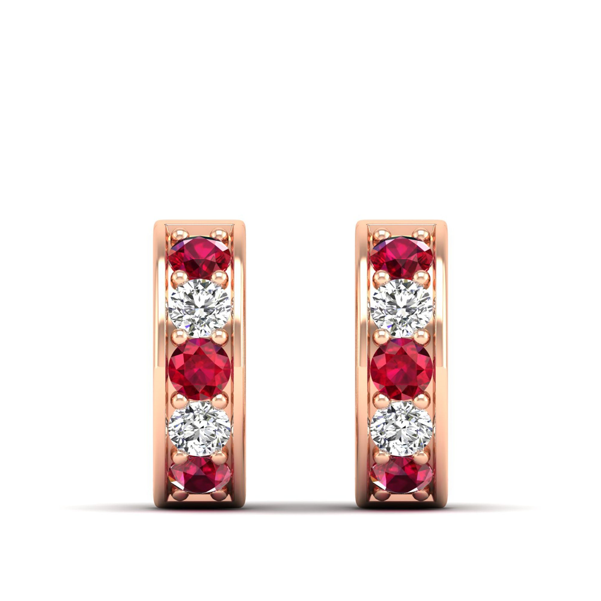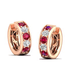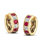 These Alternating Ruby and Diamond Huggies feature a unique design of alternating rubies and diamonds for a subtle yet eye-catching look.