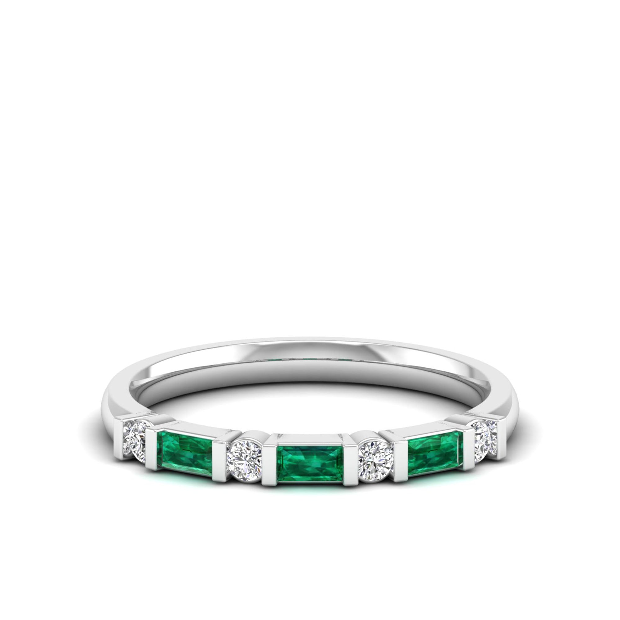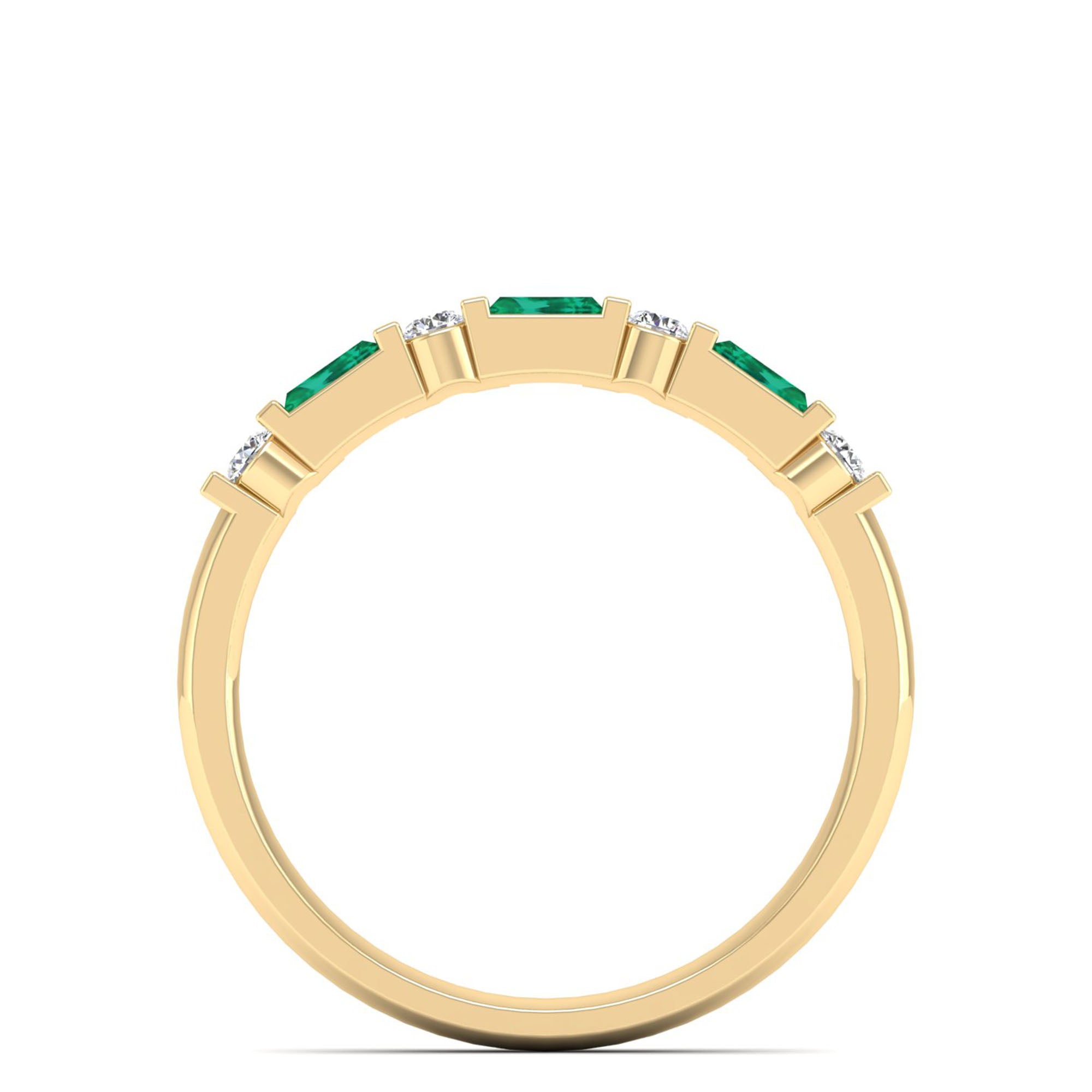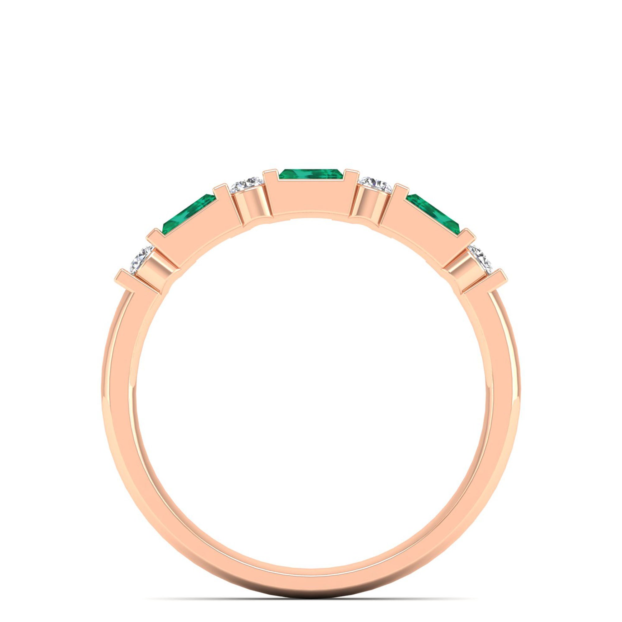 Baguette Alternating Emerald Art Deco and Diamond Ring