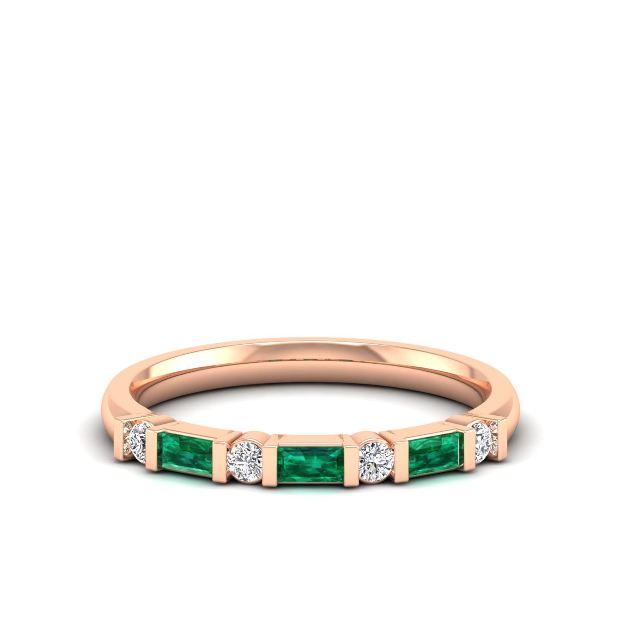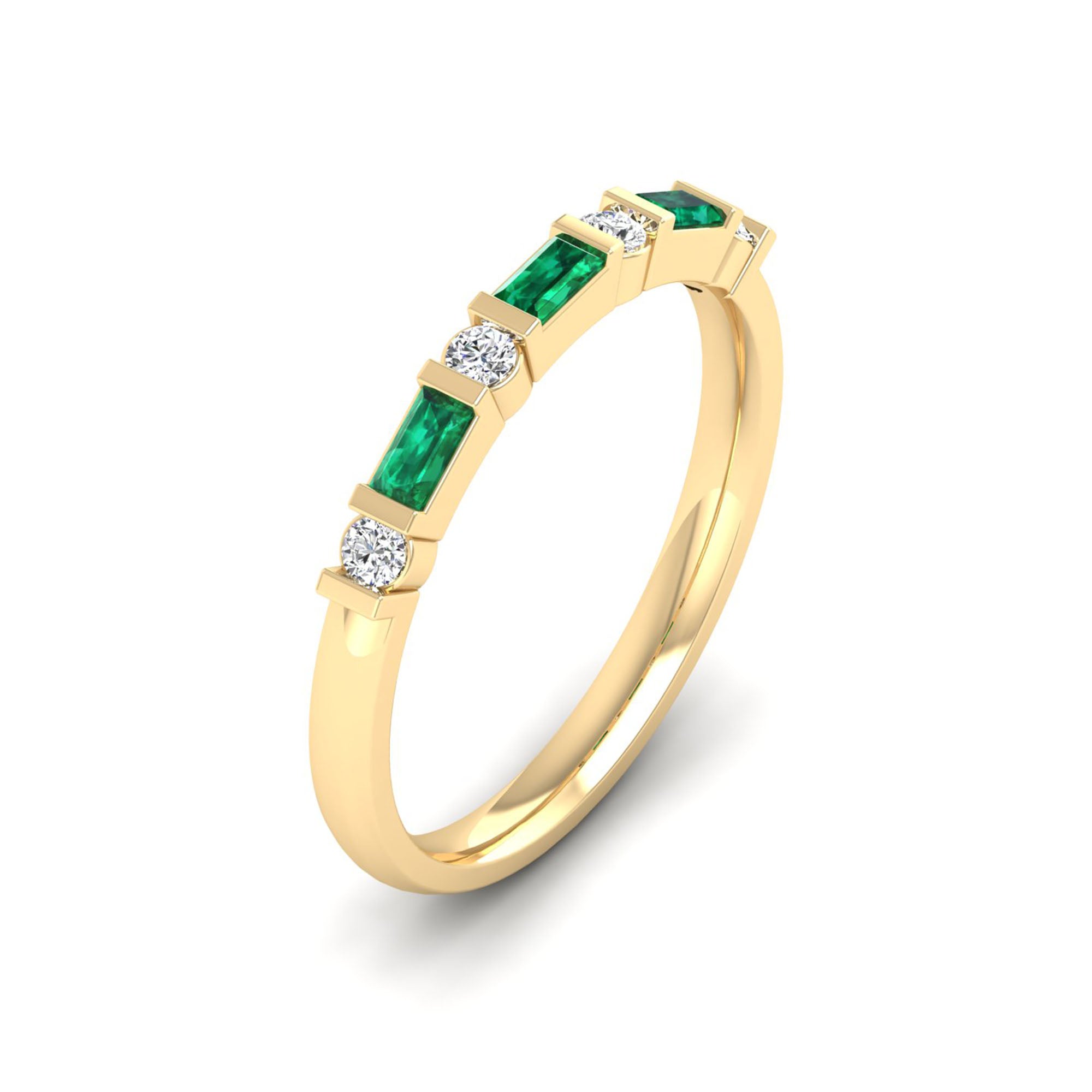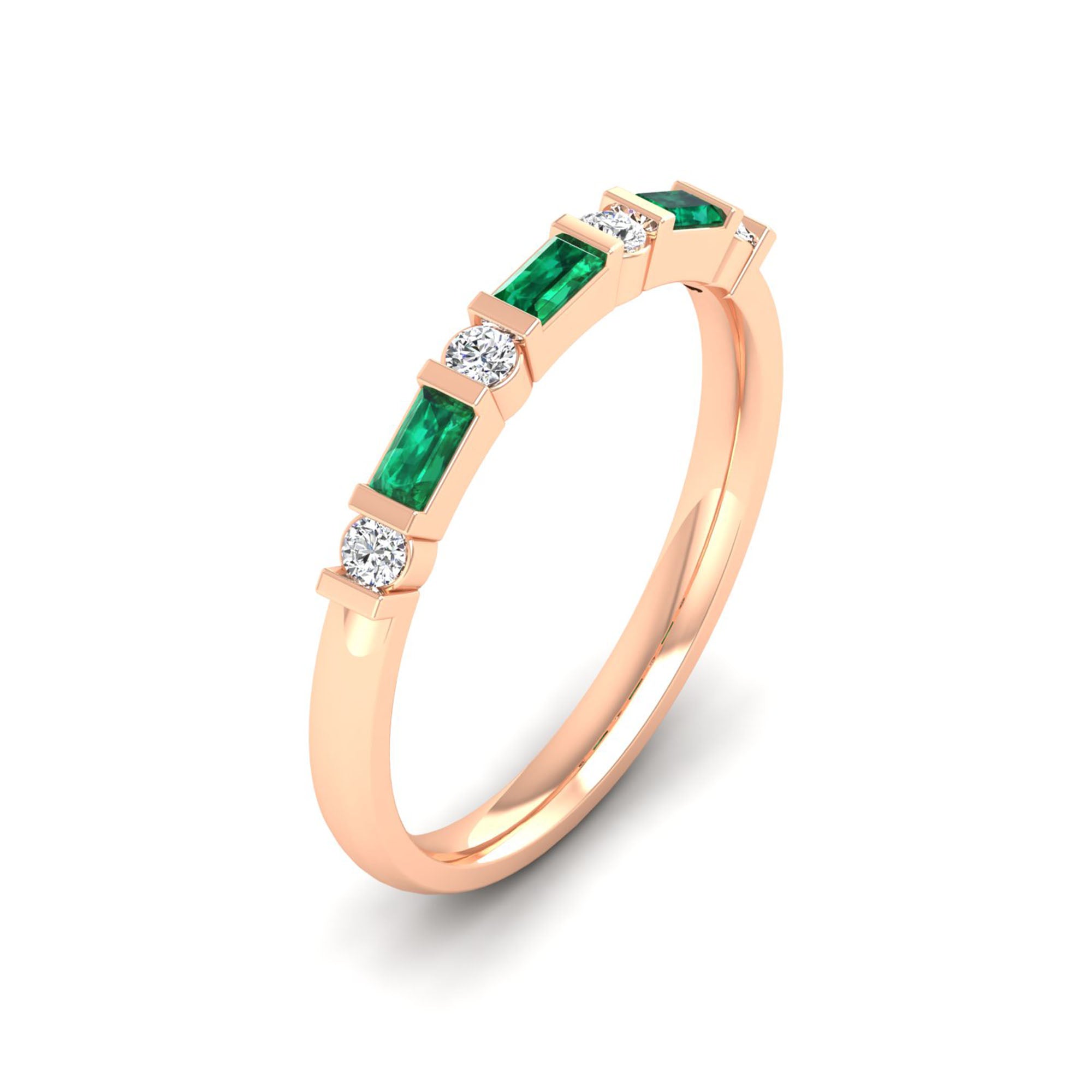 Baguette Alternating Emerald Art Deco and Diamond Ring