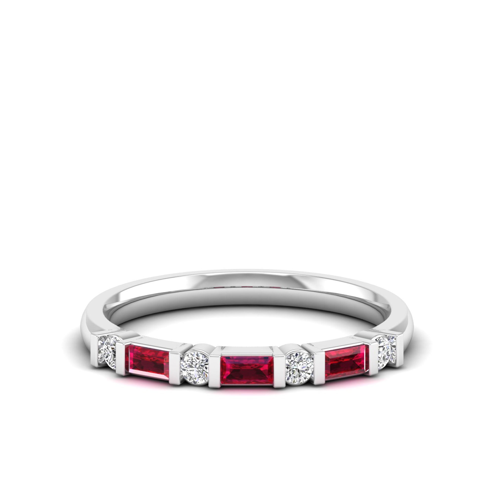 Baguette Alternating Ruby Art Deco and Diamond Ring