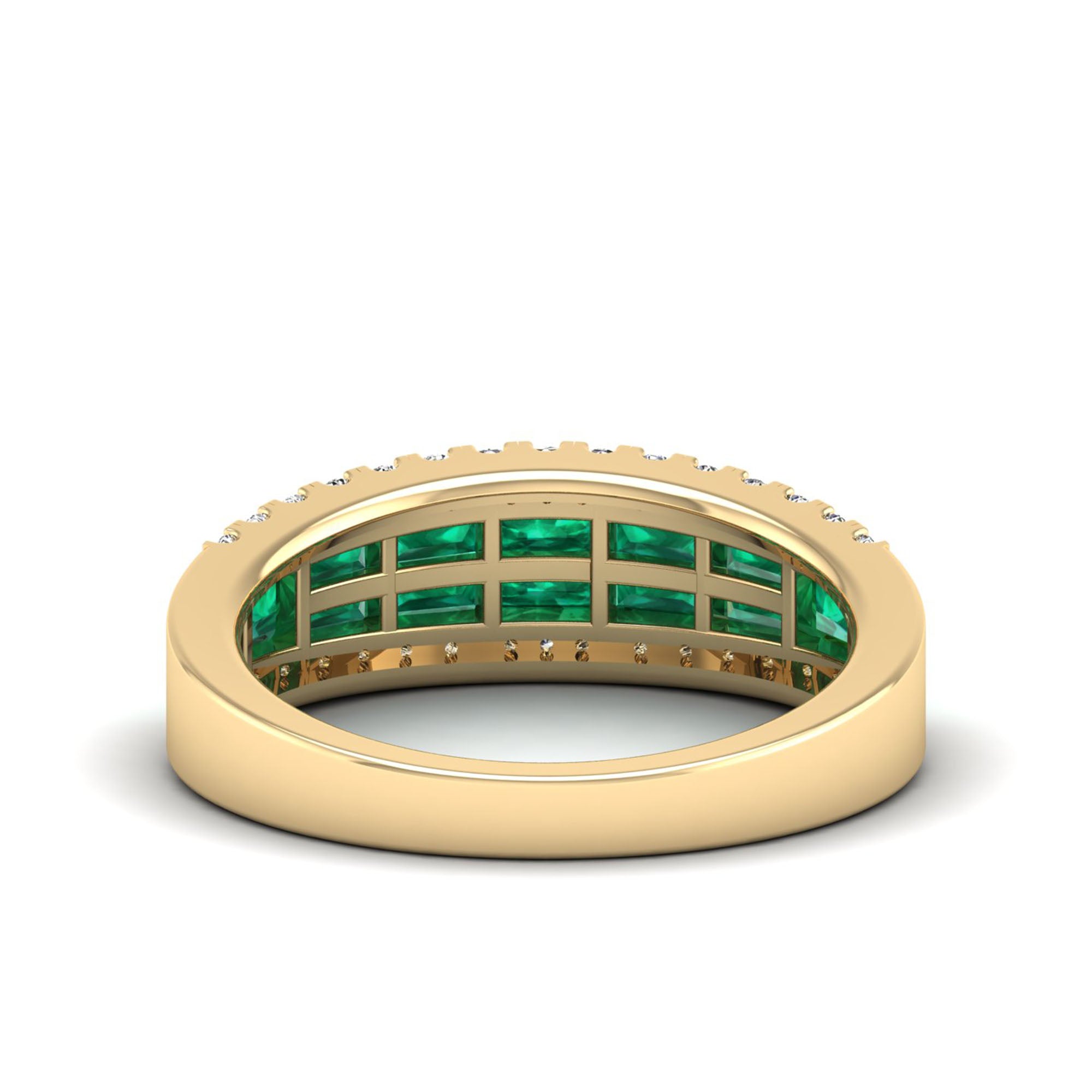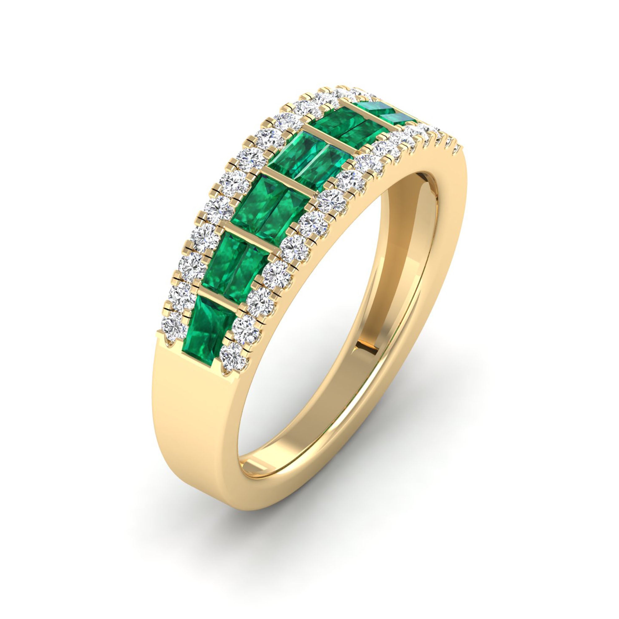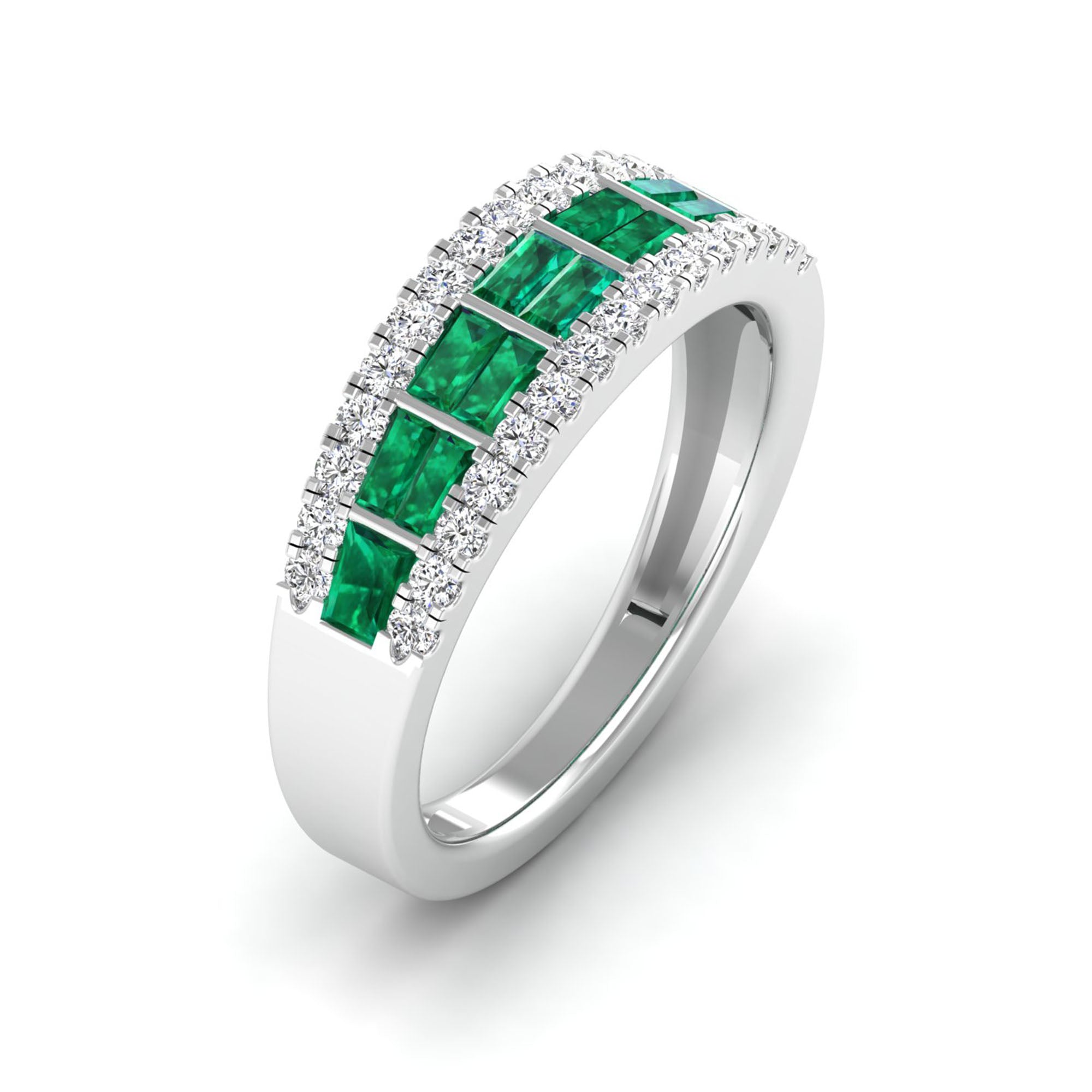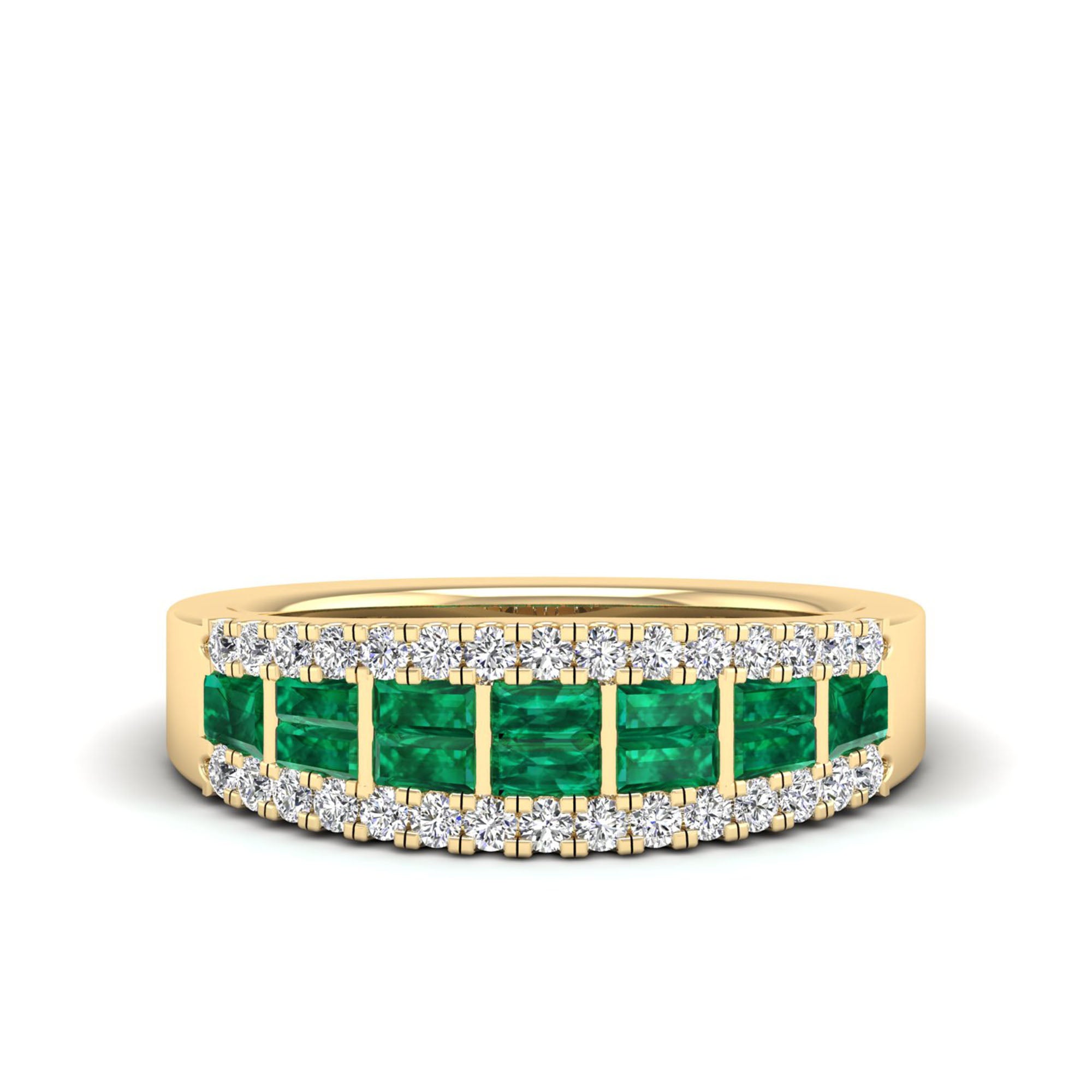 This Baguette Emerald and Diamond Band exudes sophistication and elegance. The stunning baguette cut emerald gemstones are complemented by sparkling diamond accents, creating a timeless and luxurious piece.