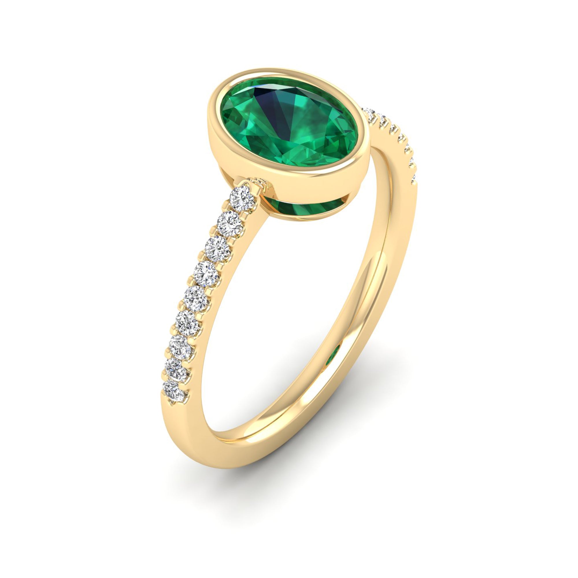 This exquisite ring features a stunning oval emerald stone surrounded by sparkling diamonds, creating a timeless and elegant piece of jewelry. The emerald's rich green hue is complemented by the brilliance of the diamonds, making it a perfect choice for special occasions or as a luxurious everyday accessory.
